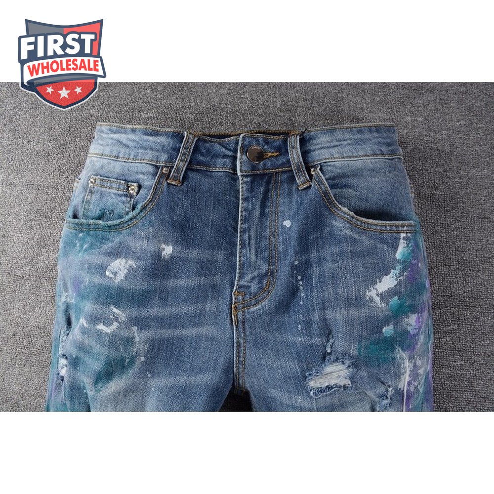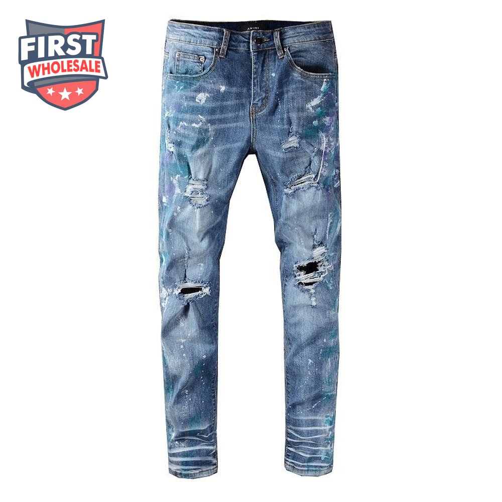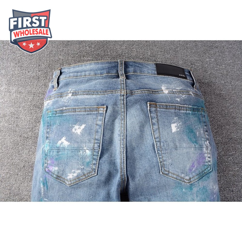 Amiri Blue Splatter Jeans Blue