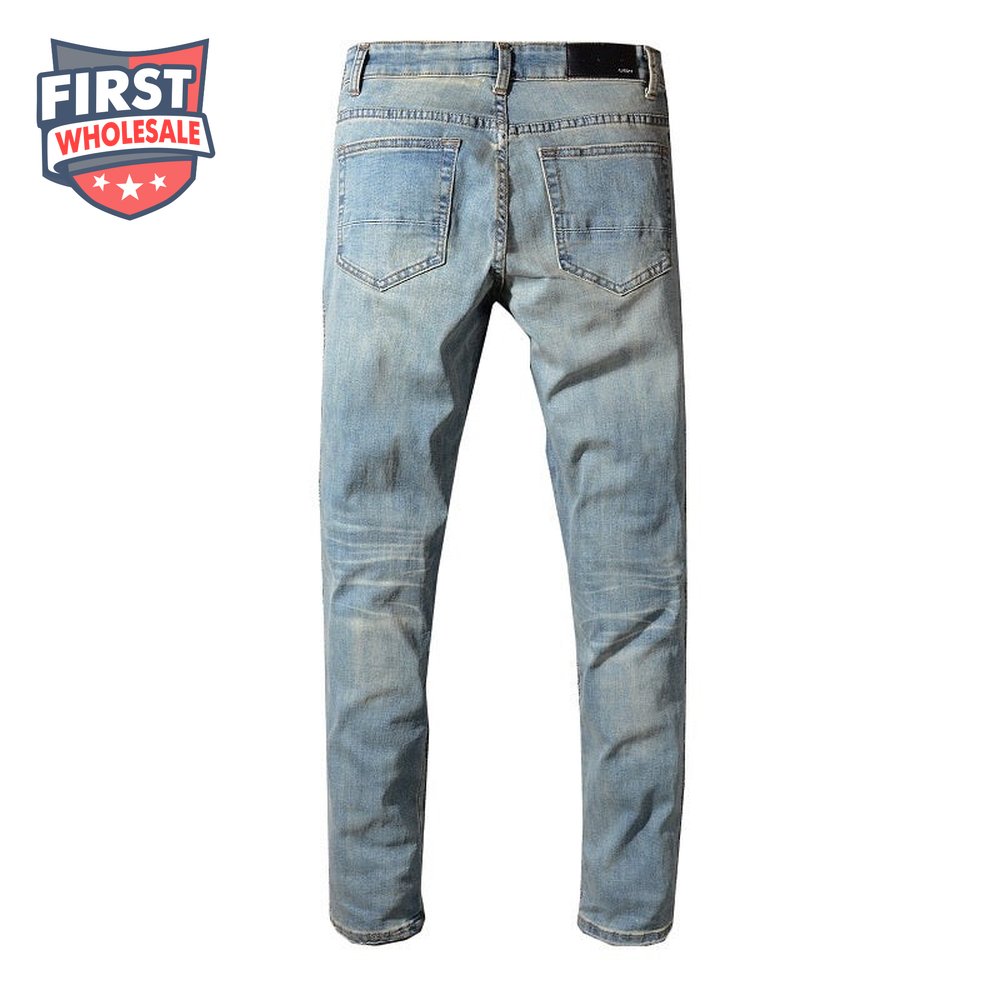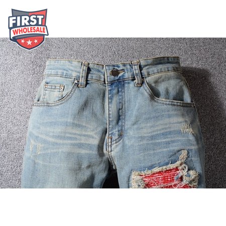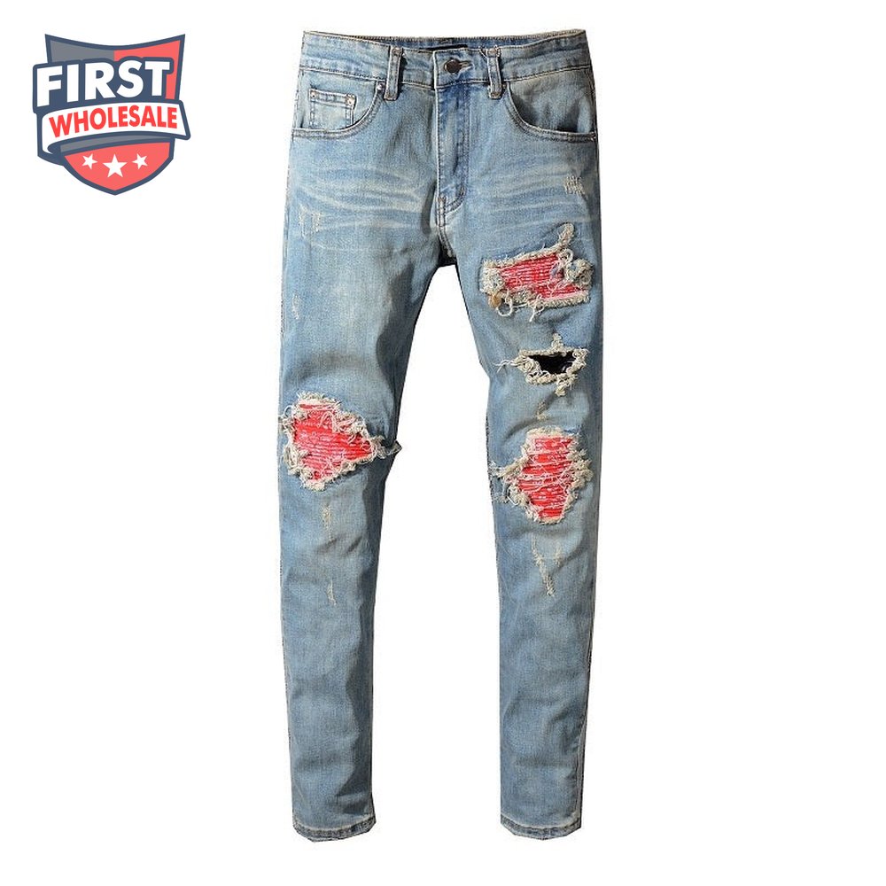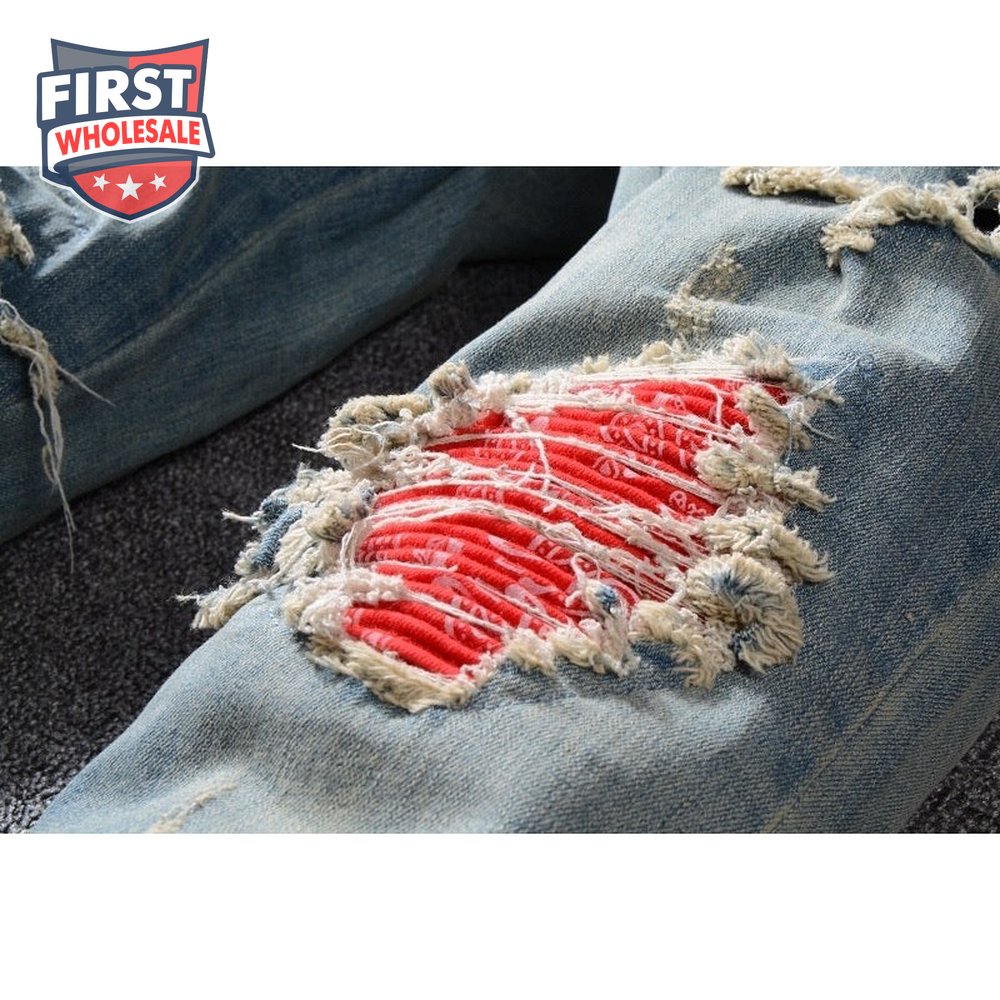 Amiri Bandanna Rip Jeans Light Blue /Red