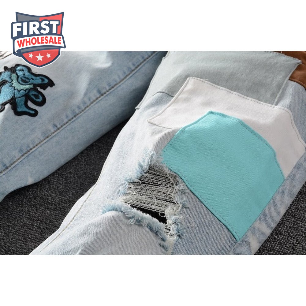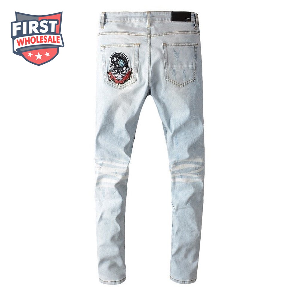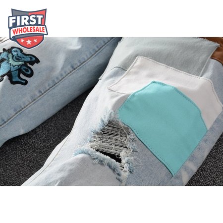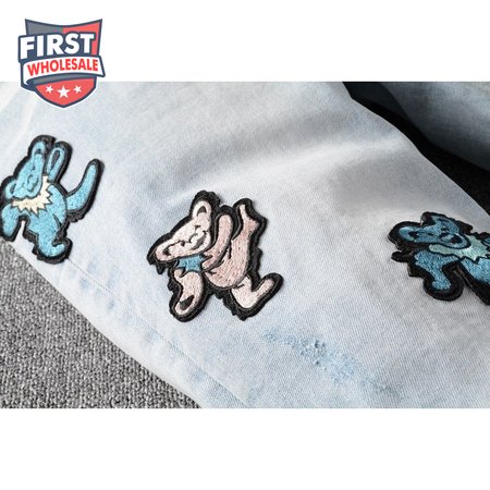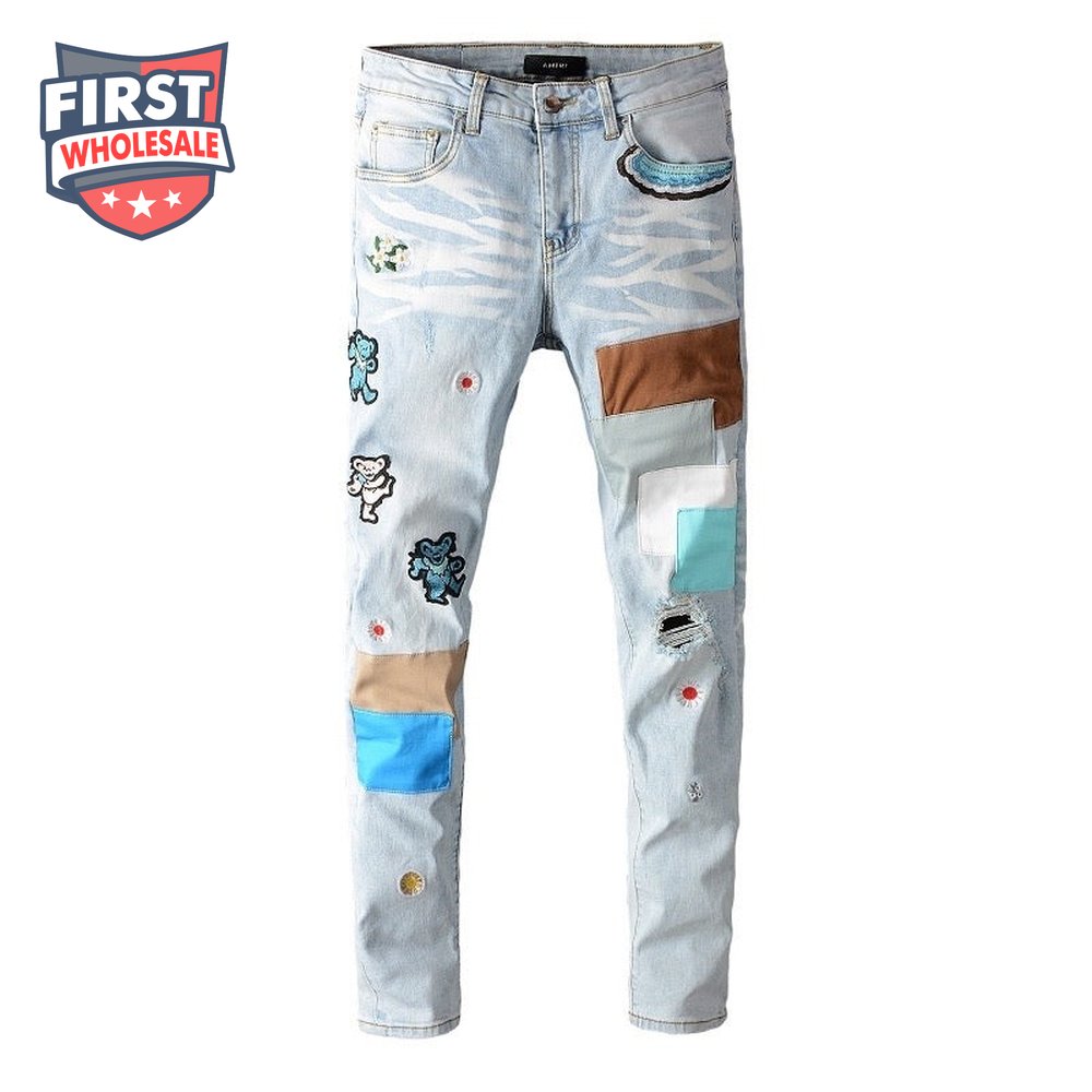 Amiri Bear Patch Rip Jeans Light Blue