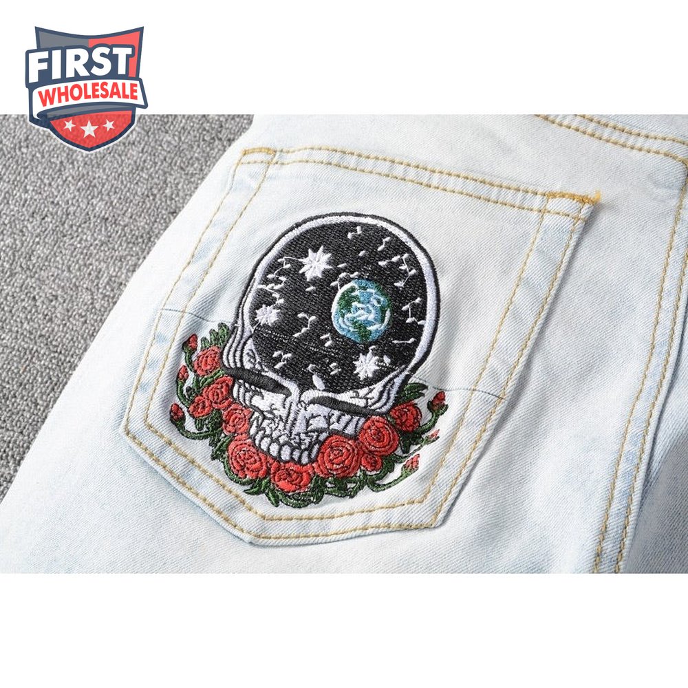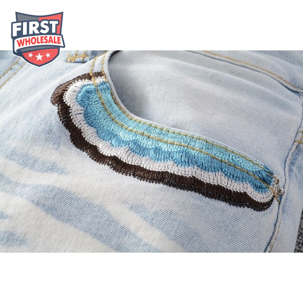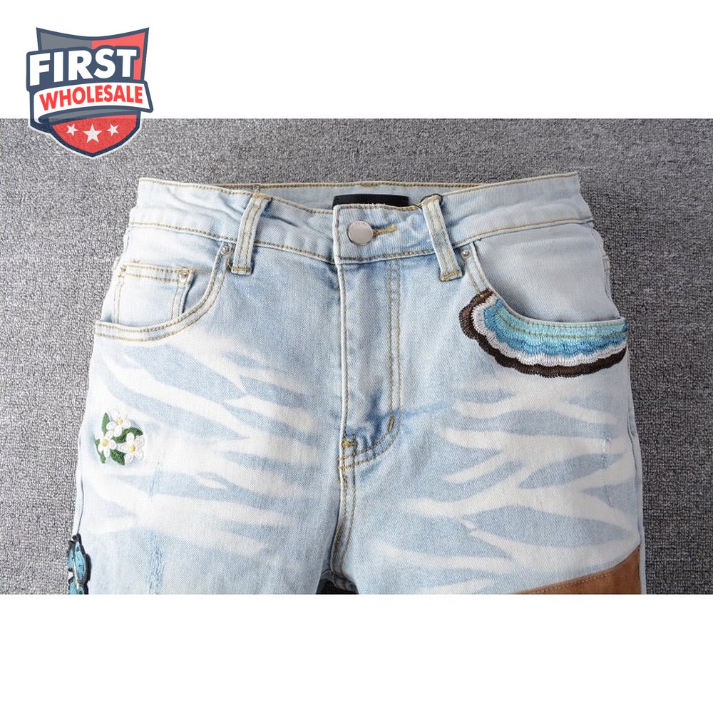 Amiri Bear Patch Rip Jeans Light Blue
