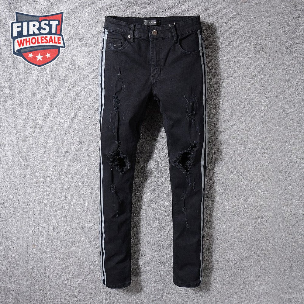 Amiri Striped Rip Jeans Black/Sliver
