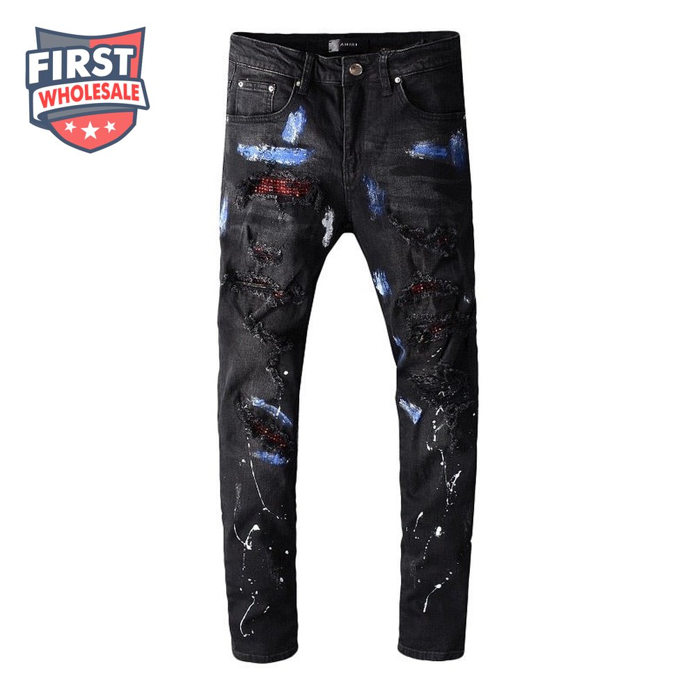 Amiri Rhinestone Splatter Jeans Black/Blue/Red