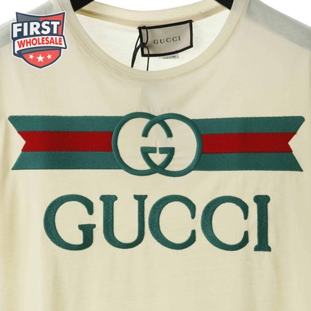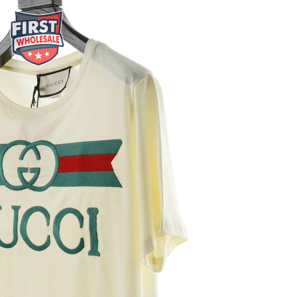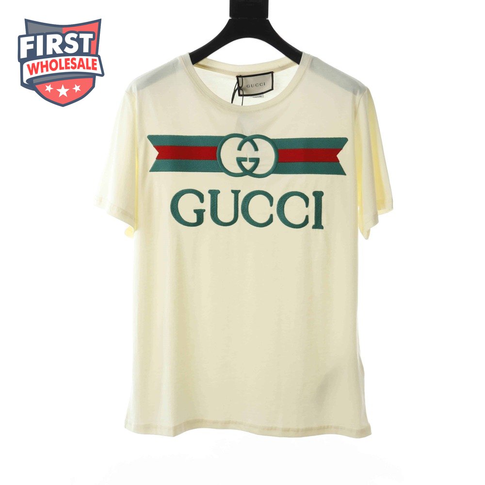 GUCCI EMBROIDERED BELT LOGO SHORT SLEEVE WHITE T SHIRT