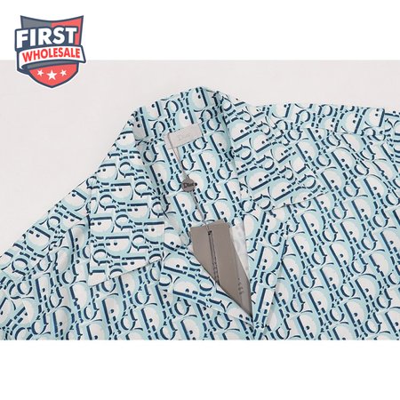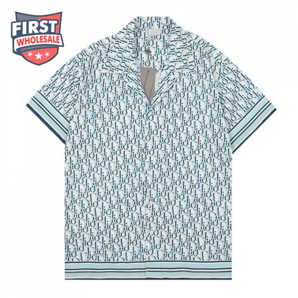 Dior Homme Blue And White Colorblock Print Men's Short-Sleeved Shirt