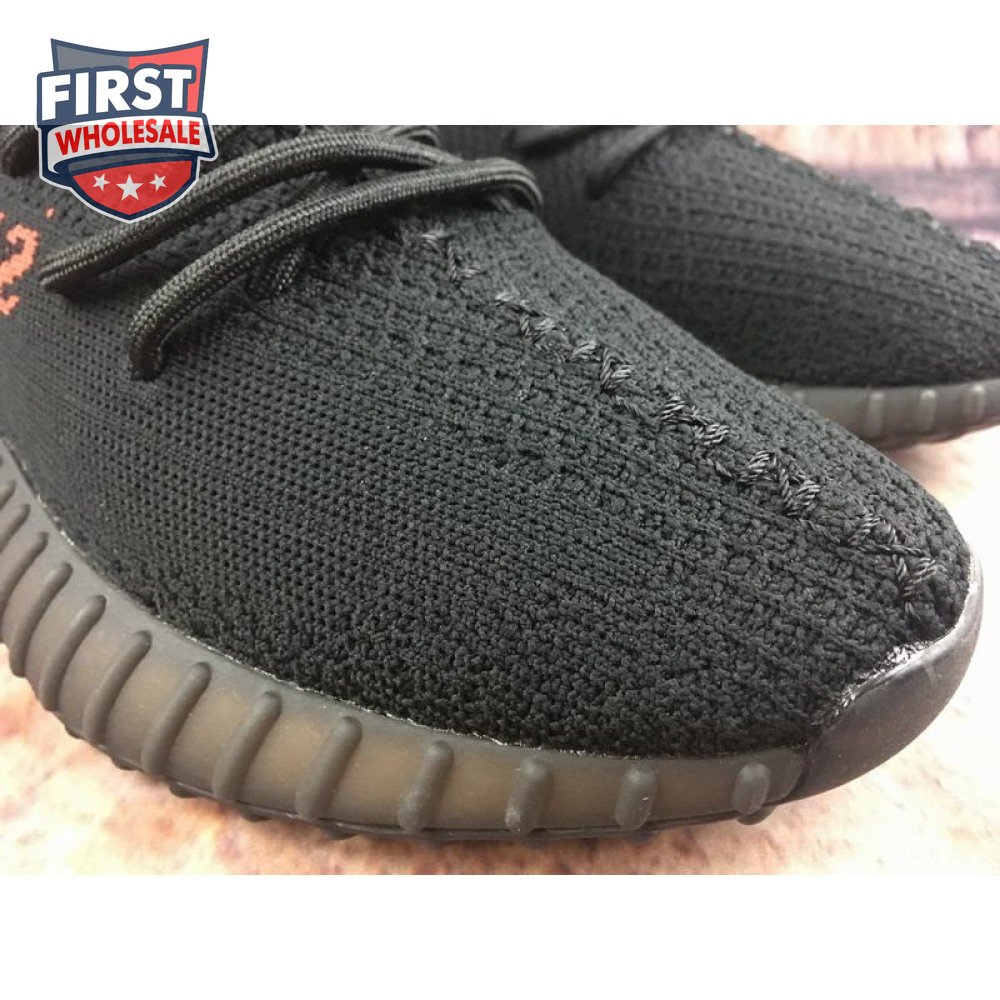 The adidas Yeezy Boost 350 V2 "Bred" delivers a simplistic colorway of the minimalist lace-up, highlighted by a black Primeknit upper accented with a pronounced center seam and red SPLY-350 branding on the lateral quarter panel. A pull tab at the heel features crimson embroidered detailing for a secondary pop of color. The lightweight build is mounted on a full-length Boost midsole, wrapped in semi-translucent black rubber for added durability and support. The original launch date was February 11, 2017, with a restock release on December 5, 2020.