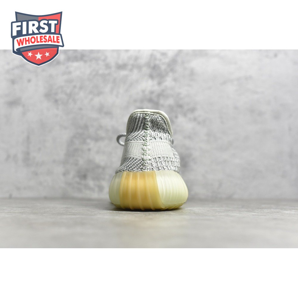The momentum behind the Yeezy Boost 350 V2 sneaker began with its unveiling at the Yeezy Season 3 fashion show in 2016. This 'Lundmark Reflective' colorway was part of June 2019's regional-exclusive release and made available only to North and South American customers. The shoe includes a Primeknit upper that appears Off-White in daylight but reveals reflective details in dim conditions. This rendition ditches the style's typical heel tab but maintains the full-length adidas Boost cushioning.