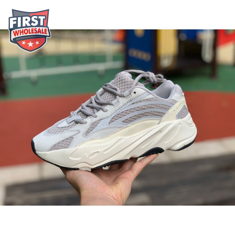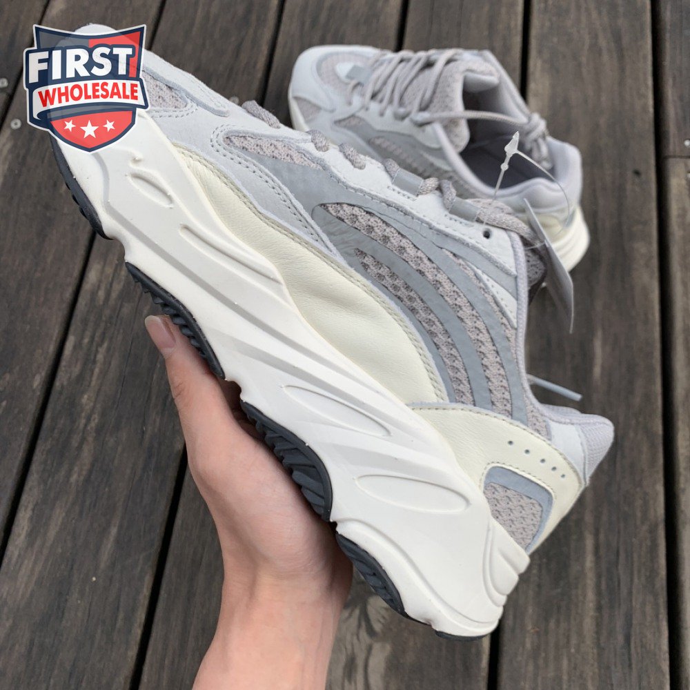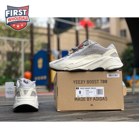 The Yeezy Boost 700 V2 "Static" is an update to the original Wave Runner. The upper features a slightly reworked design, while the midsole stays the same. This new edition showcases an understated colorway made up of soft, neutral shades. The layered composition of the upper, featuring a mesh base with welded reflective overlays and leather paneling, is finished in varying shades of grey and white. The silhouette"s signature bulky midsole, finished in matching white, is supported underfoot by a black rubber outsole.