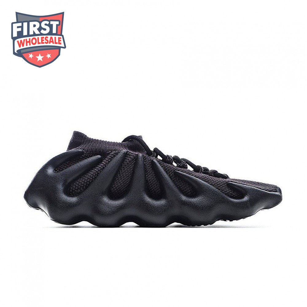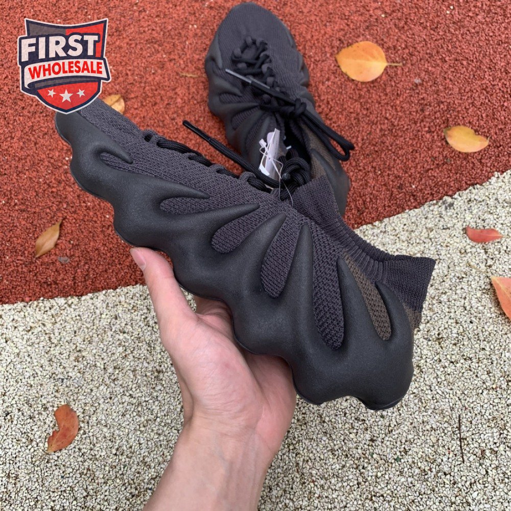 The adidas Yeezy 450 "Dark Slate" delivers a blacked-out iteration of Kanye West"s boundary-pushing silhouette. Stripped of color and exterior branding, the knit upper is secured with an integrated lacing system and topped with an elastic, sock-like cuff. In lieu of a traditional midsole, the rubber outsole sprouts tapered appendages that wrap up the heel and side panels of the deconstructed build, providing support and enhanced durability within its grasp.