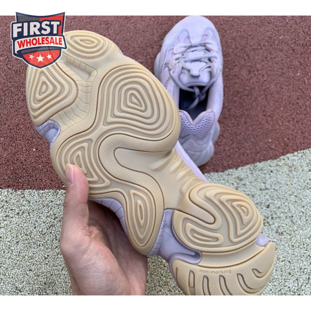 The adidas Yeezy 500 meets at the intersection of the German brand's past technical concepts and designer Kanye West's pairing of industrial ethos meets fashion. Introduced in November 2019, this edition's full tonal look is presented in Soft Vision mesh, leather and suede. Its laces are threaded through a matching tongue overlay. Inspired by retro Feet You Wear technology, a rounded Adiprene midsole and gum rubber outsole bolster the underfoot.