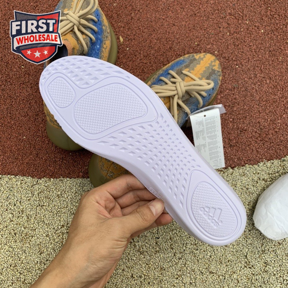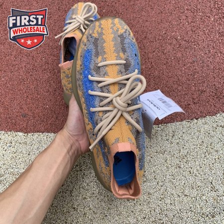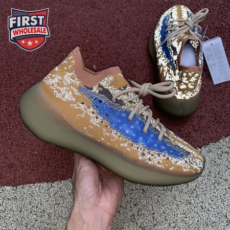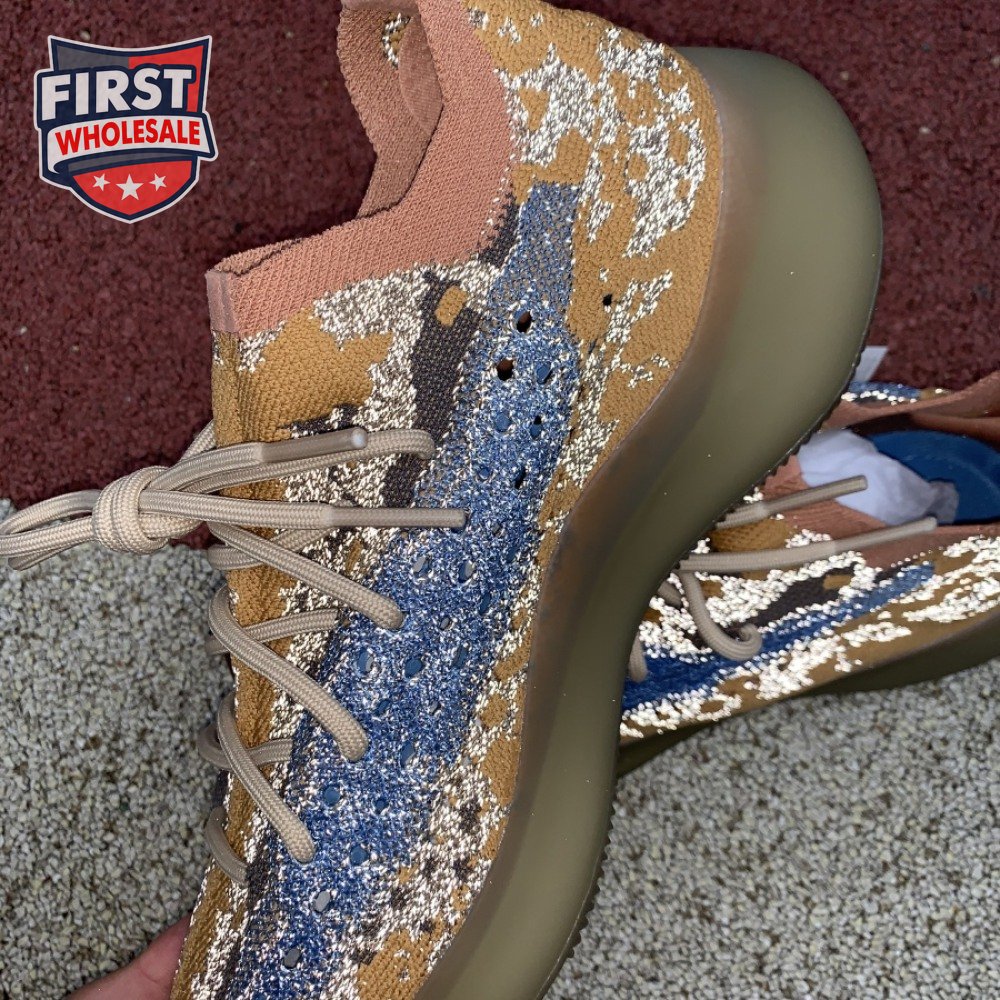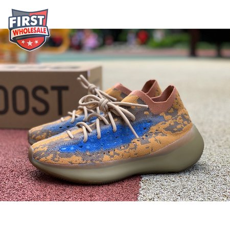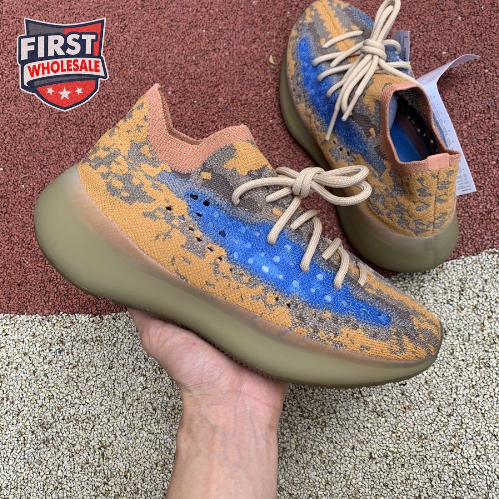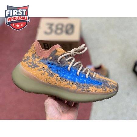 The adidas Yeezy Boost 380 "Blue Oat Reflective" makes use of a Primeknit upper in a blend of orange and brown hues, resulting in a unique camo-like pattern that"s enlivened with a contrasting pop of blue on the translucent monofilament window. Reflective thread is woven into the sock-like build, offering added visibility in low-light conditions. The responsive Boost midsole is encased in semi-translucent rubber and supported by a herringbone rubber outsole.