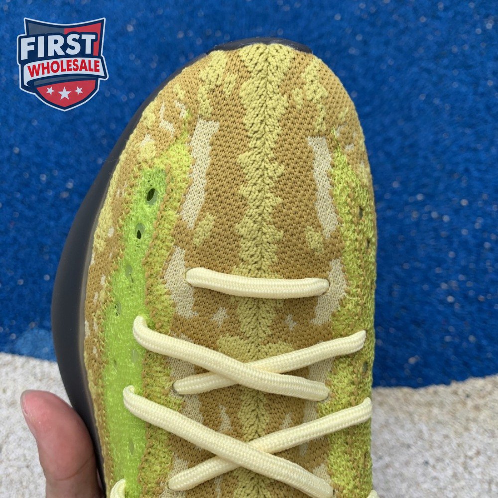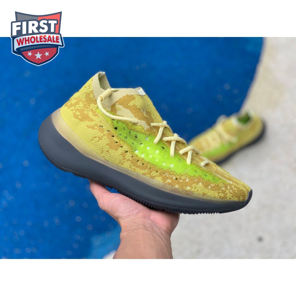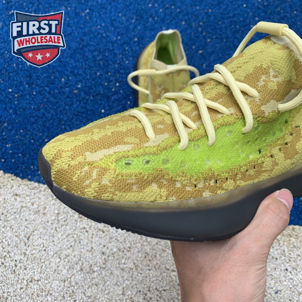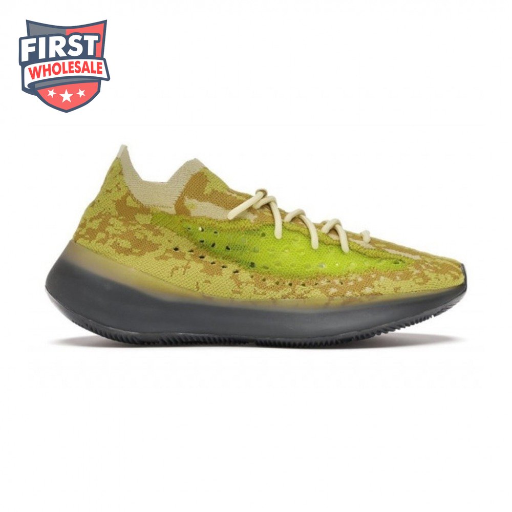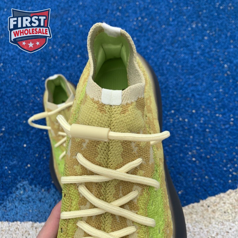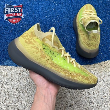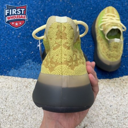 The adidas Yeezy Boost 380 "Hylte" features an eye-catching color scheme that strays from the signature Yeezy palette, which traditionally leans heavily on muted earth tones. A splash of fluorescent green is applied to the the sneaker"s translucent monofilament window, contrasted by the camo-like tan and yellow composition that makes up the Primeknit upper. Standard Boost cushioning is enveloped in grey rubber and reinforced with a herringbone-traction outsole. The Yeezy Boost 380 "Hylte" is a regional exclusive and only launched in North America and Latin America.
