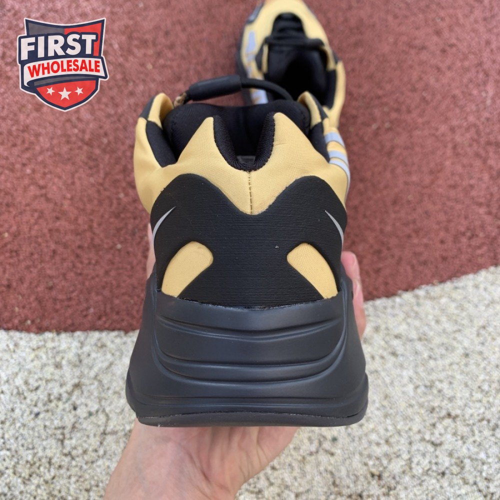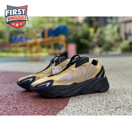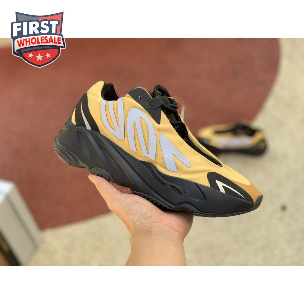 The adidas Yeezy Boost 700 MNVN "Bone" makes use of a high-contrast color scheme, highlighted by a cream polyester upper with black no-sew overlays at the toe and heel. No-tie bungee laces provide easy on and off, while reflective 700 branding on the sneaker"s quarter panel offers added visibility in low-light conditions. The seamless build rests on a sculpted black PU midsole, which houses drop-in Boost cushioning for a smooth ride.