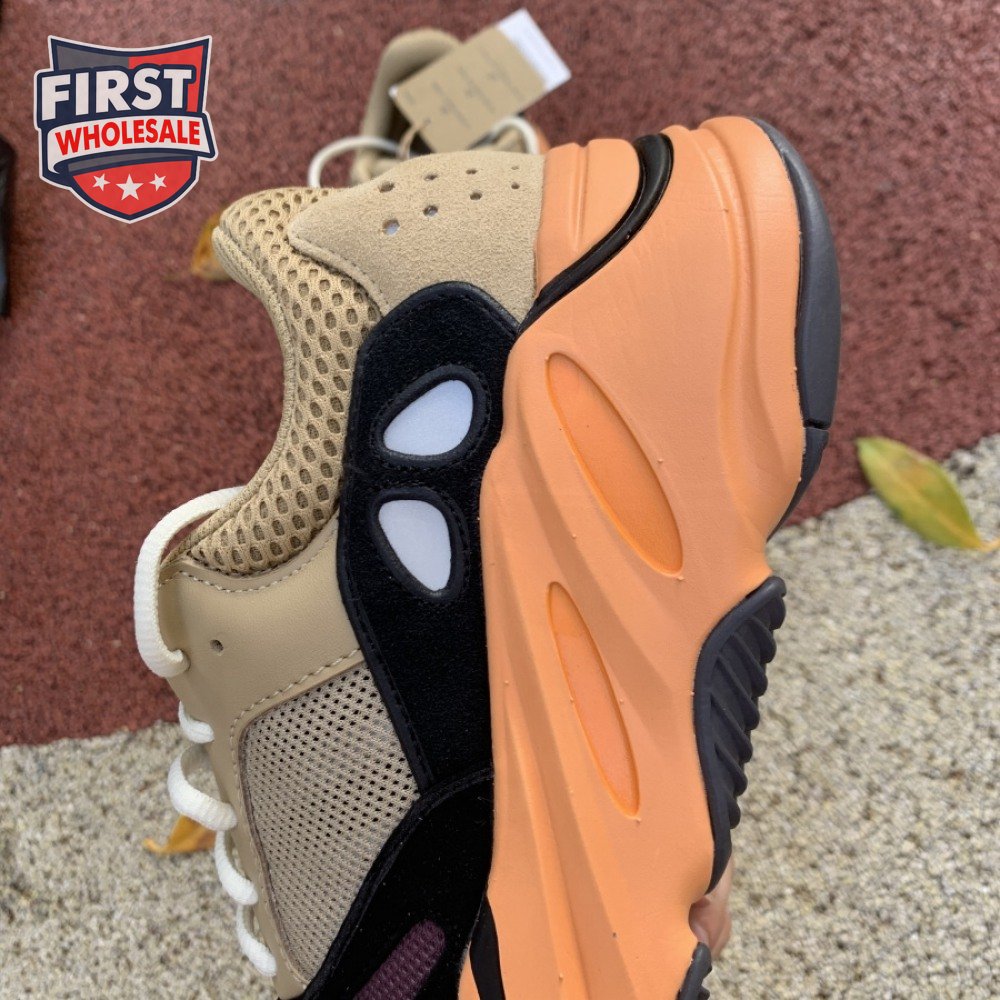 The adidas Yeezy Boost 700 "Sun" treats the lifestyle runner to a lively color scheme that accentuates the silhouette"s multi-layered build. The majority of the mesh and leather upper is rendered in varying shades of yellow, contrasted by a black suede overlay that extends to mesh forefoot panels in blue and teal. A clashing coral finish is applied to the bulky midsole, featuring full-length drop-in Boost cushioning for a smooth ride. Underfoot, a herringbone rubber outsole delivers optimal grip.