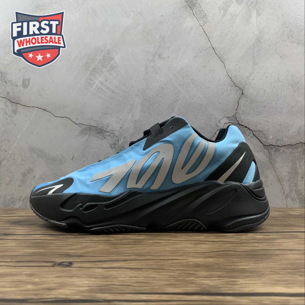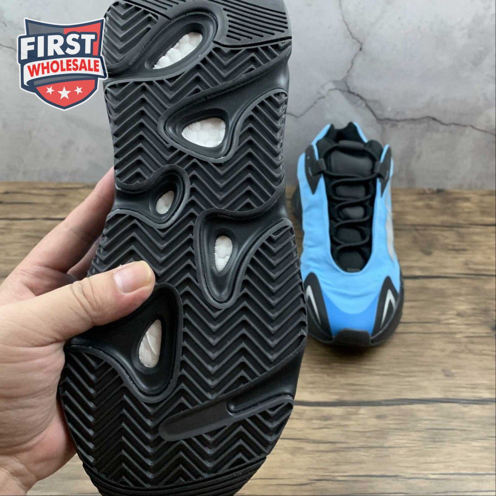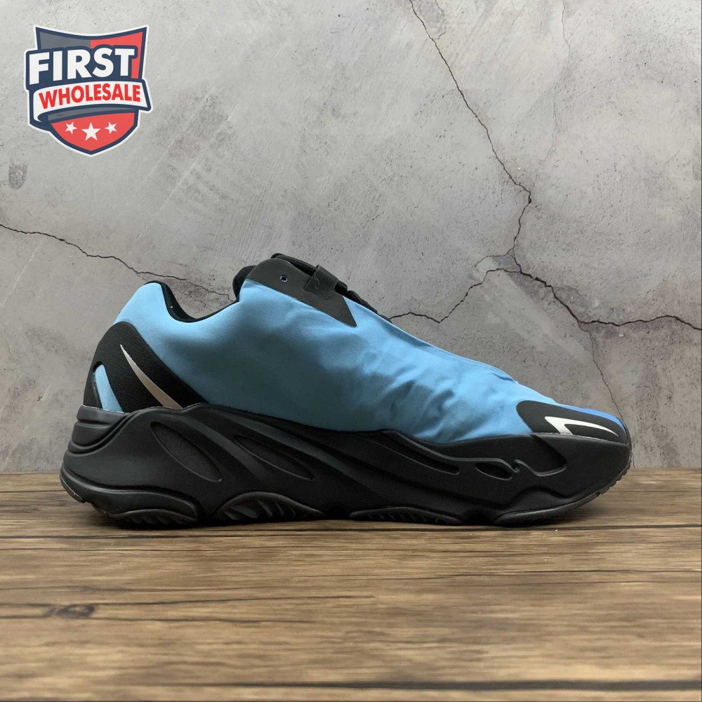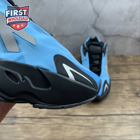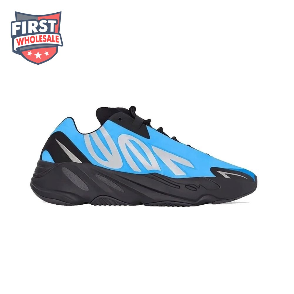 The adidas Yeezy Boost 700 MNVN "Bright Cyan" makes use of a lightweight polyester upper, secured with no-tie bungee laces and finished in a vibrant aqua hue. No-sew overlays provide lightweight durability and support, while reflective detailing offers added visibility in low-light conditions. The sneaker"s signature "700" branding adorns the lateral side. Responsive cushioning arrives via sculpted PU midsole, housing full-length Boost cushioning within and reinforced with a herringbone-tread outsole underfoot.