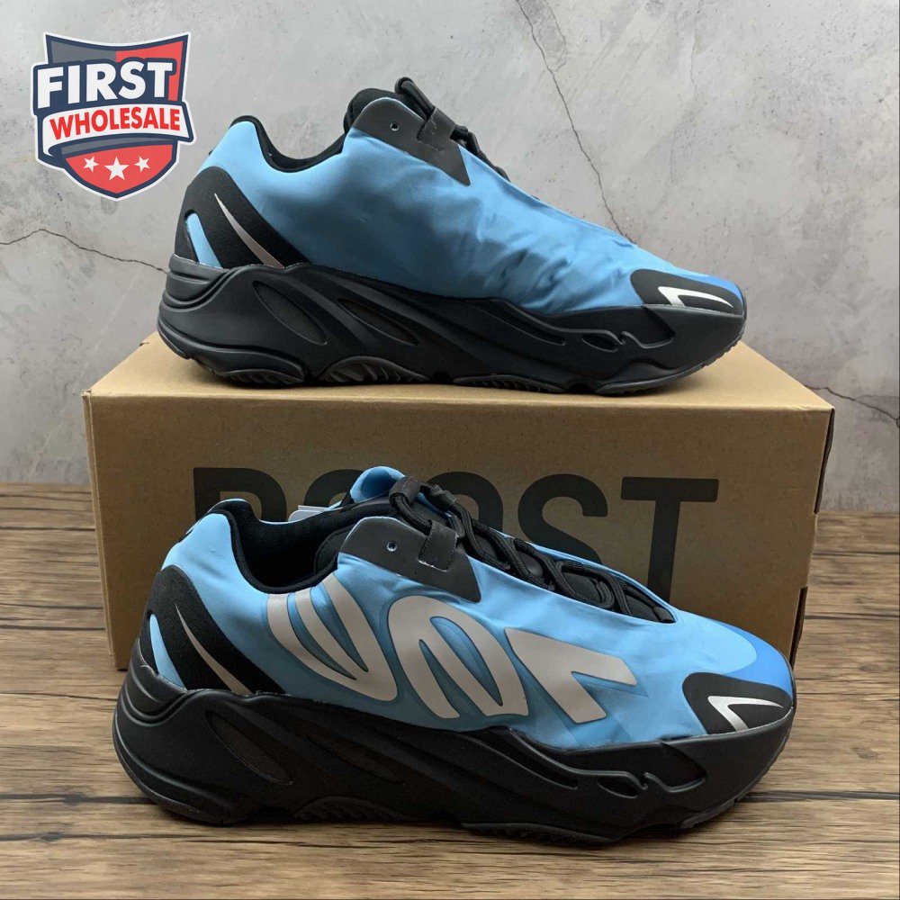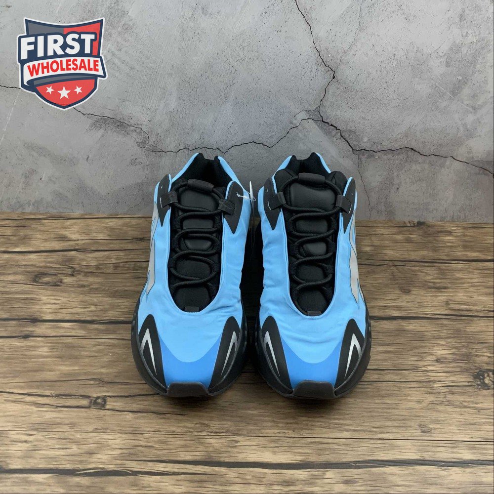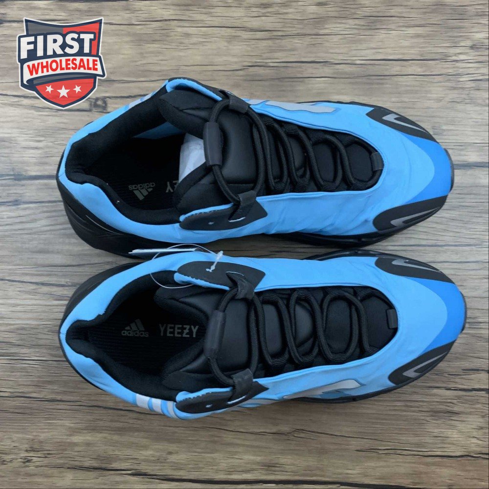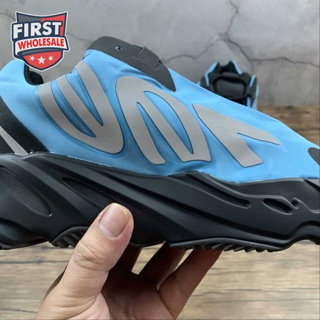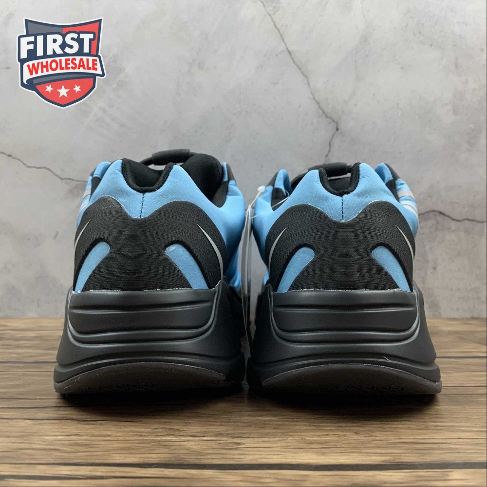 The adidas Yeezy Boost 700 MNVN "Bright Cyan" makes use of a lightweight polyester upper, secured with no-tie bungee laces and finished in a vibrant aqua hue. No-sew overlays provide lightweight durability and support, while reflective detailing offers added visibility in low-light conditions. The sneaker"s signature "700" branding adorns the lateral side. Responsive cushioning arrives via sculpted PU midsole, housing full-length Boost cushioning within and reinforced with a herringbone-tread outsole underfoot.