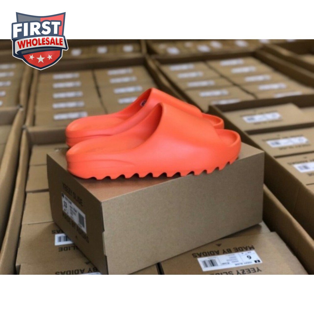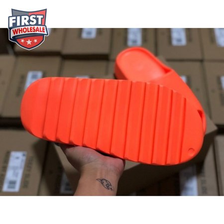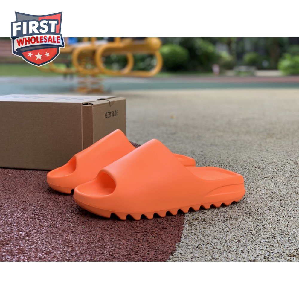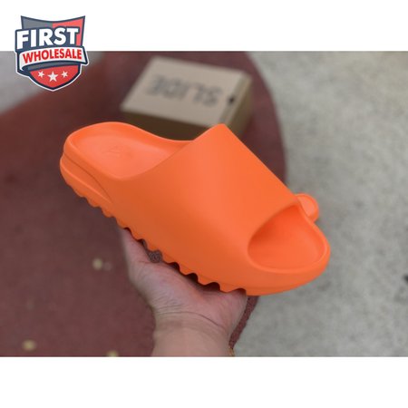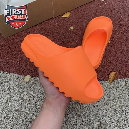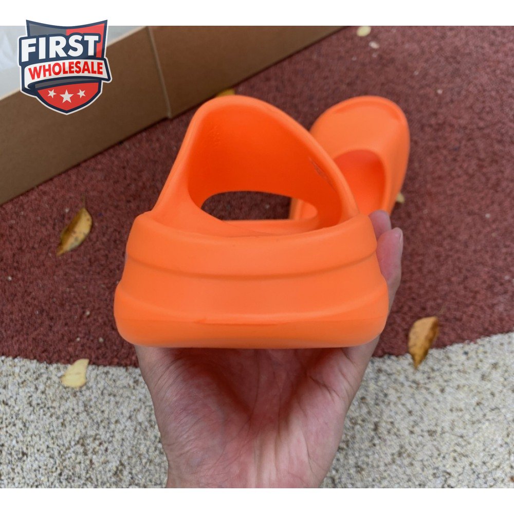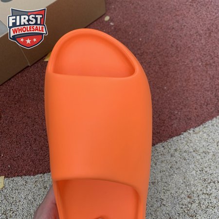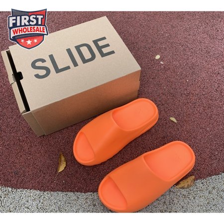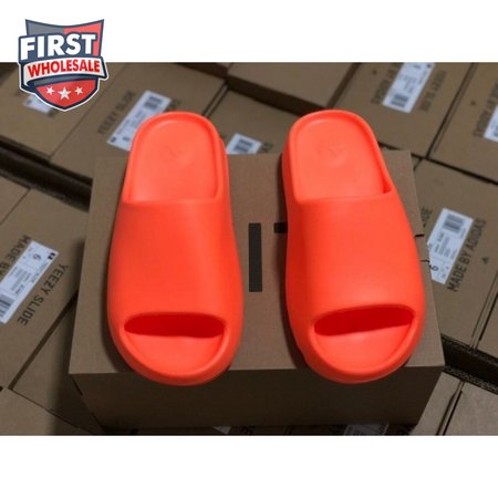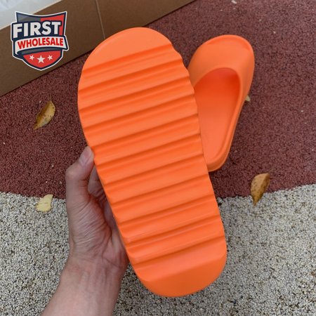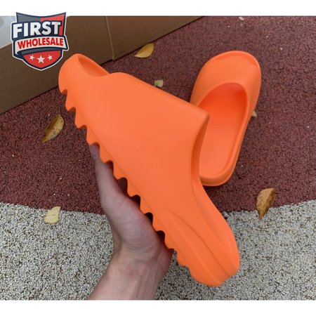 The adidas Yeezy Slide "Enflame Orange" updates the minimalist slip-on with a deep citrus hue. The lightweight build, formed with injected EVA, features breathable open-toe construction and a plush footbed for soft landings. The latter is marked with adidas" three-stripe logo, representing the only bit of exterior branding. Pronounced flex grooves distinguish the outsole, offering improved cushioning and durable traction.