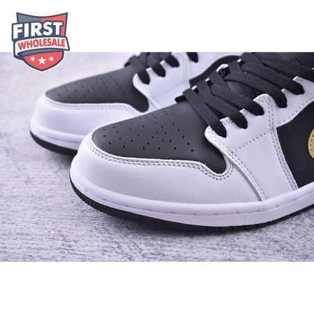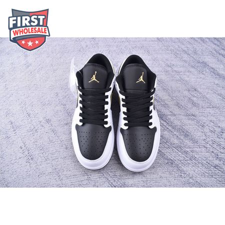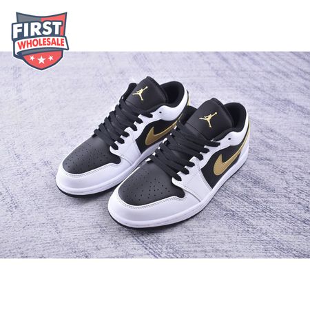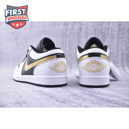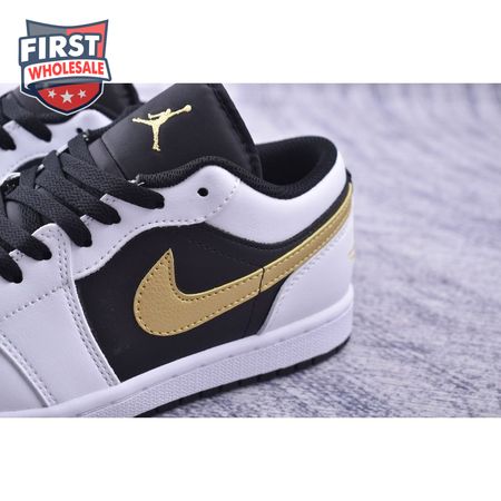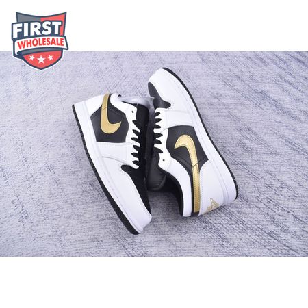 Jordan 1 Low White Black Metallic Gold Swoosh 553558-172 Unisex
