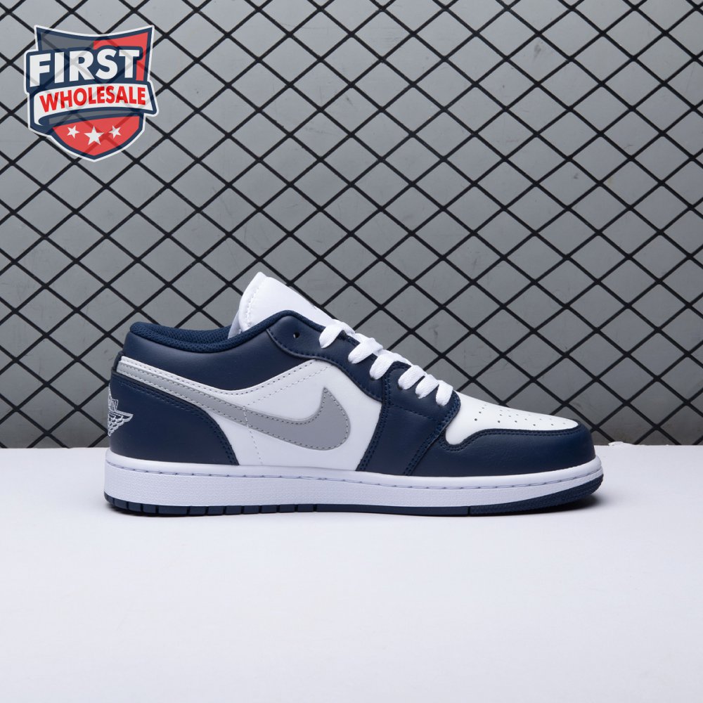 Jordan 1 Low Wolf Grey Midnight Navy 553558-141 Unisex