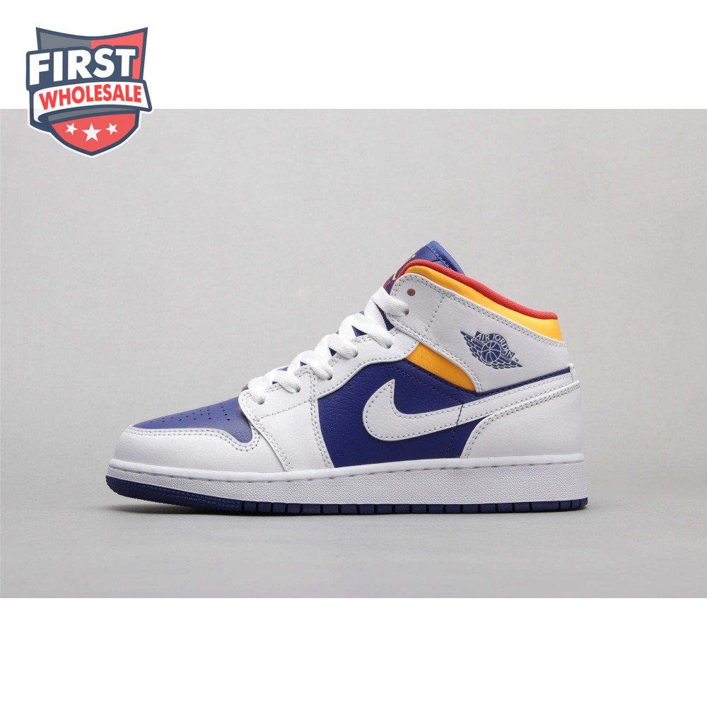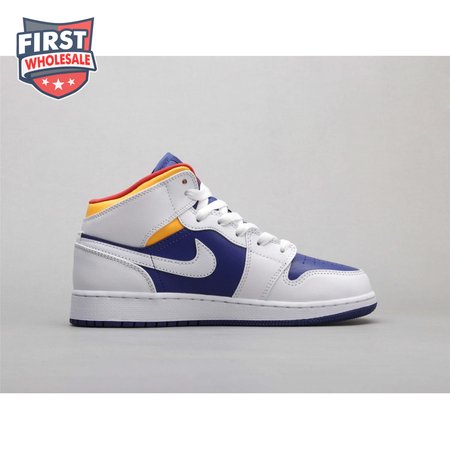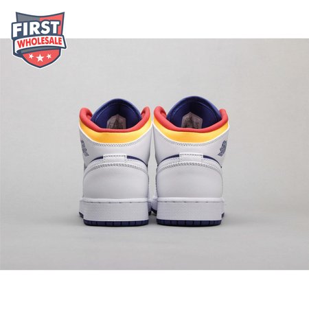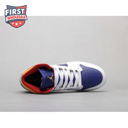 Air Jordan 1 Mid White Laser Orange Deep Royal Blue Women's