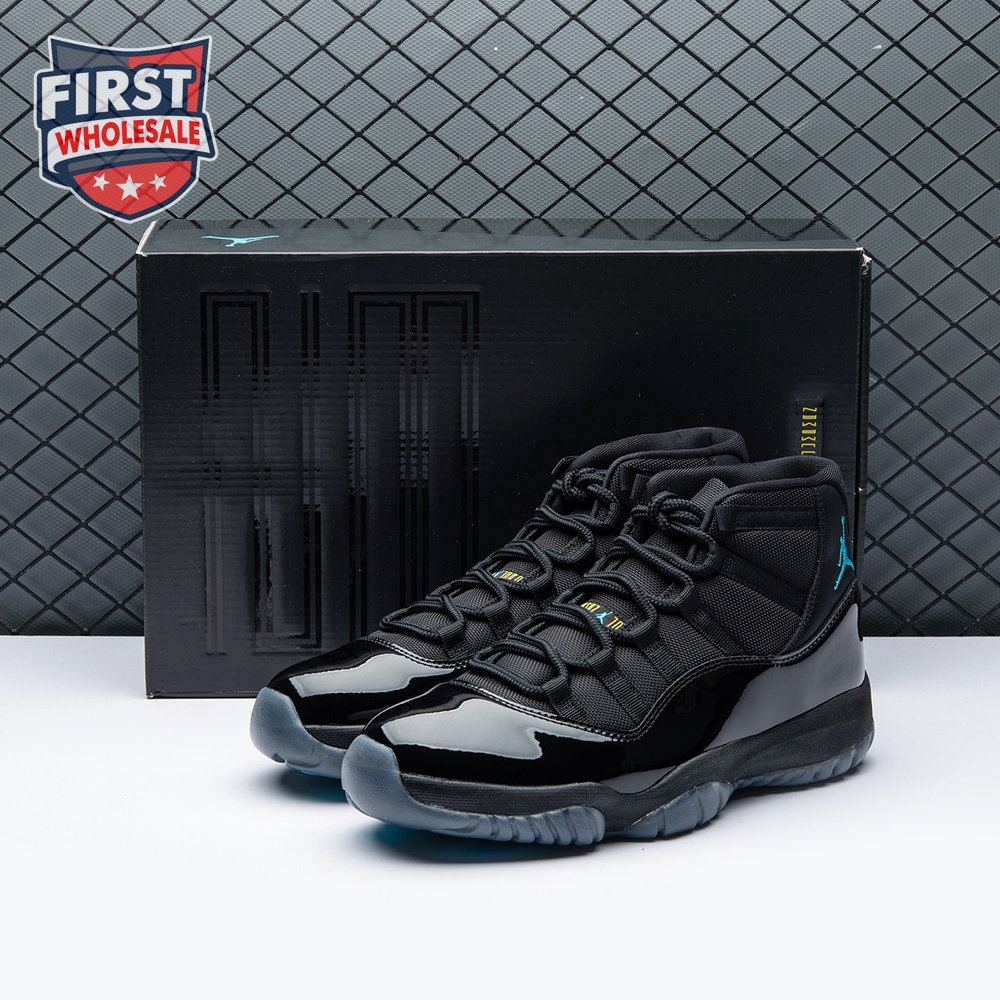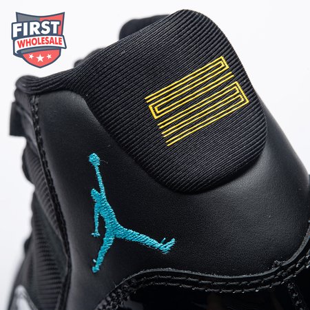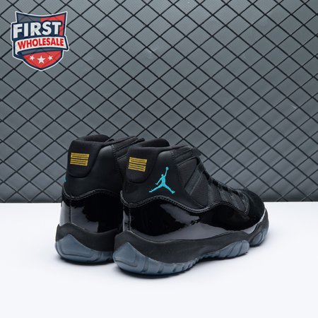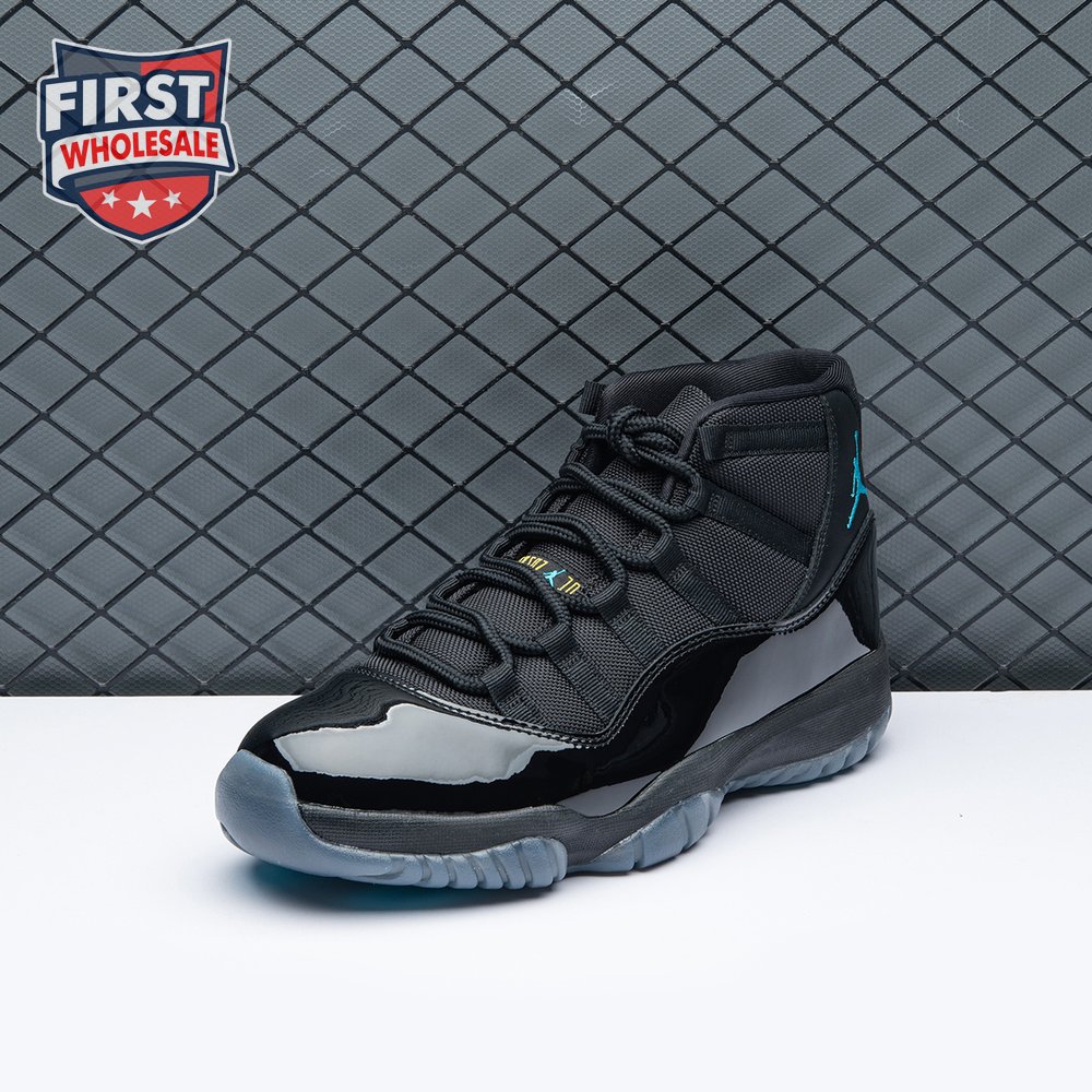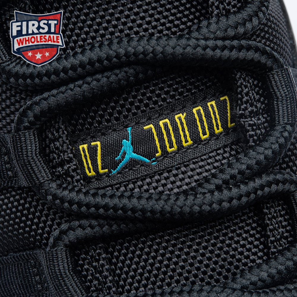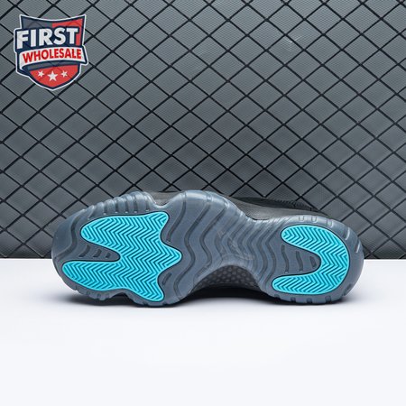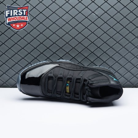 The Air Jordan 11 Retro "Gamma Blue" released in 2013 as Jordan Brand"s requisite AJ11 holiday release. The non-OG colorway features a sleek black finish throughout the upper, constructed from a traditional blend of ballistic mesh and shiny patent leather. Contrasting pops of color arrive via the sneaker"s branding hits, which include a turquoise Jumpman and "23" stamped in Varsity Maize on the heel tab. A cushy Phylon midsole is enhanced with a top-loaded full-length Air unit and supported by a carbon fiber spring plate. A translucent rubber outsole utilizes herringbone traction pods for superior grip.