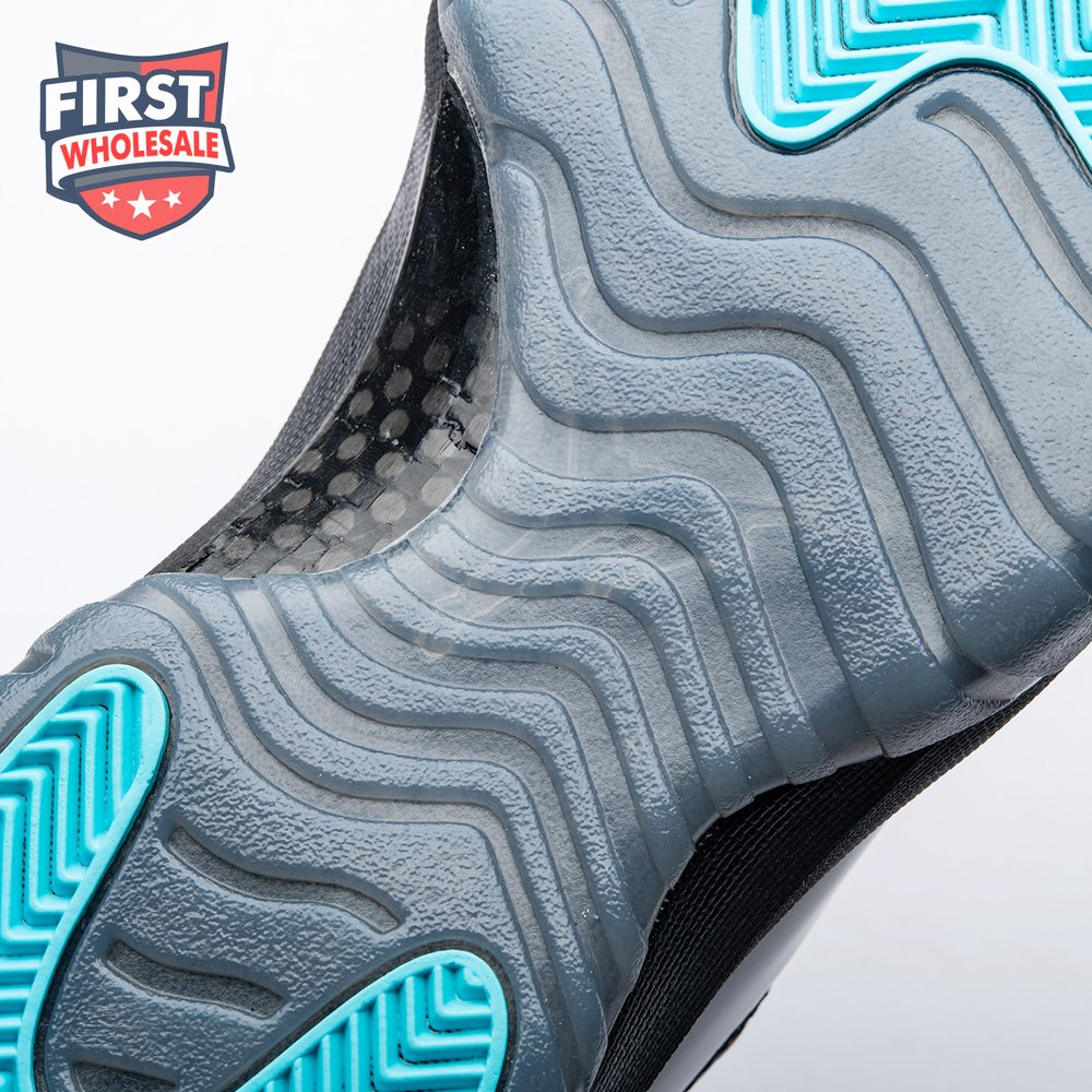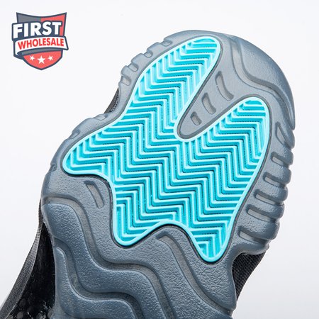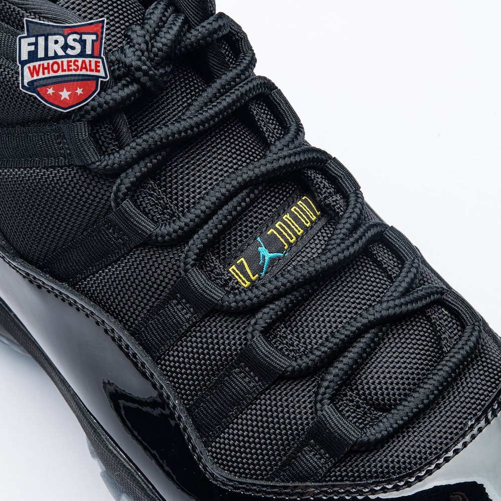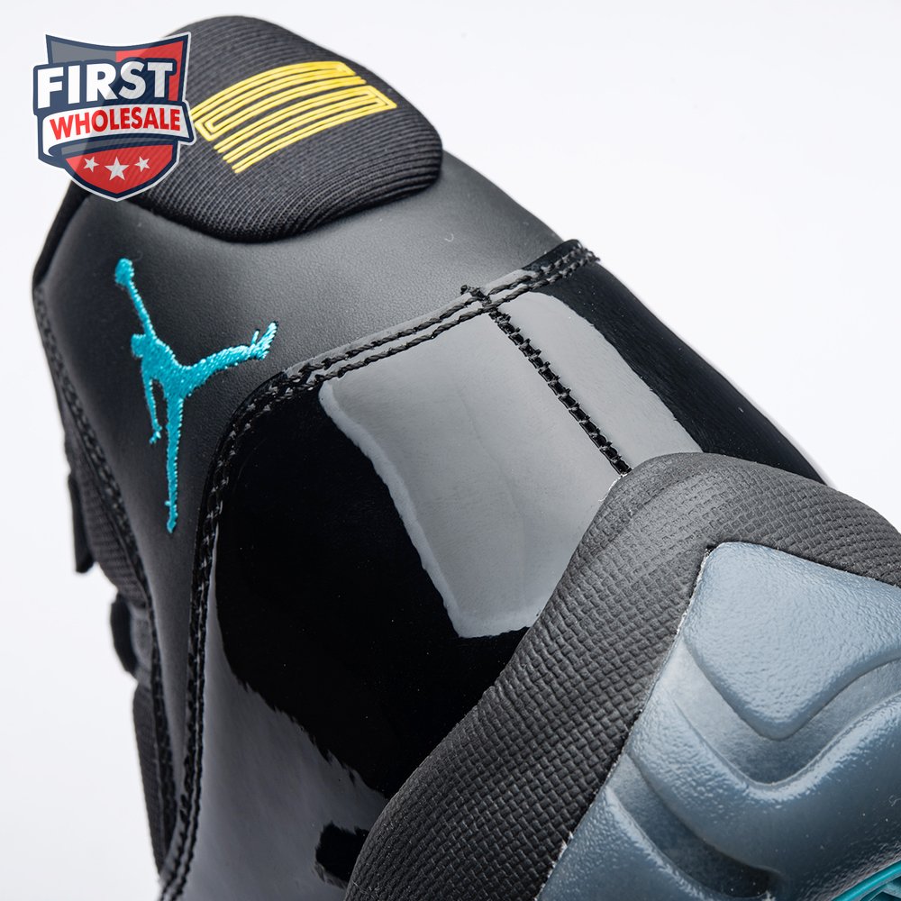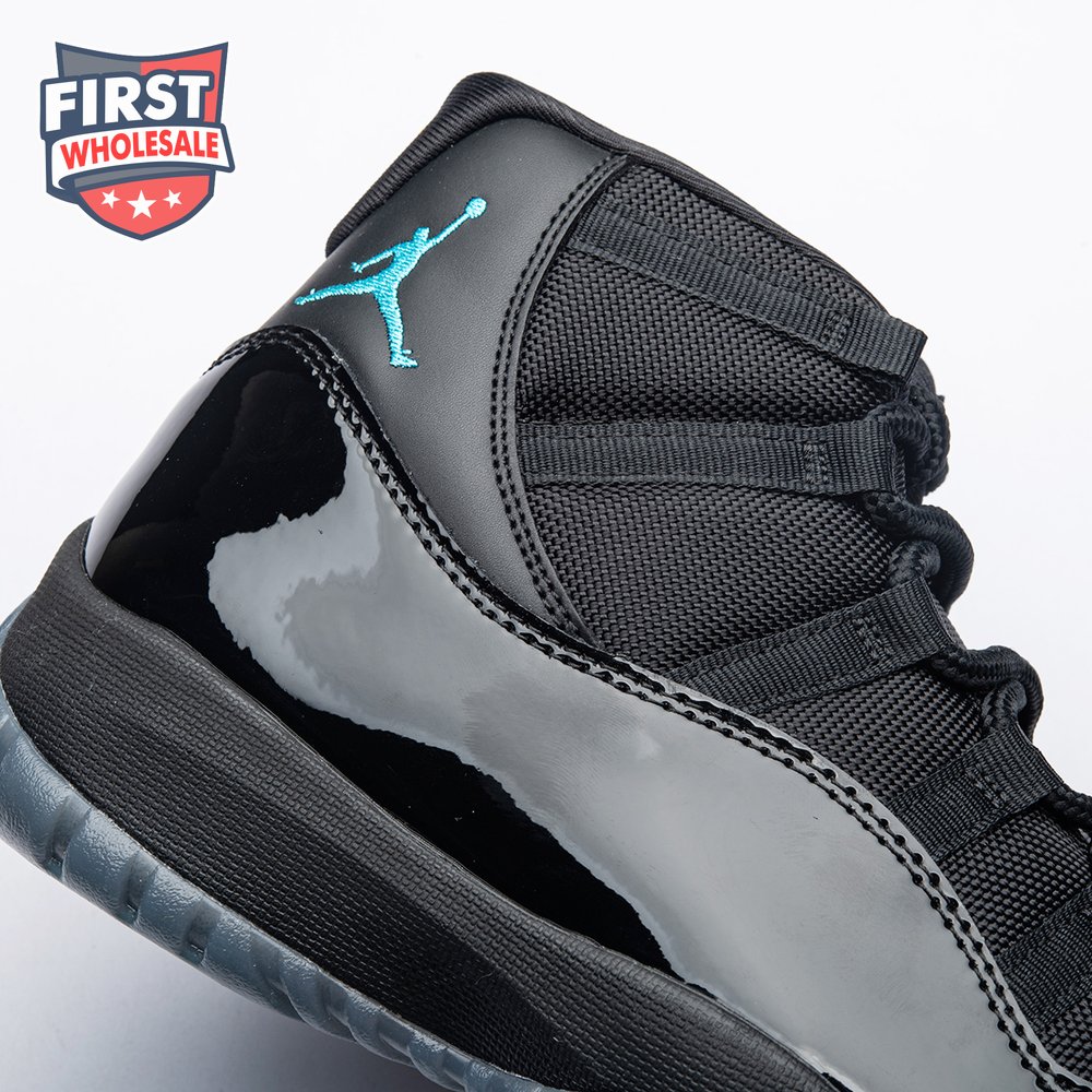 The Air Jordan 11 Retro "Gamma Blue" released in 2013 as Jordan Brand"s requisite AJ11 holiday release. The non-OG colorway features a sleek black finish throughout the upper, constructed from a traditional blend of ballistic mesh and shiny patent leather. Contrasting pops of color arrive via the sneaker"s branding hits, which include a turquoise Jumpman and "23" stamped in Varsity Maize on the heel tab. A cushy Phylon midsole is enhanced with a top-loaded full-length Air unit and supported by a carbon fiber spring plate. A translucent rubber outsole utilizes herringbone traction pods for superior grip.