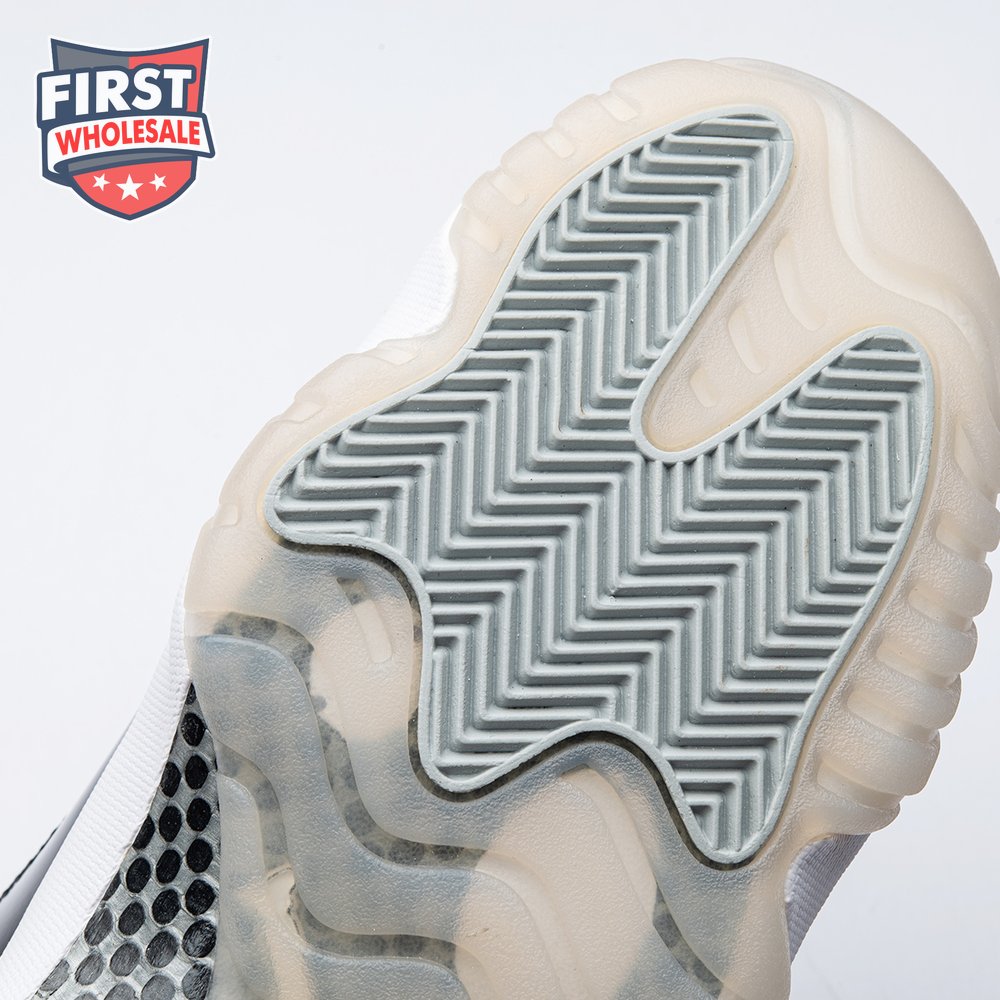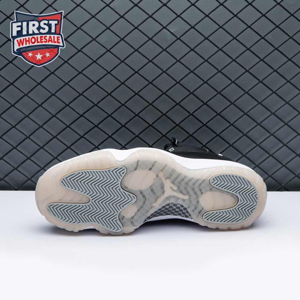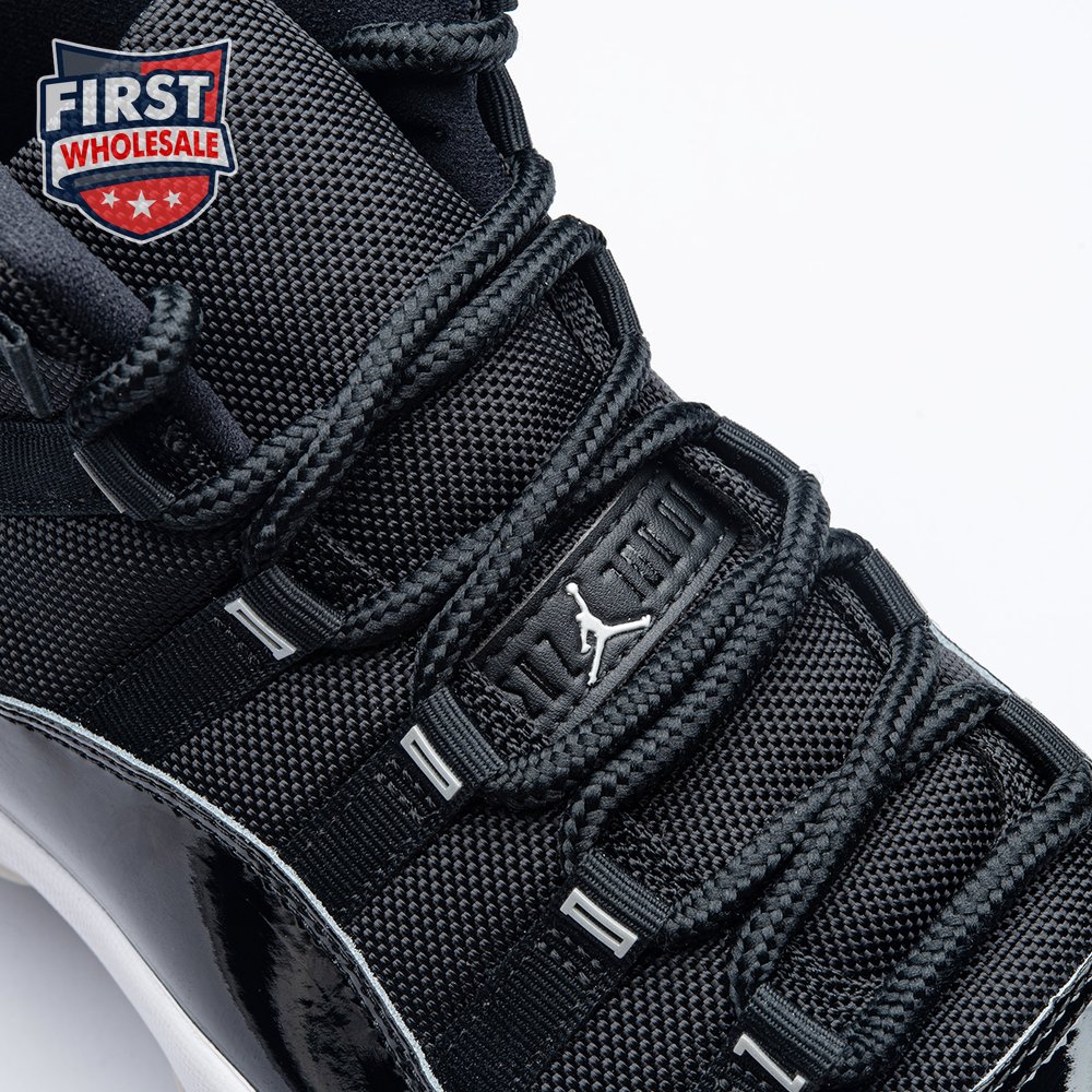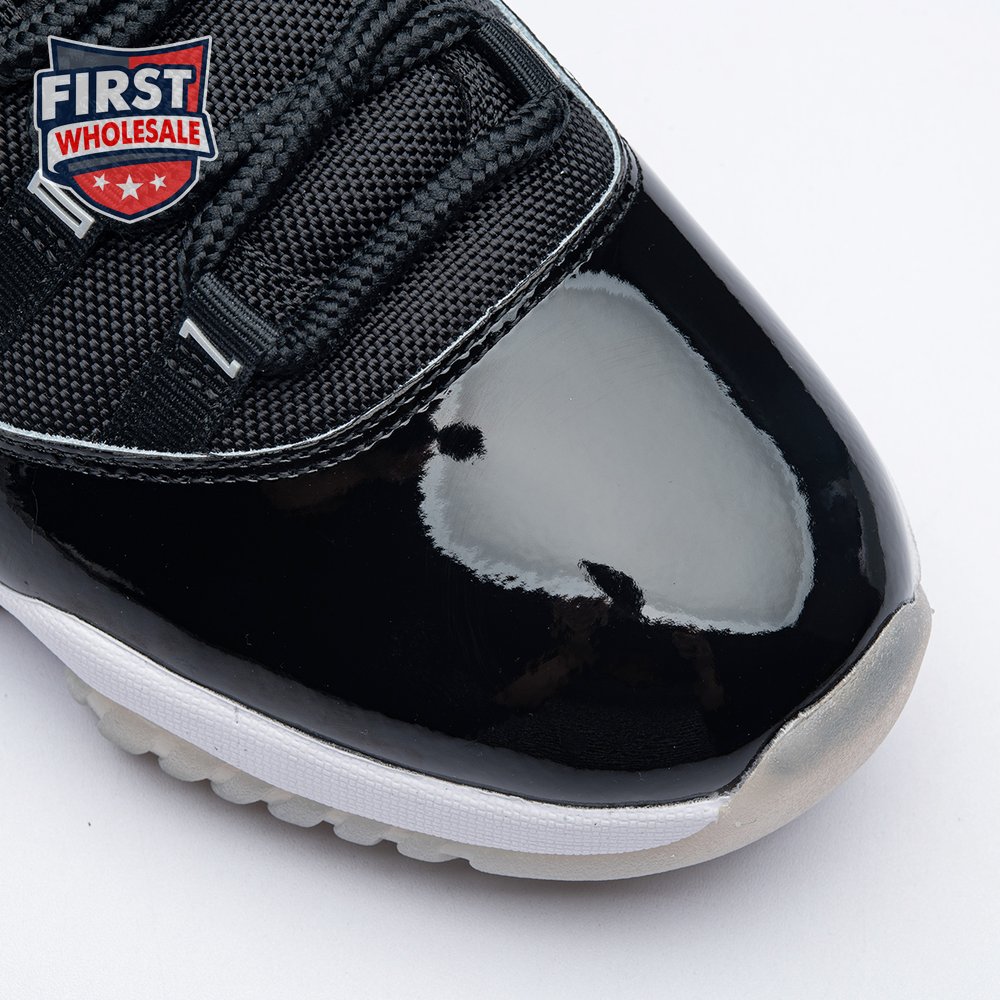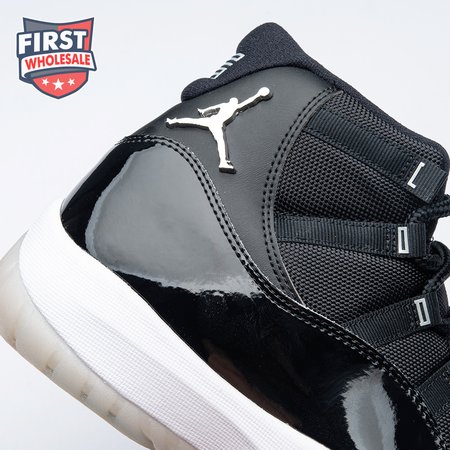 The Air Jordan 11 "Jubilee", also known as the Air Jordan 11 '25th Anniversary', celebrates the classic silhouette"s quarter-century birthday with a monochrome black finish throughout the upper, constructed from a traditional blend of ballistic mesh and patent leather. In keeping with the shoe"s silver anniversary, a 3D metallic Jumpman and matching "23" branding decorate the heel, while "Jordan" is spelled out in stylized silver lettering on each of the sneaker"s eyelets. The mid-top rides on a classic white foam midsole, supported by a translucent rubber outsole.