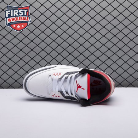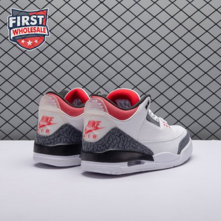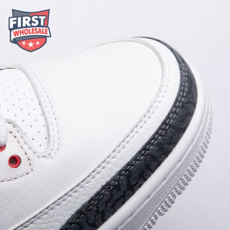 The Air Jordan 3 Retro Denim SE "Fire Red" draws inspiration from premium Japanese denim, featuring the twill material on the signature elephant-print overlays at the toe, heel and eyestay. The rest of the upper is constructed from white tumbled leather with contrasting Fire Red accents on the metal eyelets and perforated leather collar. The crimson hue is repeated on the sneaker"s branding hits, including a Nike logo on the translucent heel piece.