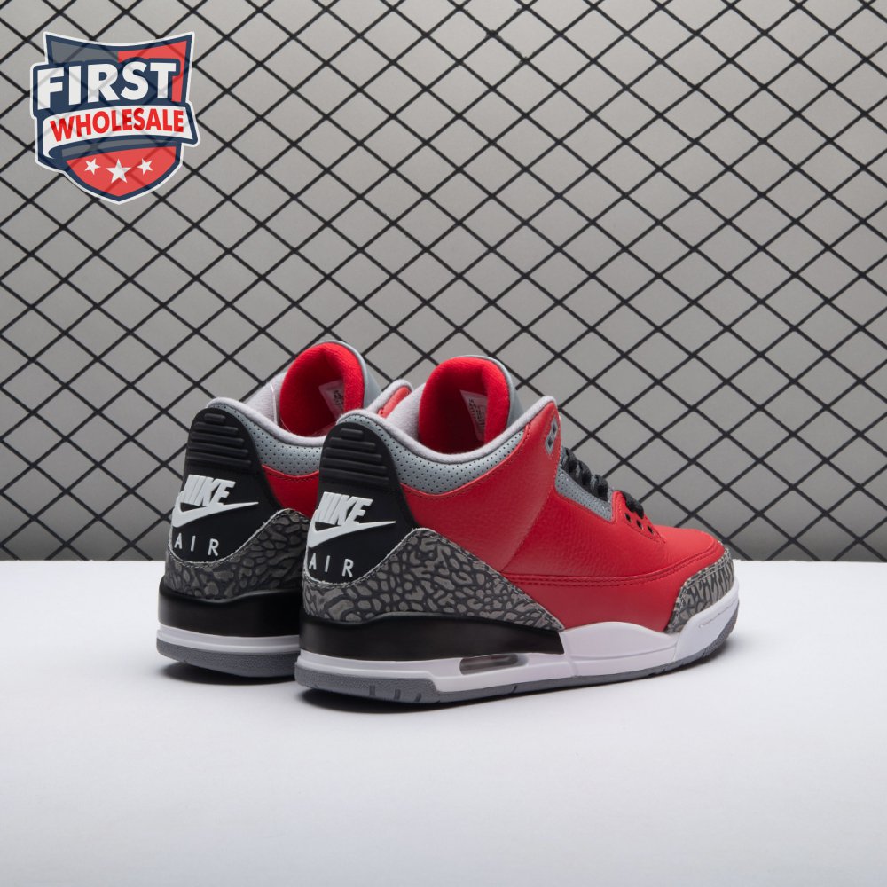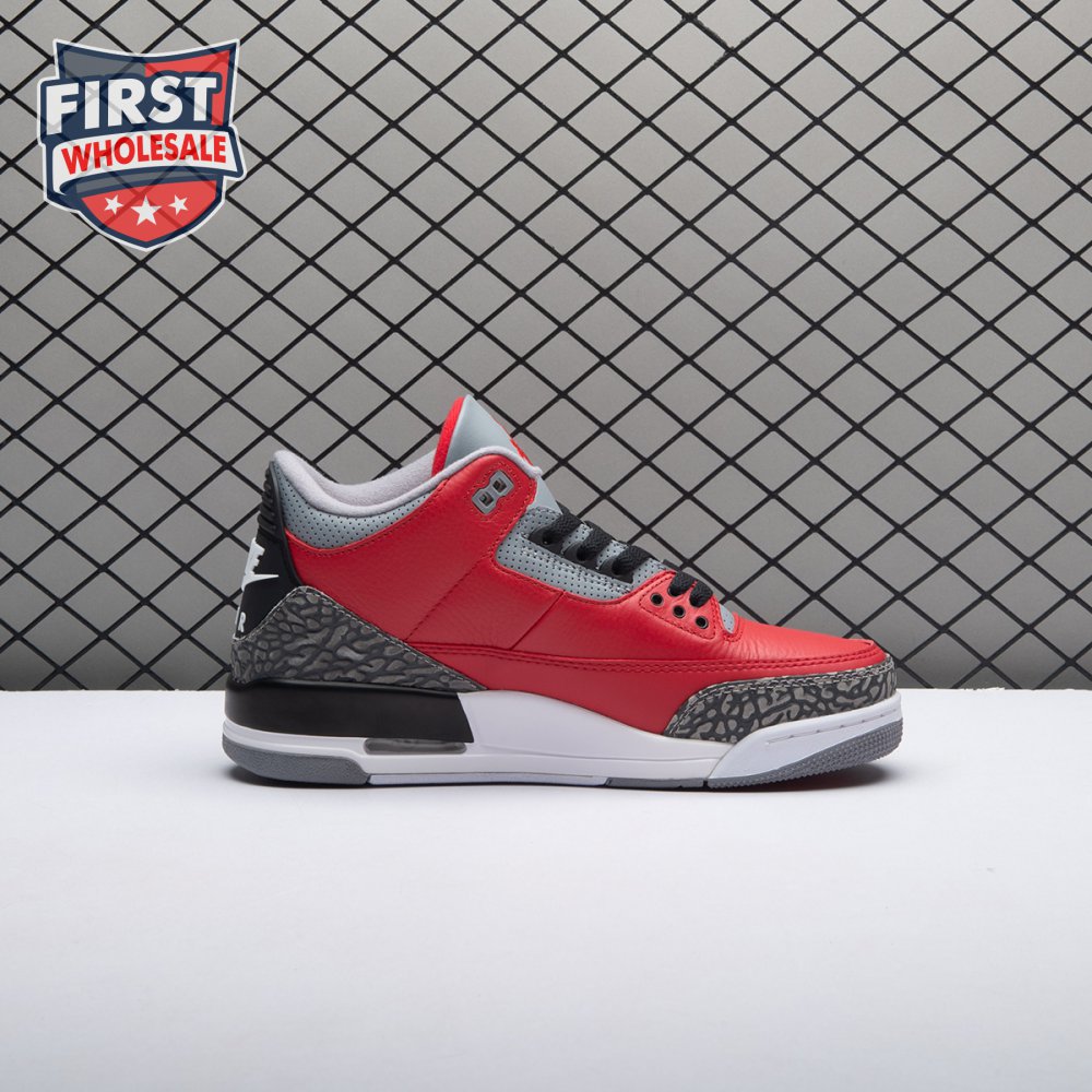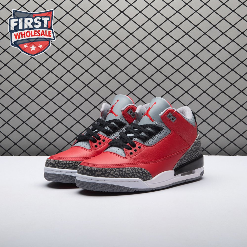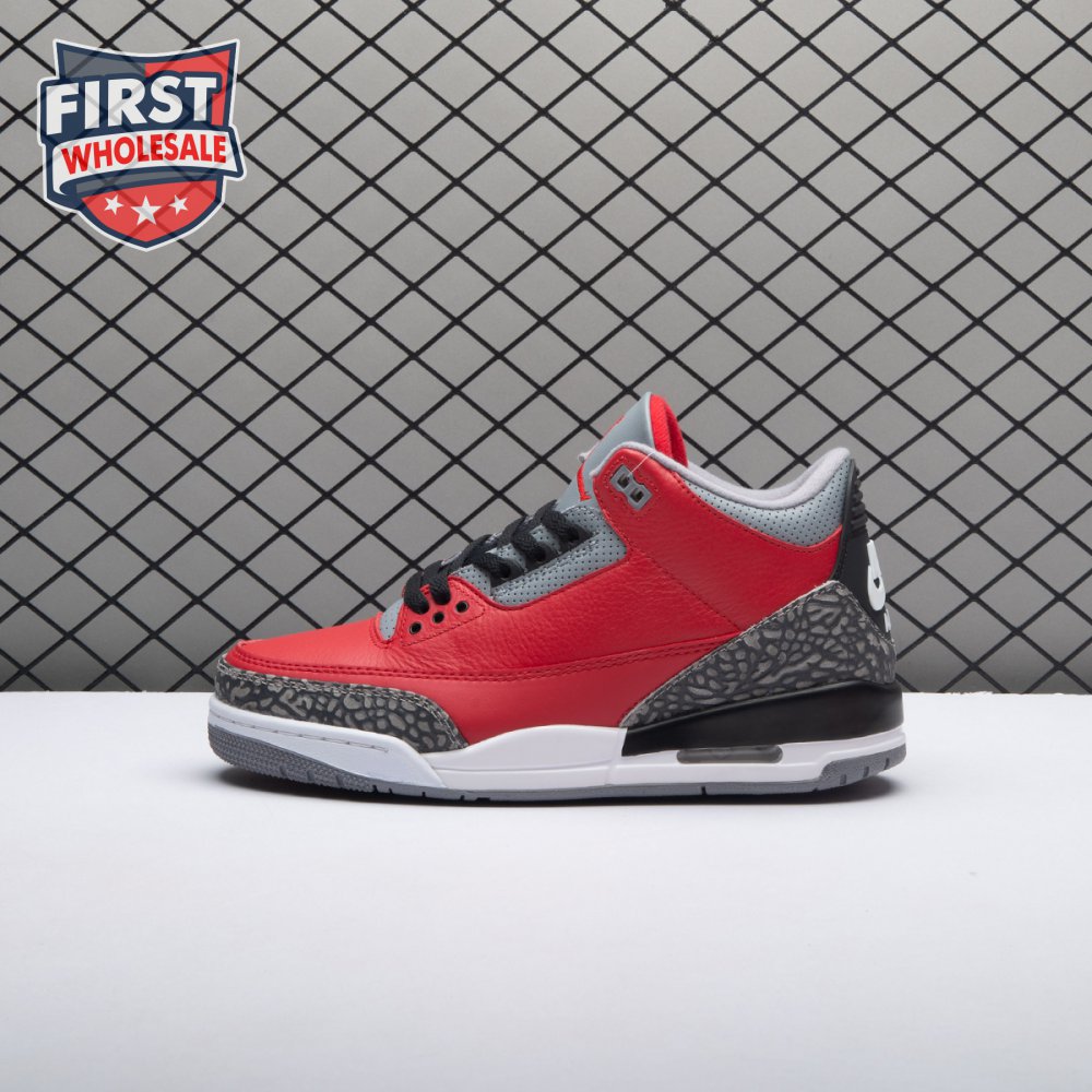 Dropping in conjunction with the 2020 NBA All-Star Weekend in Chicago, the Air Jordan 3 Retro SE 'Unite' showcases classic color blocking that stays true to the sneaker"s Windy City heritage. The tumbled leather upper is finished in a bold Fire Red hue, complete with Nike Air branding and grey cement-print overlays at the toe and heel. The mid-top is anchored by a contrasting white midsole with visible Air sole cushioning.