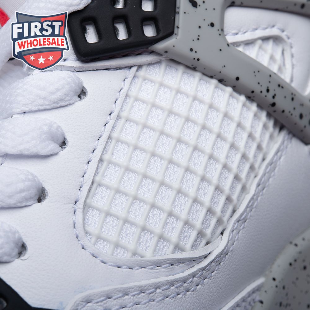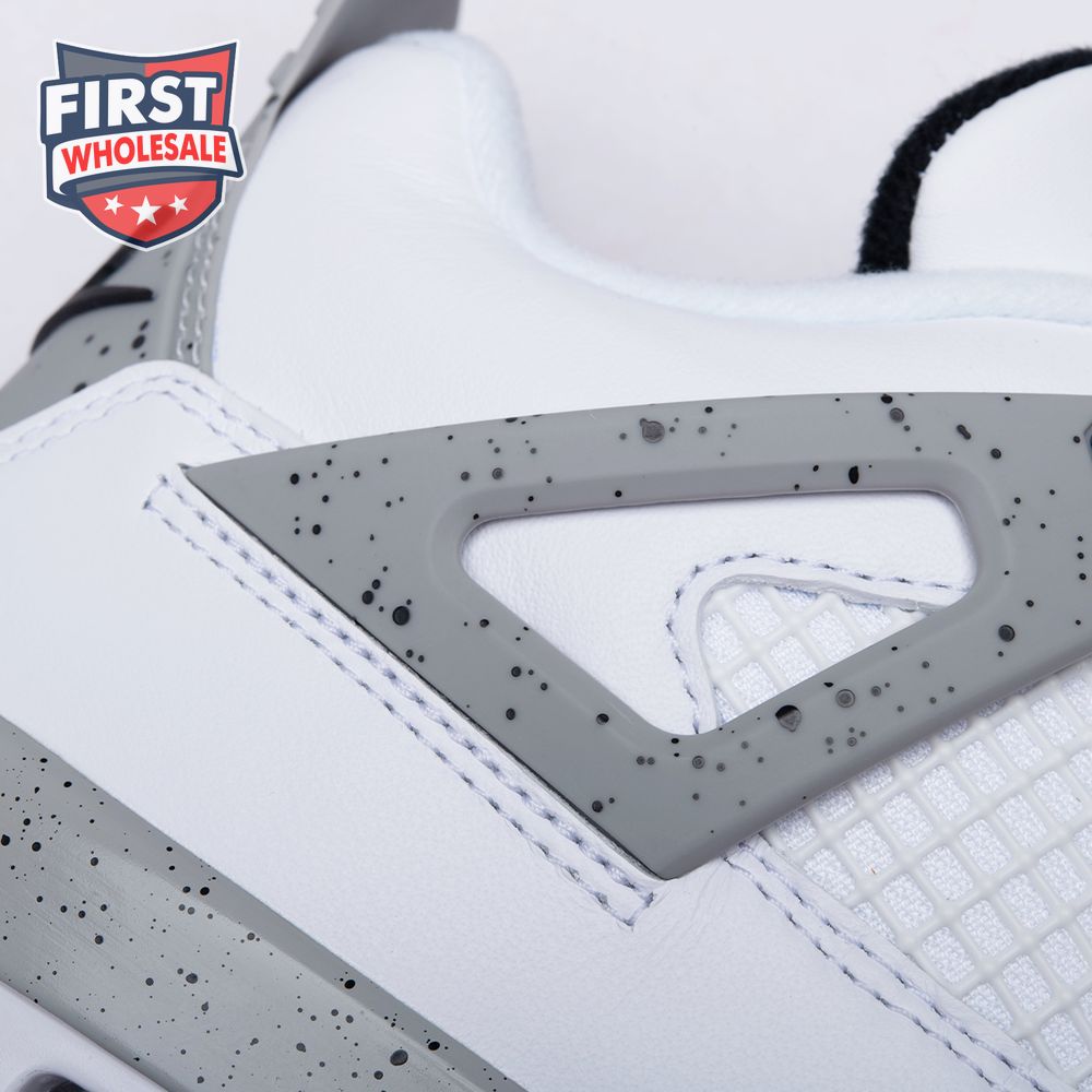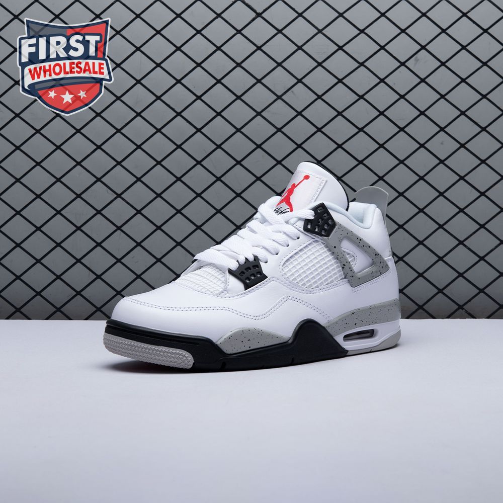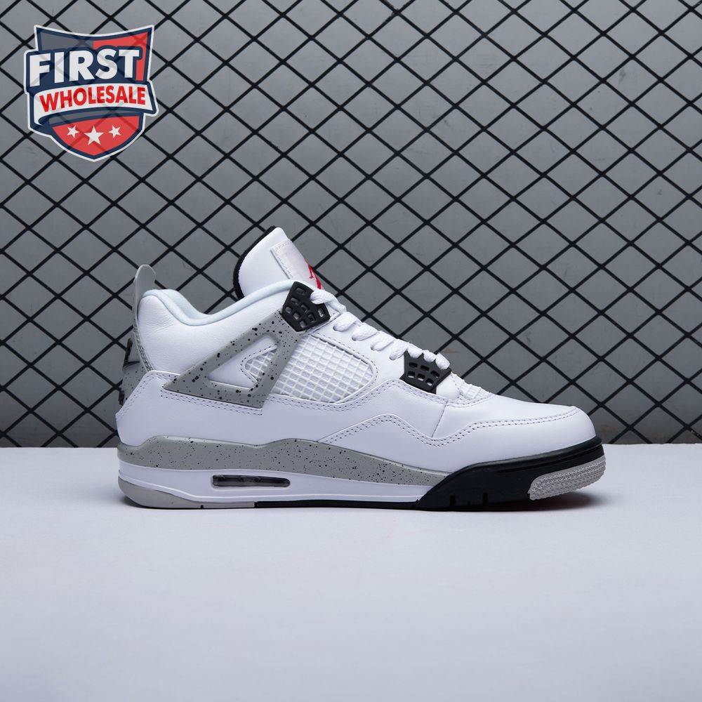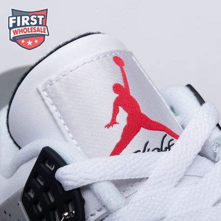 The Air Jordan 4 Retro 'Cement'combines a white leather upper with Fire Red, Black, and speckled Cement Grey accents. Released in 1989 as one of the four original colorways, the sneaker was retro"d in 1999 and 2016, but this 2012 Air Jordan 4 Retro 'Cement" is the only version that swaps the OG Nike Air branding for a Jumpman logo on the heel.