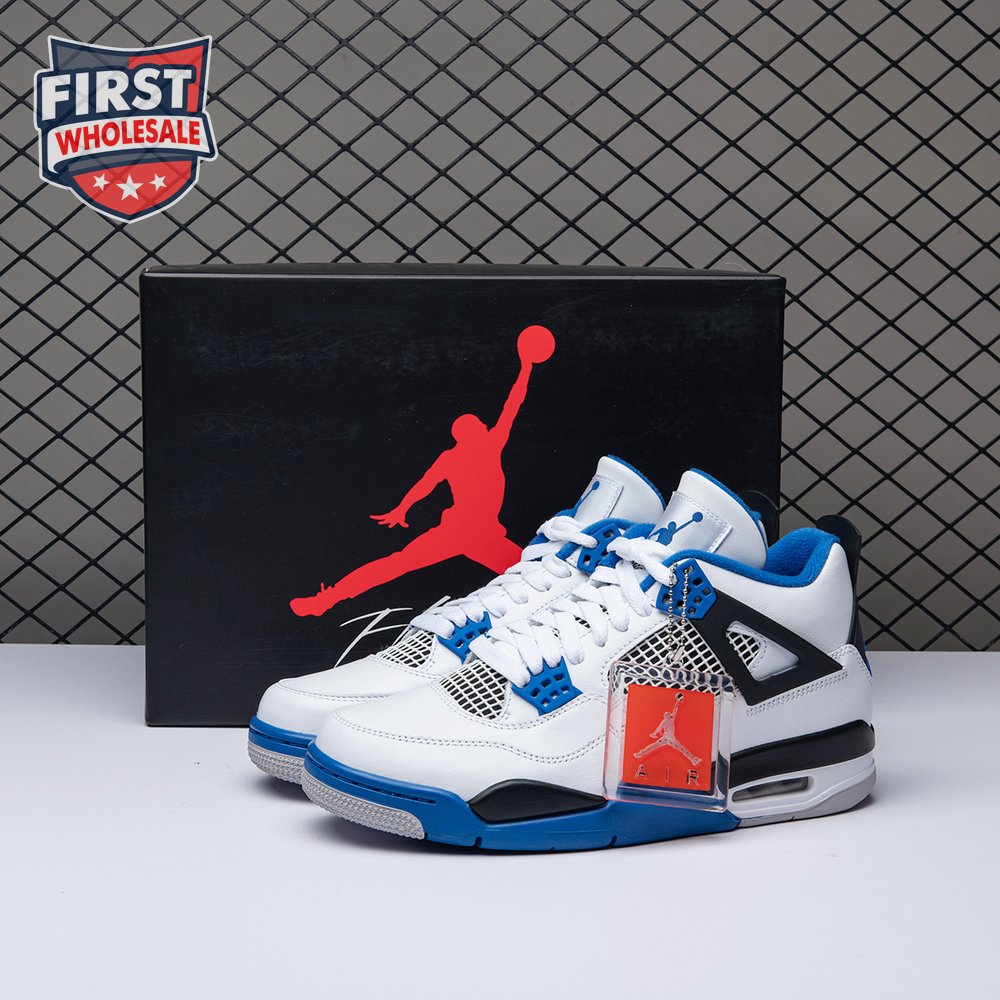 The Air Jordan 4 Retro "Motorsports" is inspired by a 2006 friends and family colorway created for the 4th anniversary of MJ"s Motorsport"s Racing team. Released to the general public in March of 2017, the sneaker incorporates the teams" white, black, and varsity royal blue colors, but removes the Mars Blackmon heel accent that graced the 2006 sneake. An Air Jordan 4 Retro 'Motorsports Alternate," released a few months later in a black colorway.