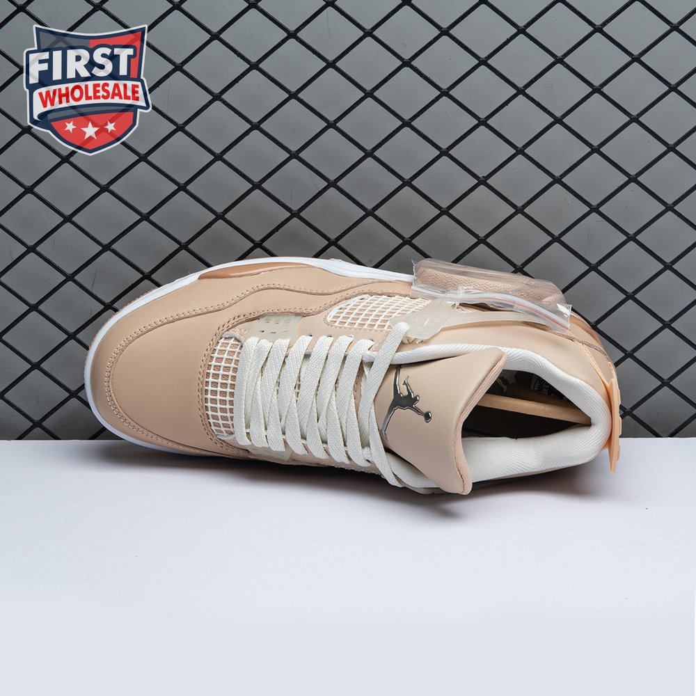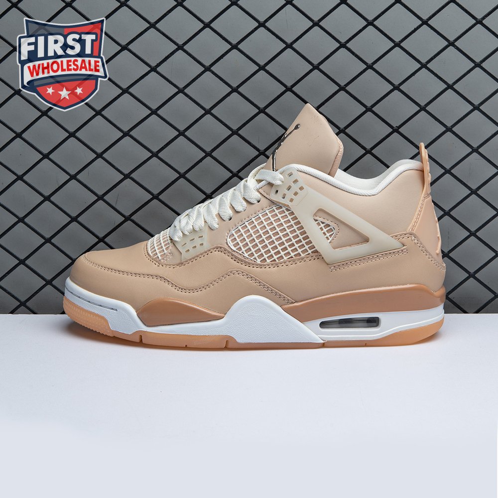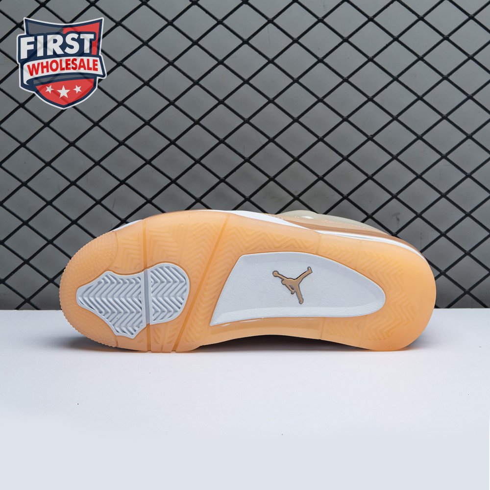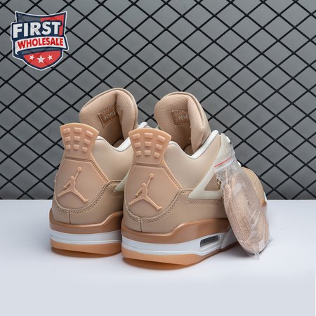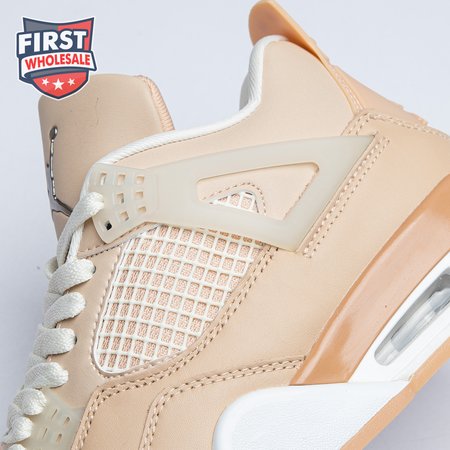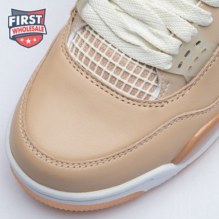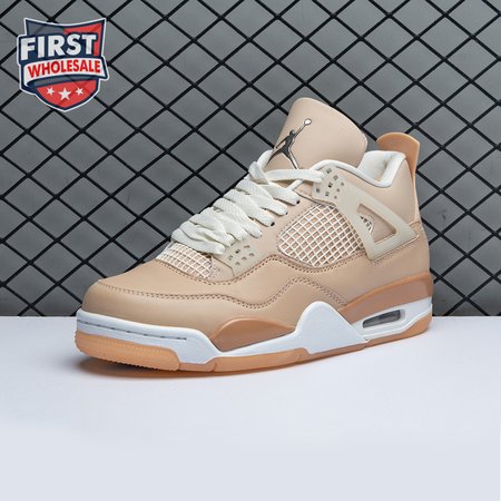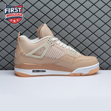 The women"s Air Jordan 4 Retro "Shimmer" offers a subdued take on the classic silhouette forever tied to "The Shot." A monochromatic tan finish suffuses the leather upper, featuring structural wings, molded eyelets and quarter panel netting for enhanced breathability. The neutral color scheme is enlivened by a metallic silver Jumpman atop the tongue. Lightweight cushioning arrives via a polyurethane midsole, fitted with visible Air sole cushioning in the heel and supported by a herringbone-tread outsole.