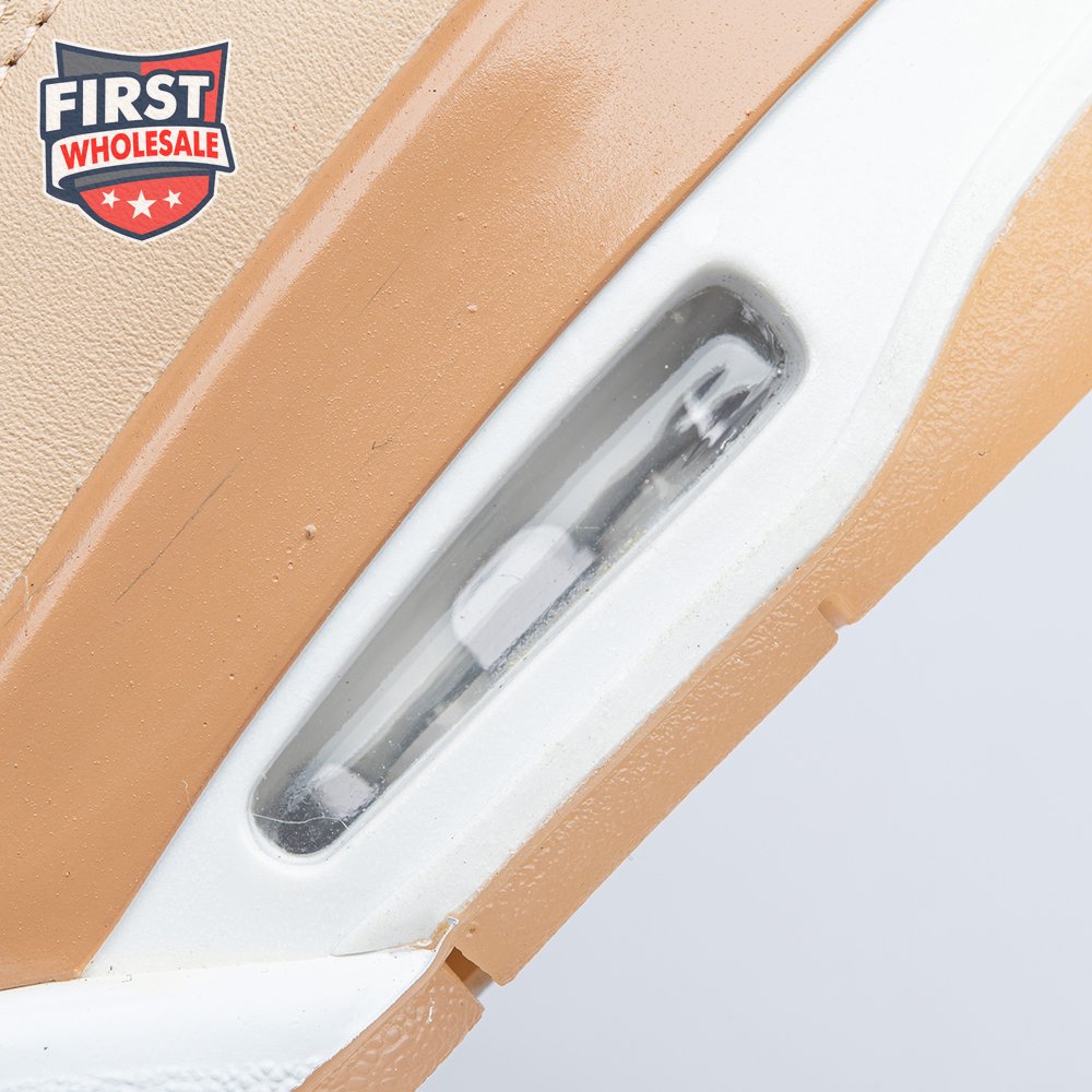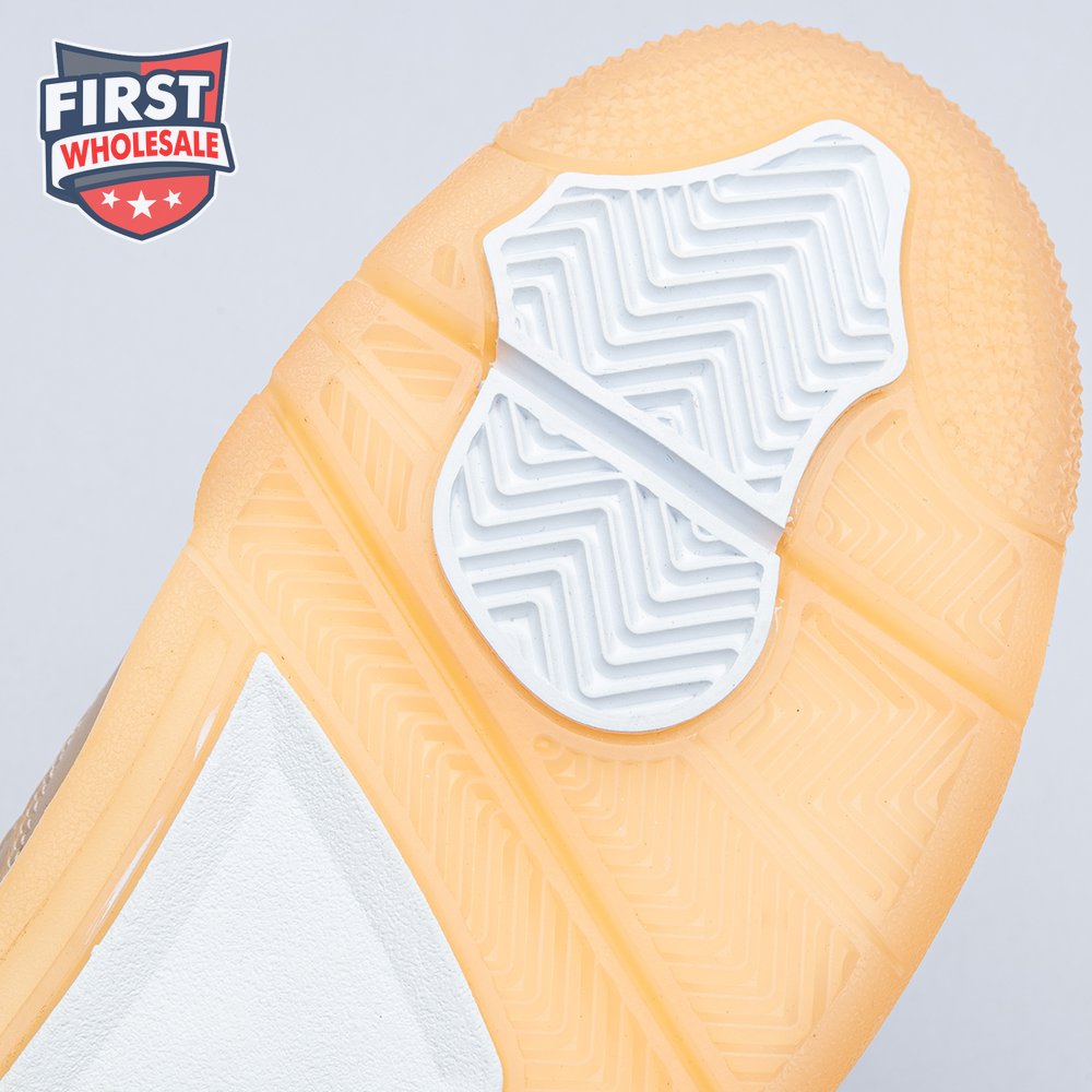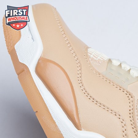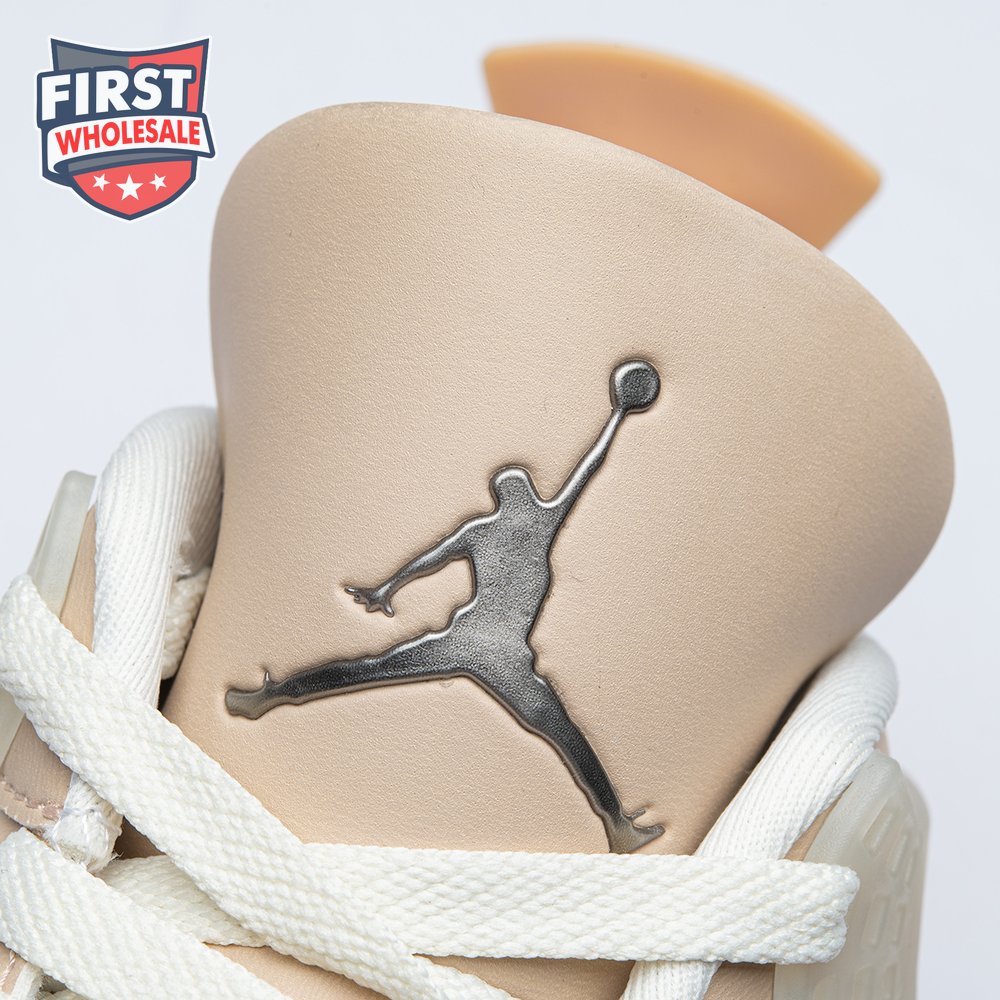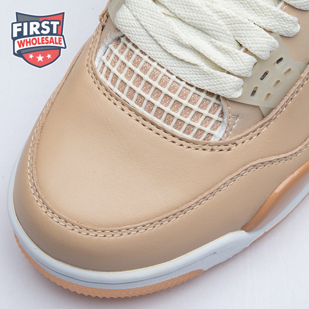 The women"s Air Jordan 4 Retro "Shimmer" offers a subdued take on the classic silhouette forever tied to "The Shot." A monochromatic tan finish suffuses the leather upper, featuring structural wings, molded eyelets and quarter panel netting for enhanced breathability. The neutral color scheme is enlivened by a metallic silver Jumpman atop the tongue. Lightweight cushioning arrives via a polyurethane midsole, fitted with visible Air sole cushioning in the heel and supported by a herringbone-tread outsole.