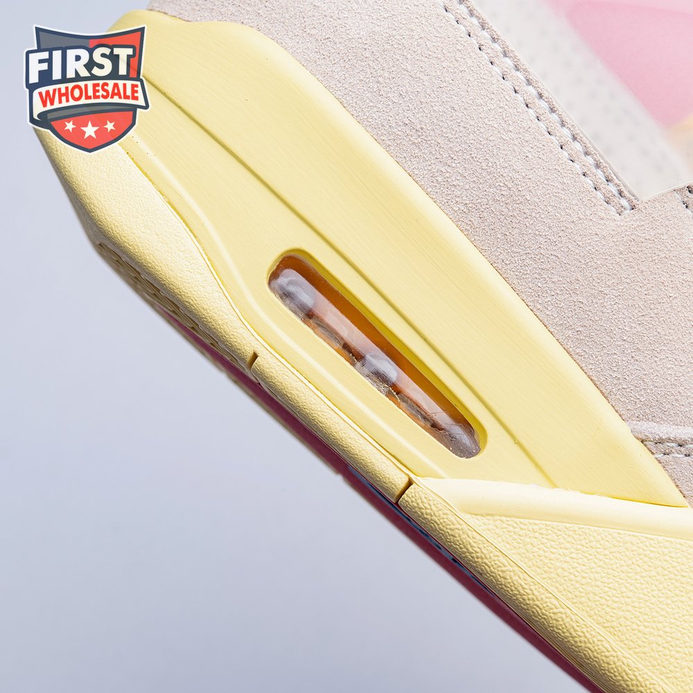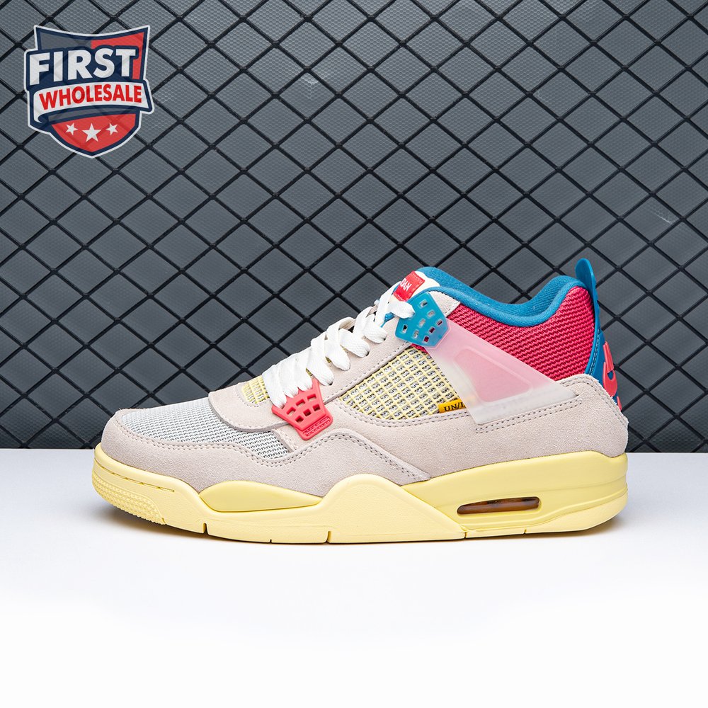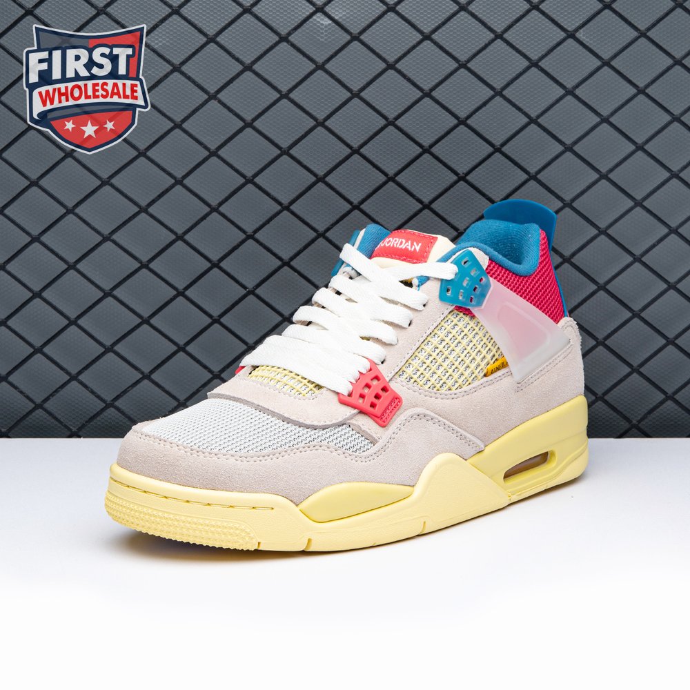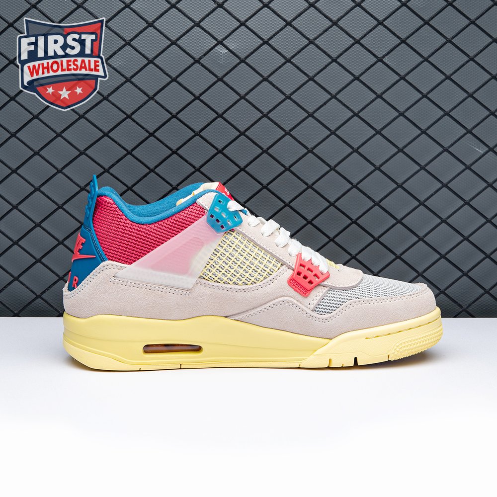 The sequel to the creative partners" Air Jordan 1 collaboration from 2018, the Union LA x Air Jordan 4 Retro "Guava Ice" delivers a vibrant take on the classic silhouette. The upper combines soft pink suede with breathable mesh on the collar and toe box. Semi-translucent TPU wings provide structural support, taking cues from an original Tinker Hatfield sketch. Additional branding hits include a yellow Union tab on the lateral quarter panel, Nike Air on the back heel and a woven Air Jordan tag atop the folded-over tongue.