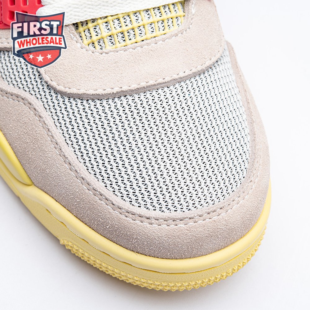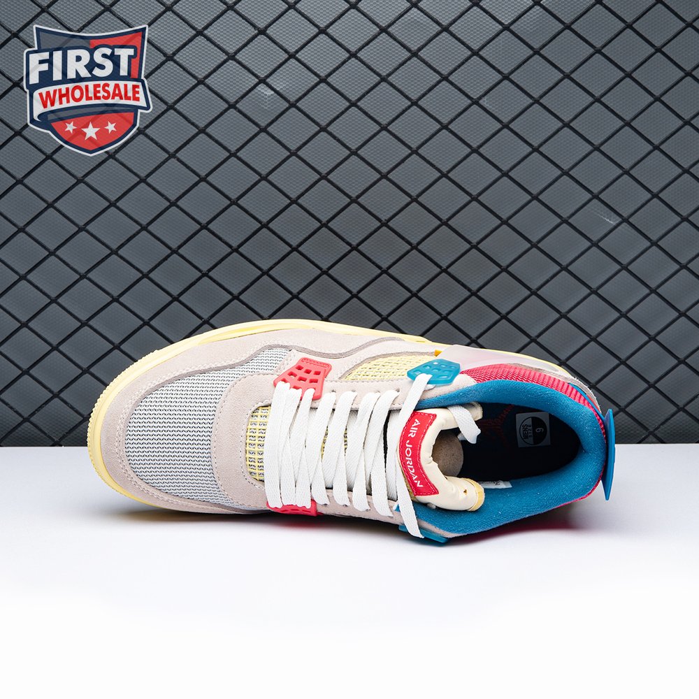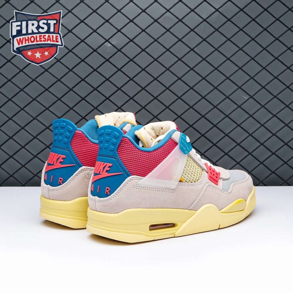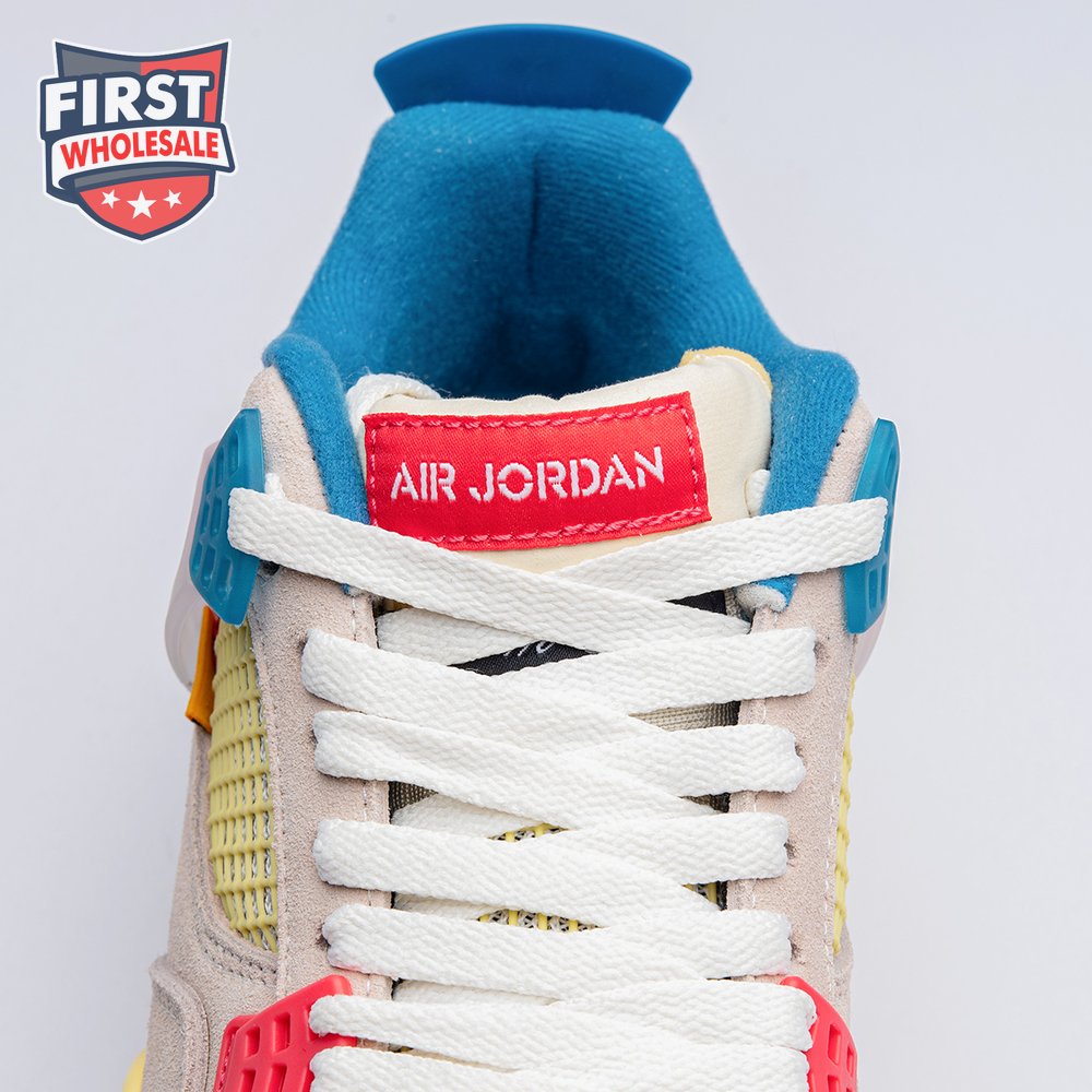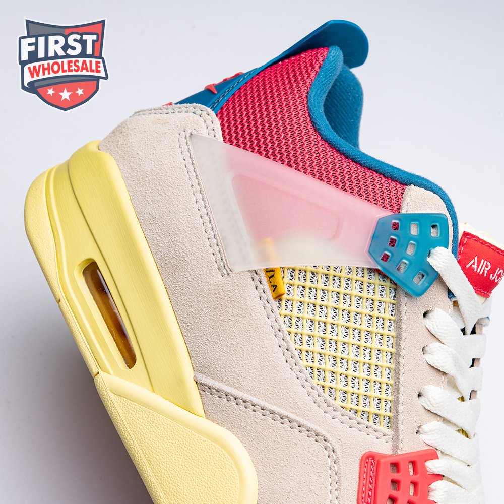 The sequel to the creative partners" Air Jordan 1 collaboration from 2018, the Union LA x Air Jordan 4 Retro "Guava Ice" delivers a vibrant take on the classic silhouette. The upper combines soft pink suede with breathable mesh on the collar and toe box. Semi-translucent TPU wings provide structural support, taking cues from an original Tinker Hatfield sketch. Additional branding hits include a yellow Union tab on the lateral quarter panel, Nike Air on the back heel and a woven Air Jordan tag atop the folded-over tongue.