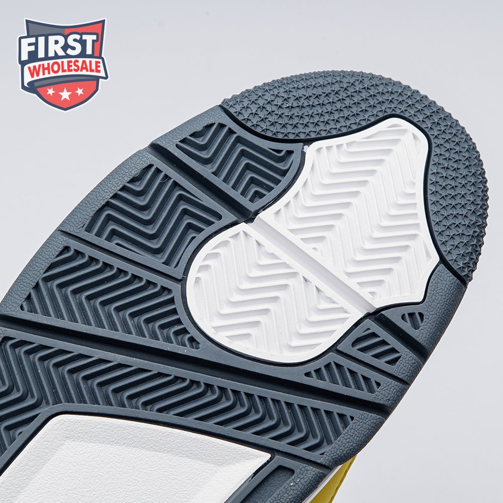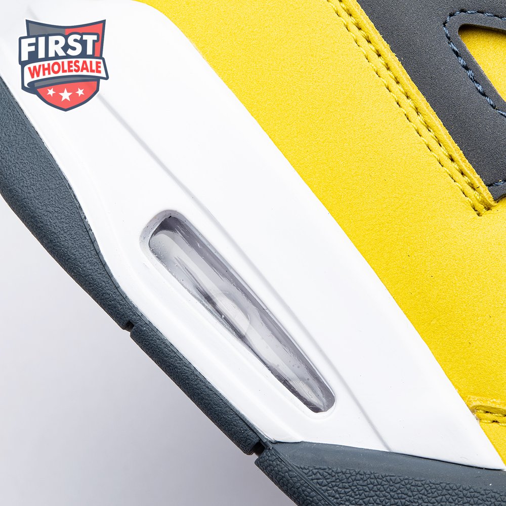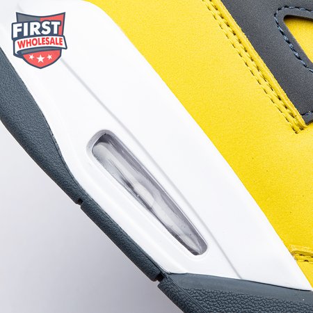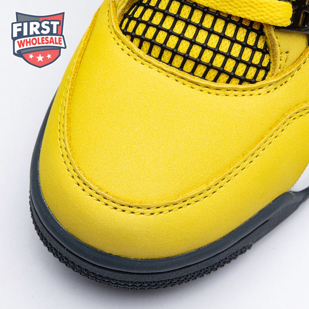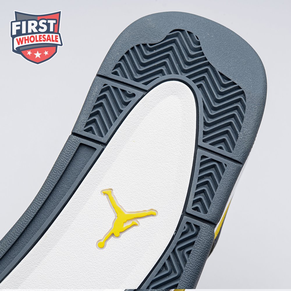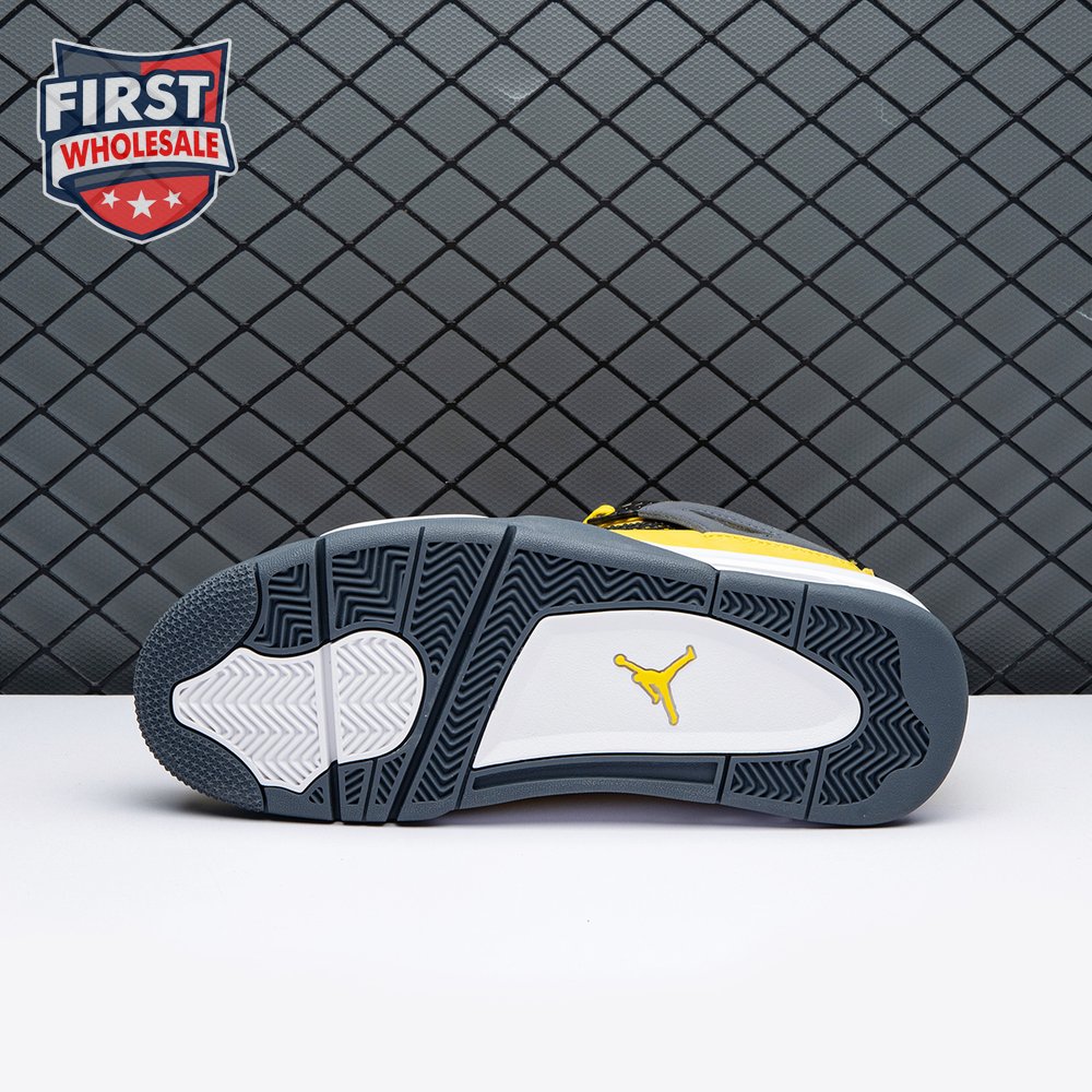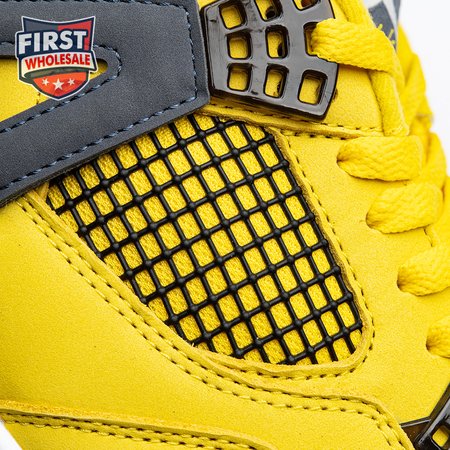 The "Lightning" edition of the Air Jordan 4 took color inspiration from seasonal colors of Michael Jordan"s Motorcycle racing team. The shoe pairs a Tour Yellow nubuck upper with grey detailing on the mesh paneling and lace closure. The "Lightning" was released alongside a "Thunder" colorway which came with a Rare Air jacket, while the "Lightning" color was bundled with a Rare Air t-shirt. You had to be Team Jordan members and sign in to Jumpman23.com to purchase these online exclusives.