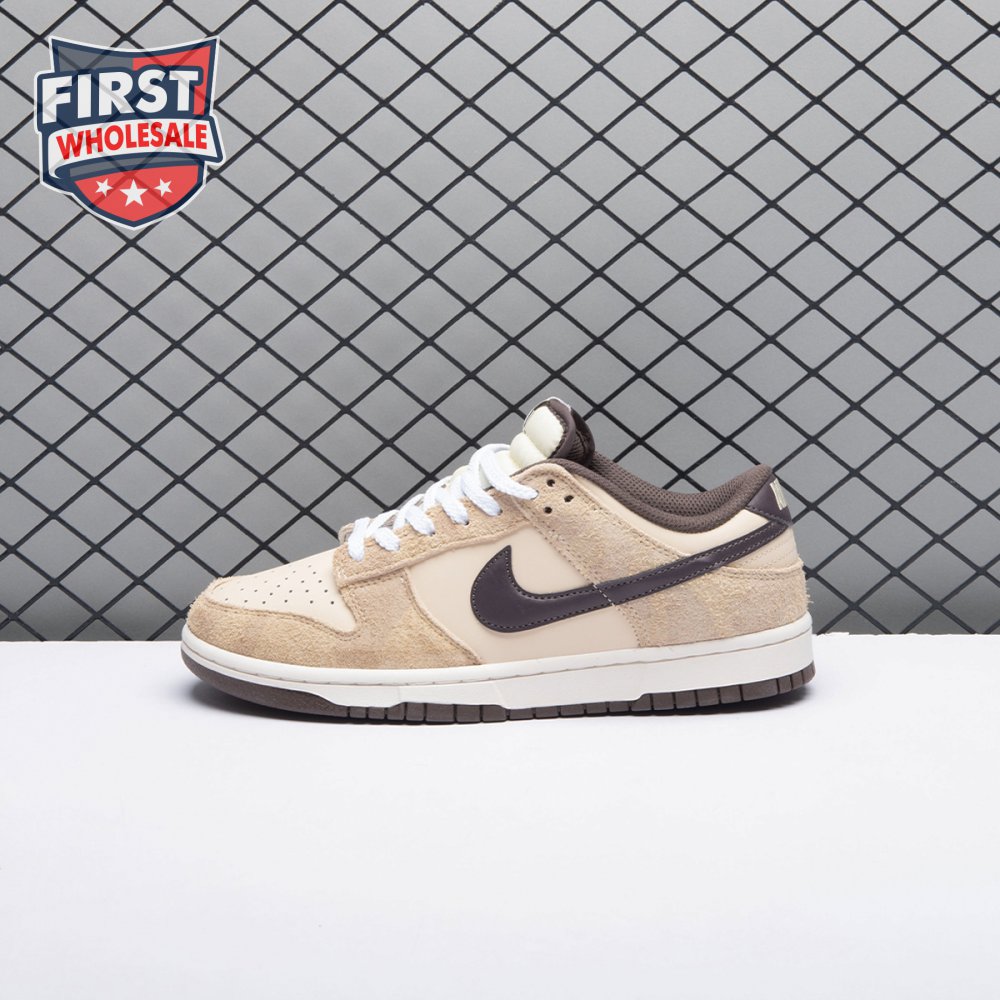 Releasing as one-half of the two-piece "Animal Pack," the Nike Dunk Low Premium "Cheetah" updates the vintage silhouette with a cream-colored leather upper. Tonal suede overlays are embellished with a subtle cheetah print, while contrasting brown accents make their way to the collar lining, leather Swoosh and heel tab, featuring an embroidered Nike wordmark. Additional Nike branding lands on the sockliner and a woven tag stitched atop a lightly padded nylon tongue.