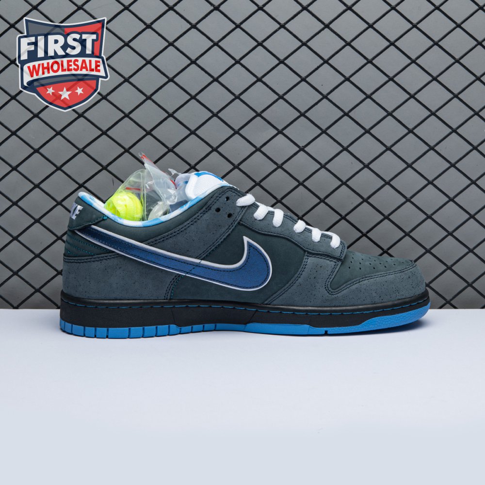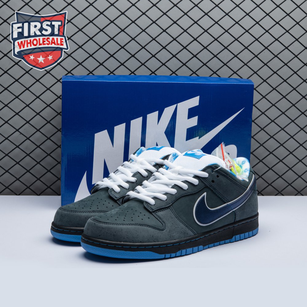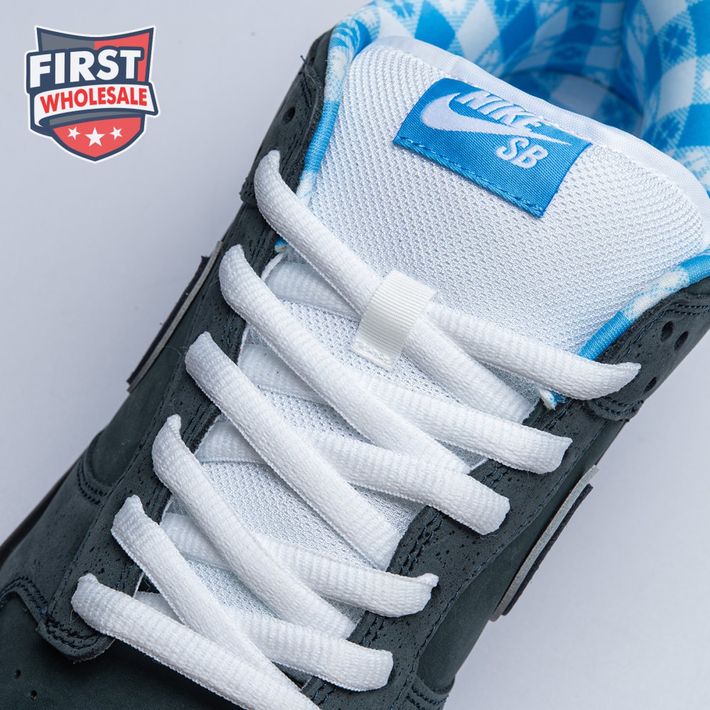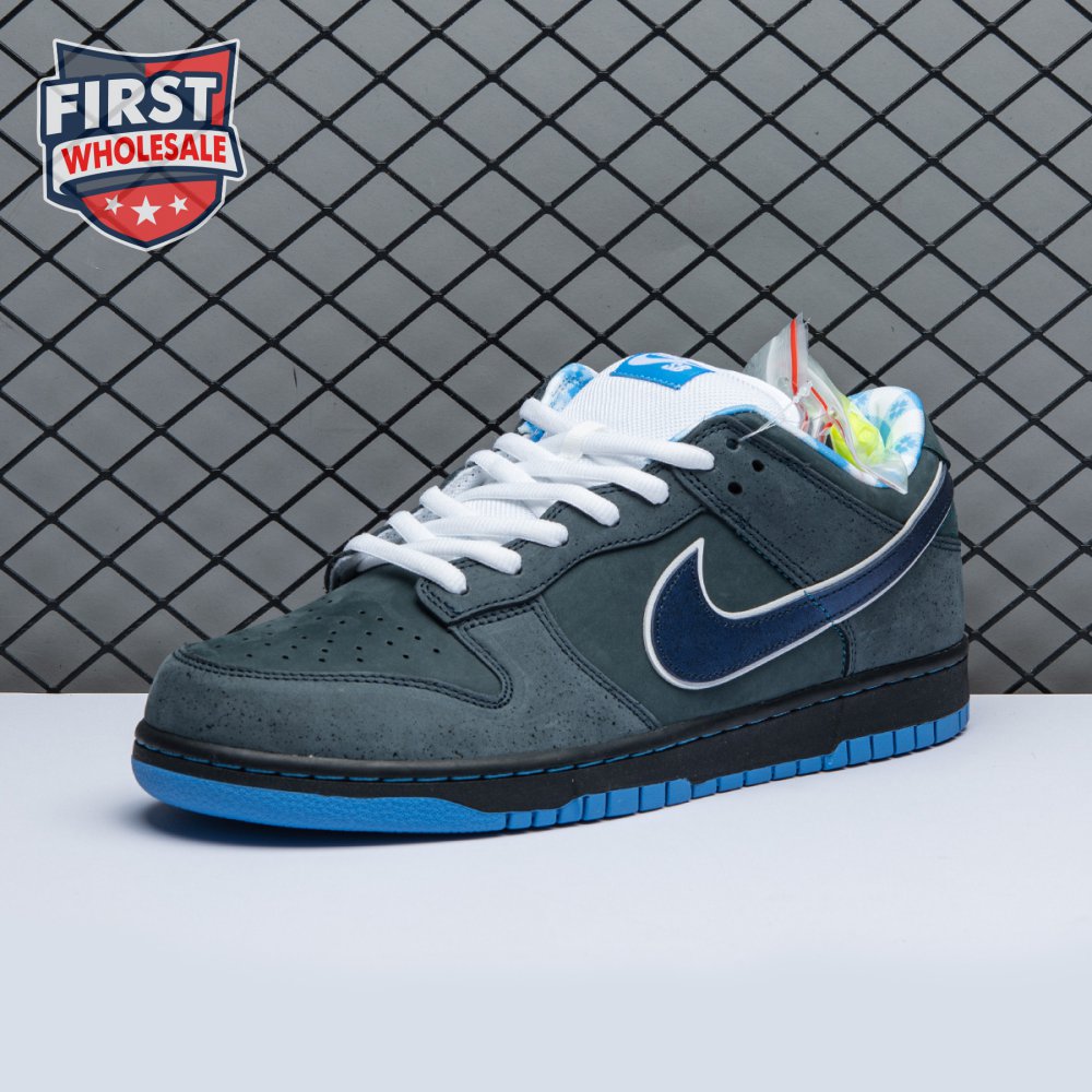 Designed in collaboration with New England retailer Concepts, the Dunk Low Premium SB "Blue Lobster" takes inspiration from the crustacean of the same name, featuring a Nightshade leather base with speckled Dark Slate overlays. Special details include a blue and white plaid pattern on the lining and an elastic band wrapped around the forefoot"a nod to the traditional safety measure used to secure lobster claws.