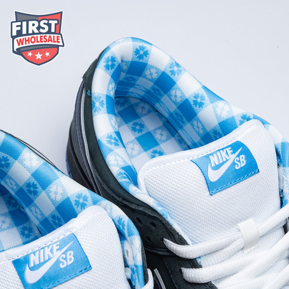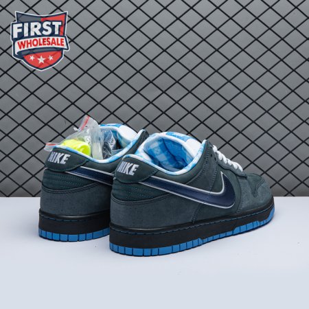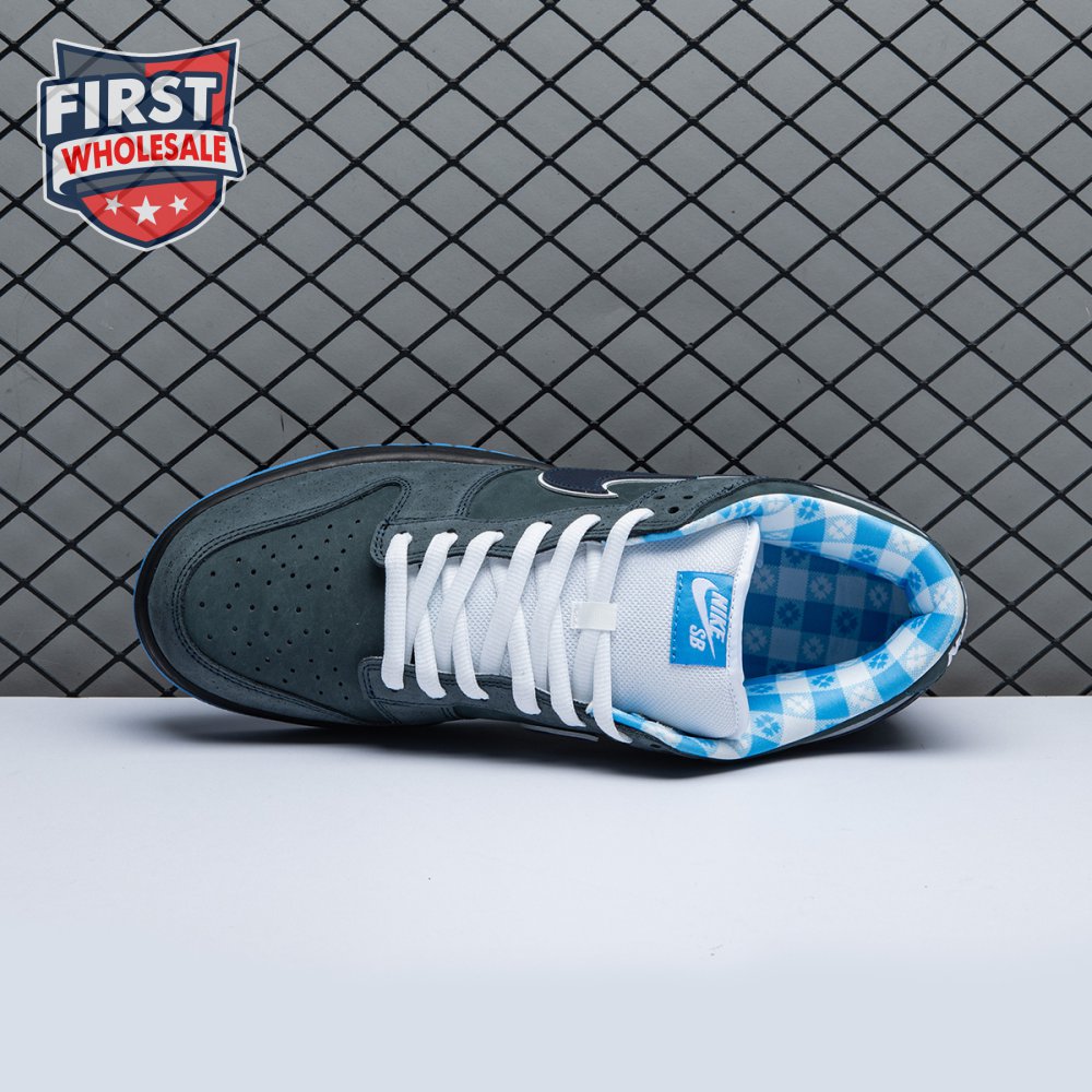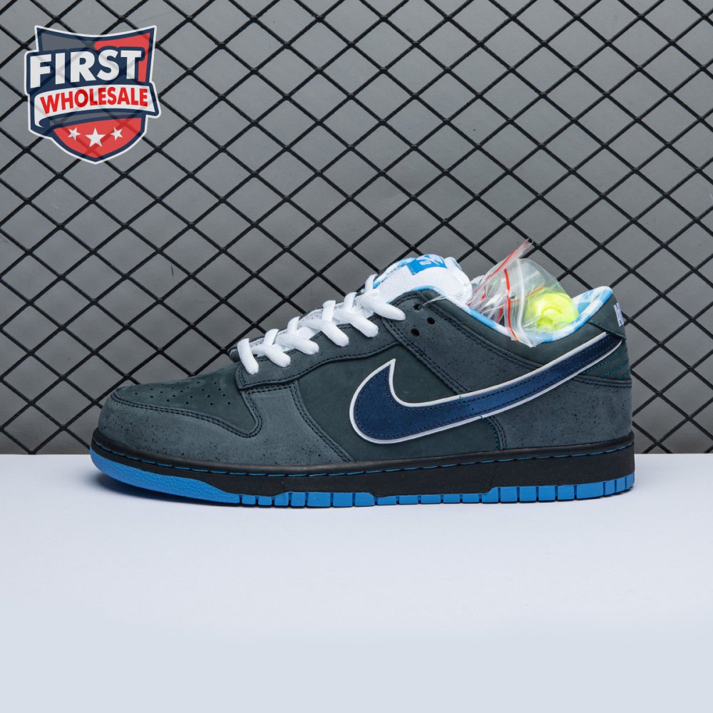 Designed in collaboration with New England retailer Concepts, the Dunk Low Premium SB "Blue Lobster" takes inspiration from the crustacean of the same name, featuring a Nightshade leather base with speckled Dark Slate overlays. Special details include a blue and white plaid pattern on the lining and an elastic band wrapped around the forefoot"a nod to the traditional safety measure used to secure lobster claws.