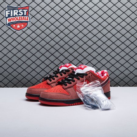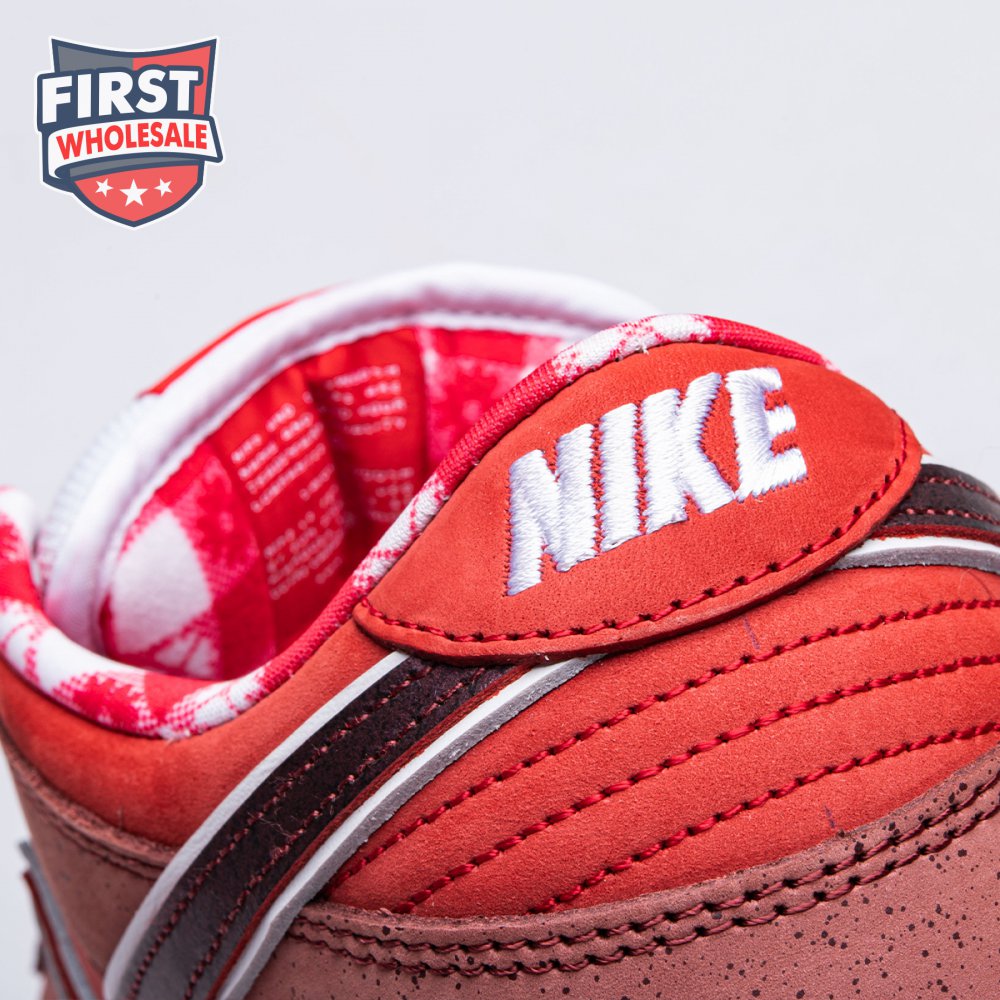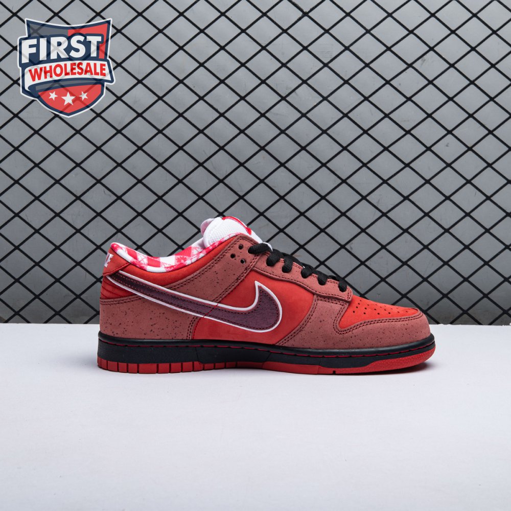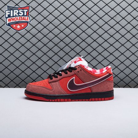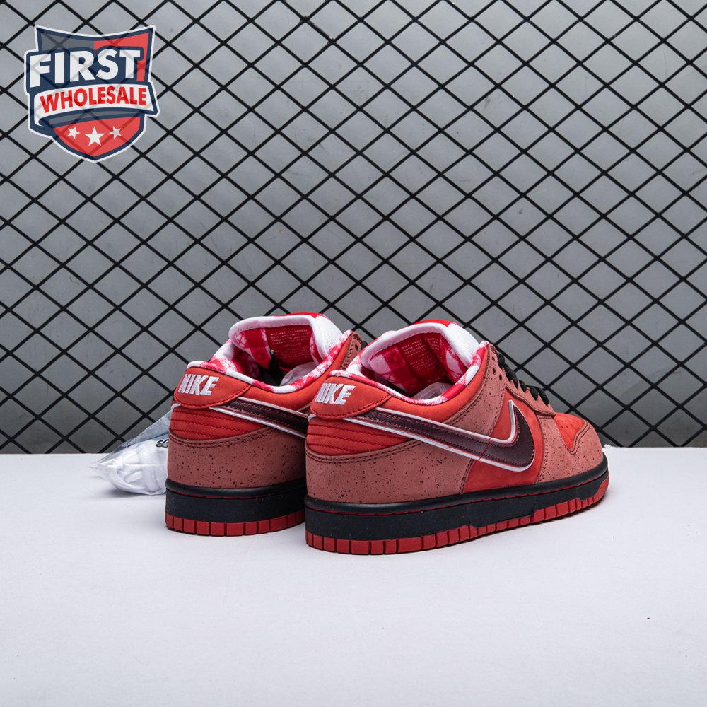 Boston based Concepts and Nike SB used lobster dinner as inspiration for this exclusive colorway. The Dunk Low Premium SB 'Lobster' features a soft suede upper dressed in an alternating Pink Clay and Sport Red color scheme as a nod to the crustacean"s iconic colors. The sneaker also boasts an oversized leather Swoosh, bib-inspired insole and sock liners and a bright blue wristband around the toe, which alludes to the blue elastic bands placed around a lobster's claws.