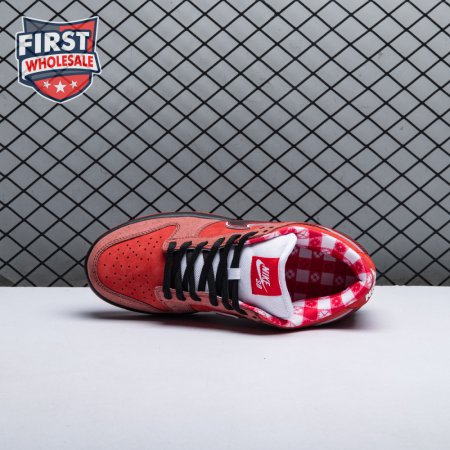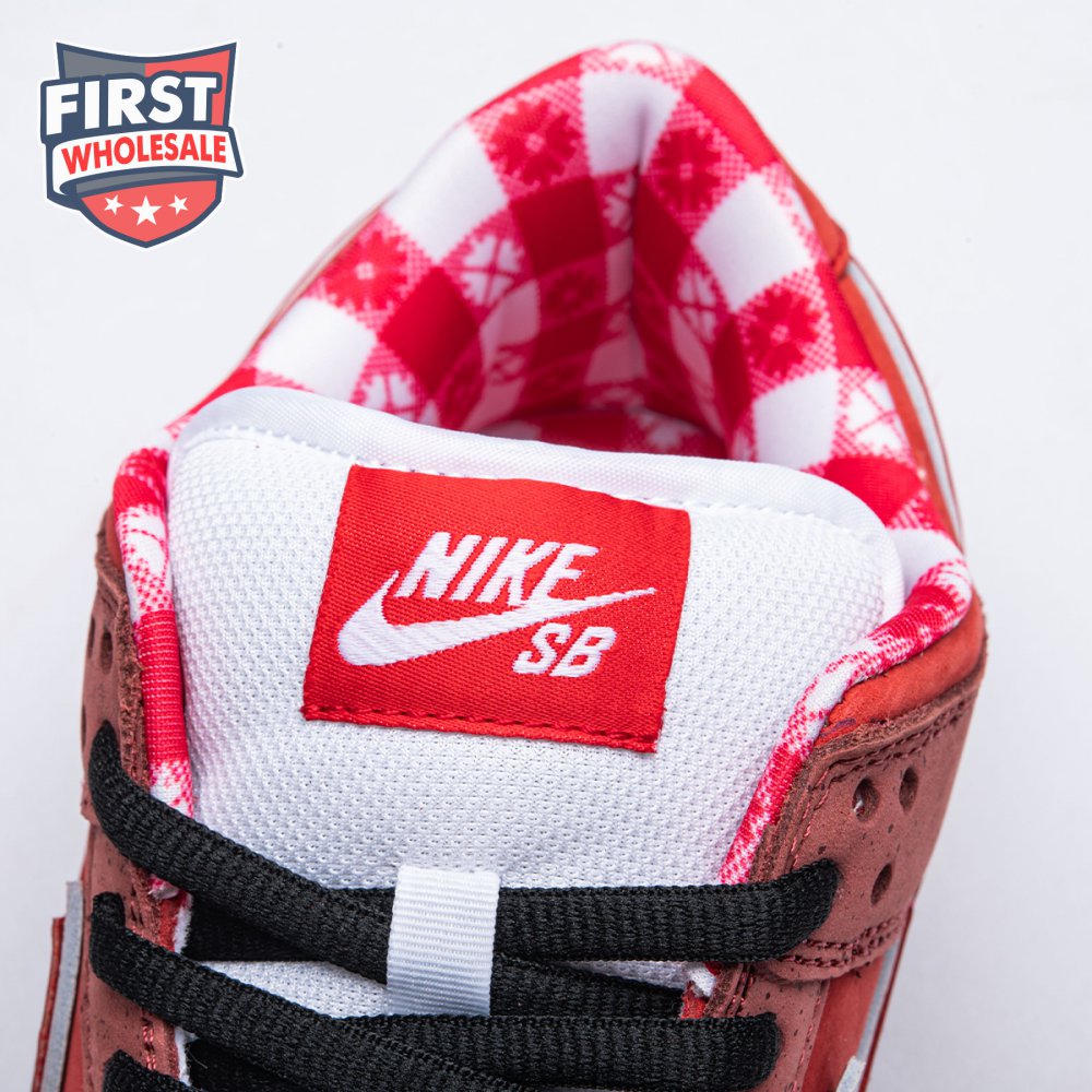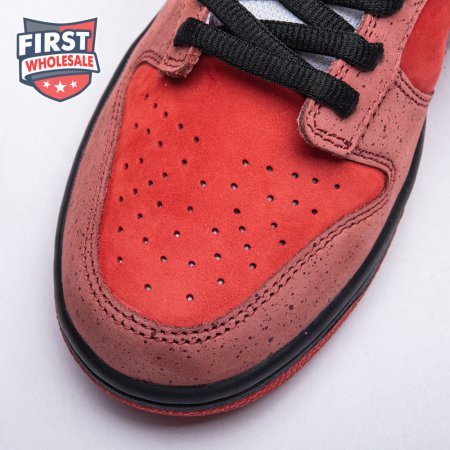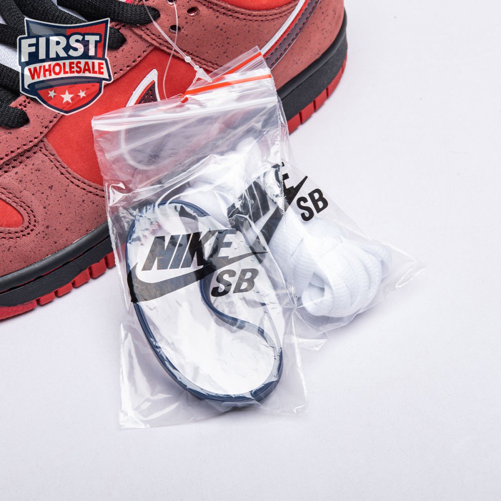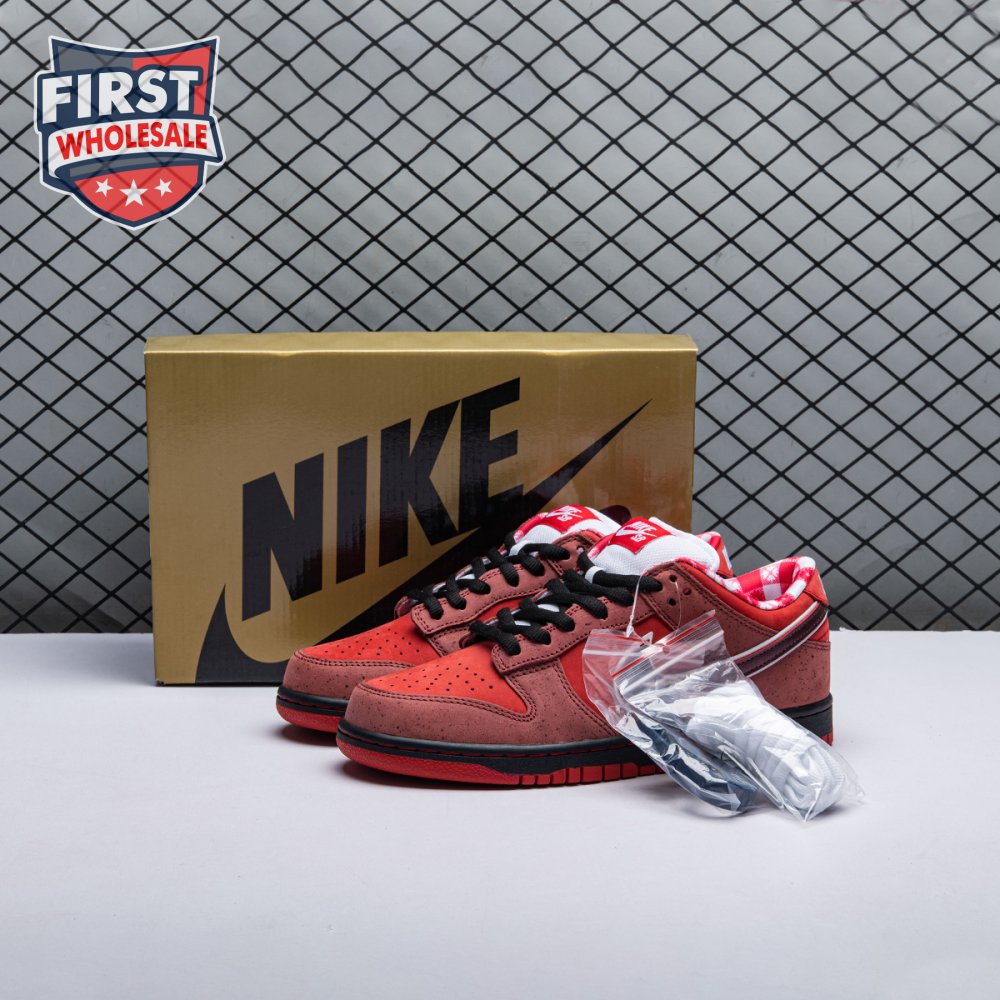 Boston based Concepts and Nike SB used lobster dinner as inspiration for this exclusive colorway. The Dunk Low Premium SB 'Lobster' features a soft suede upper dressed in an alternating Pink Clay and Sport Red color scheme as a nod to the crustacean"s iconic colors. The sneaker also boasts an oversized leather Swoosh, bib-inspired insole and sock liners and a bright blue wristband around the toe, which alludes to the blue elastic bands placed around a lobster's claws.