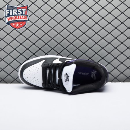 The Nike Dunk Low SB "Court Purple" delivers a straightforward colorway of the classic silhouette, redolent of the brand"s pink and silver box eras. The low-top makes use of a white leather upper with contrasting black overlays on the forefoot, eyestay and collar. A heel overlay in Court Purple is matched by the rubber outsole, featuring a grippy traction pattern originally designed for the hardwood. Zoom Air cushioning in the sockliner combines with a stuffed tongue to provide enhanced comfort.