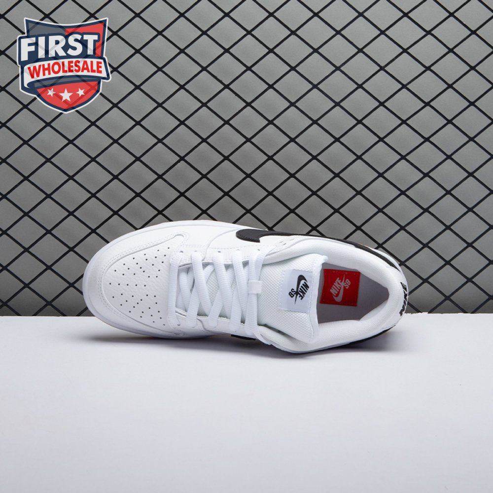 Launching in select skate shops as part of the "Orange Label" series, the Nike Dunk Low Pro ISO SB "White Navy" treats the classic silhouette to an elemental two-tone palette that recalls the brand"s early Orange Box era. The upper is constructed from white leather with a contrasting navy Swoosh. A Nike wordmark is embroidered on the heel tab in a matching navy finish, while the stuffed tongue features a woven Nike SB tag decorated with an orange Swoosh. Underfoot, a gum rubber outsole offers grippy traction.