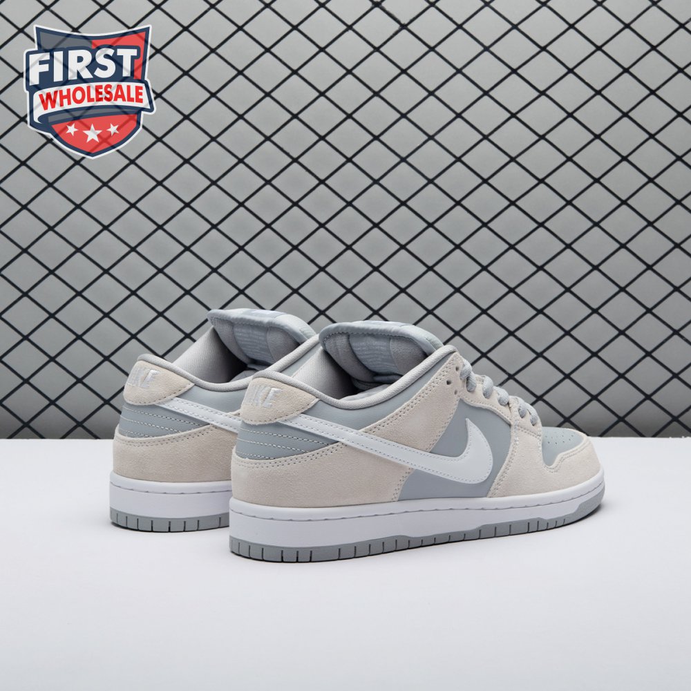Originally introduced in 1985 as a team basketball sneaker, the Peter Moore-designed silhouette is updated with the Nike SB Dunk Low Pro 'Summit White' sneaker. Released in July 2018, the suede and leather upper is paneled in a Summit White and Wolf Grey colorway, highlighted by its signature Swoosh and perforated vamp. The concealed Zoom Air unit enforces the two-tone sole to round out the classic shoe.