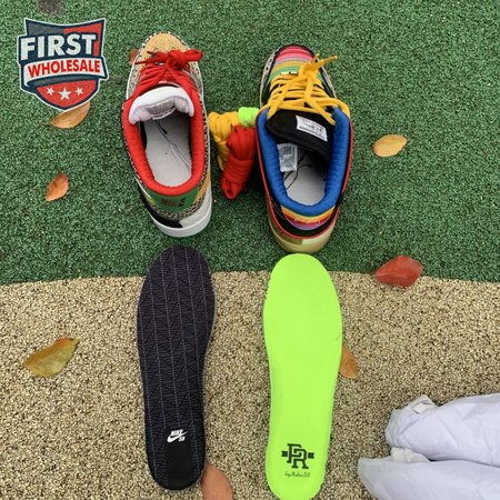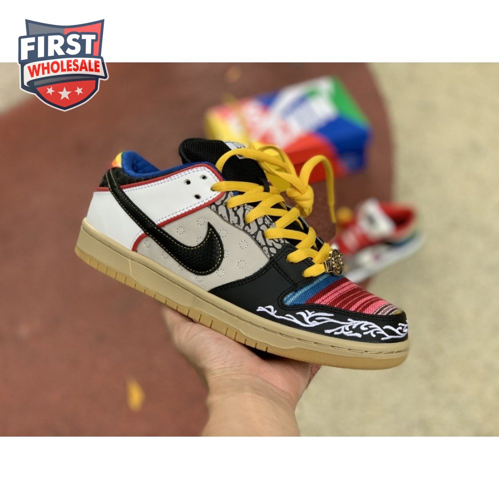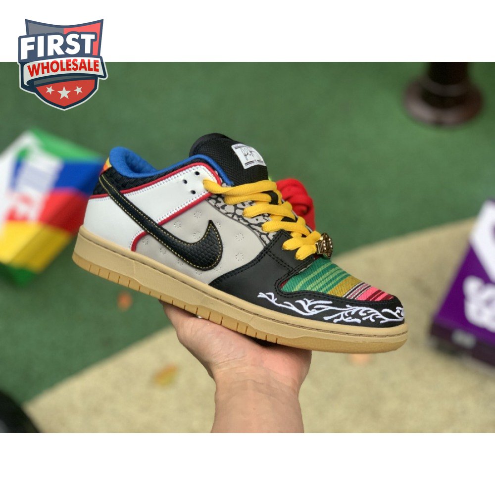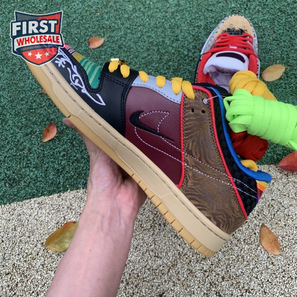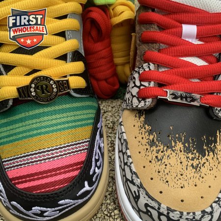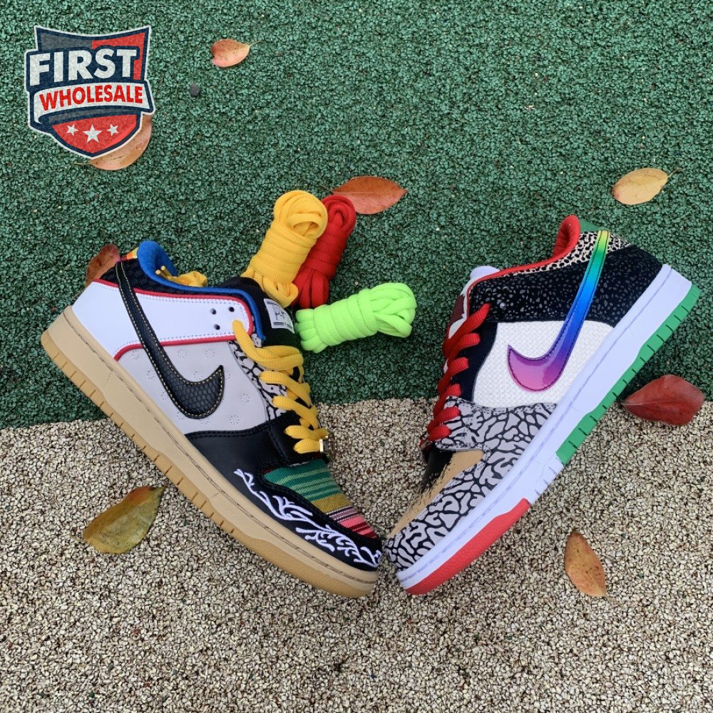 The Nike Dunk Low SB "What The Paul" celebrates the Swoosh"s longstanding partnership with Paul Rodriguez Jr., the first skateboarder to land his own signature Nike shoe. Each of the mismatched shoes is a greatest-hits medley featuring distinctive colors, textures and materials culled from P-Rod"s signature line. Multiple details are drawn from various colorways of the P-Rod 1, including the J-Rod"s elephant print overlays and toe boxes that reference the "Mexican Blanket" and "Stash" editions. Additional highlights include the P-Rod 2"s quilted lining and a metallic lace jewel taken from the athlete"s Mexico-themed SB Dunk High from 2020.
