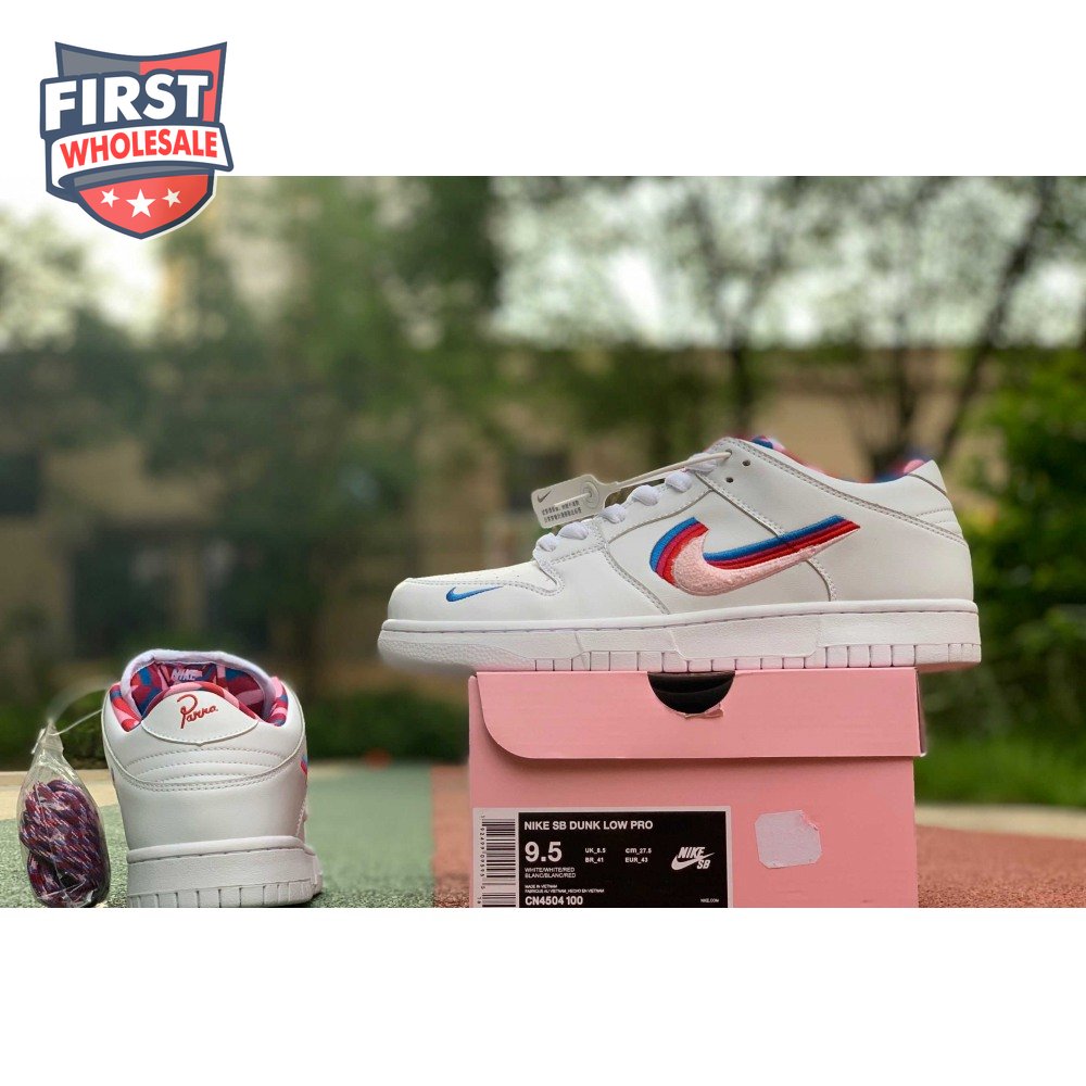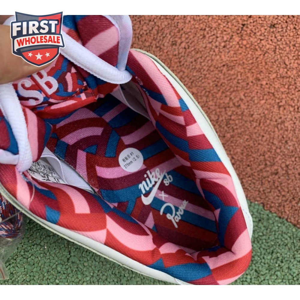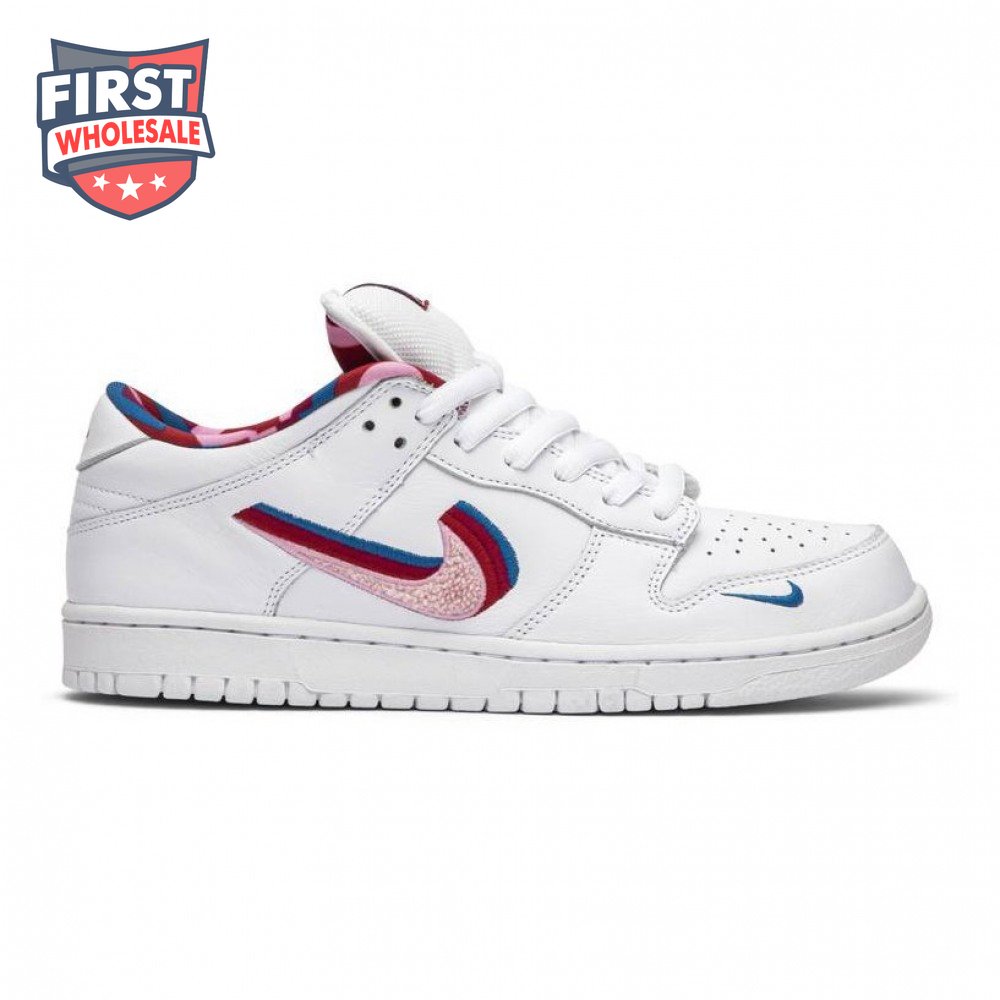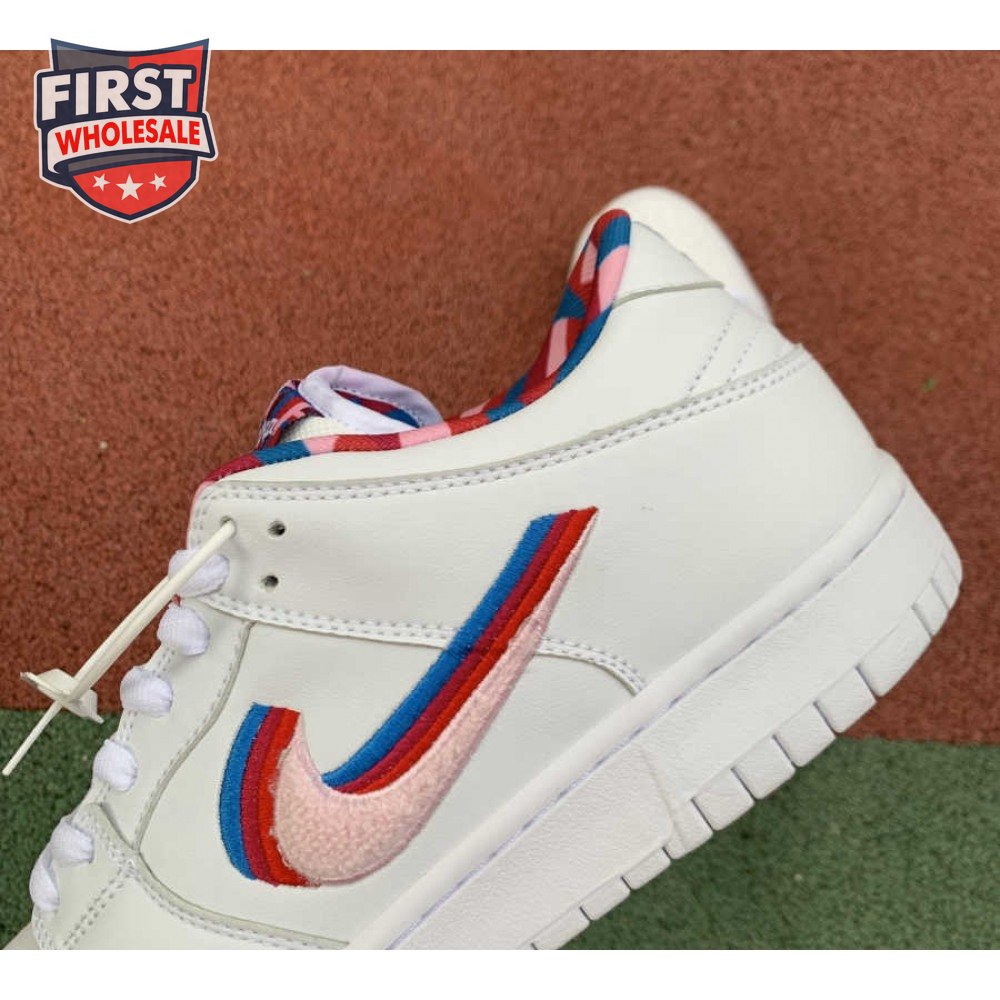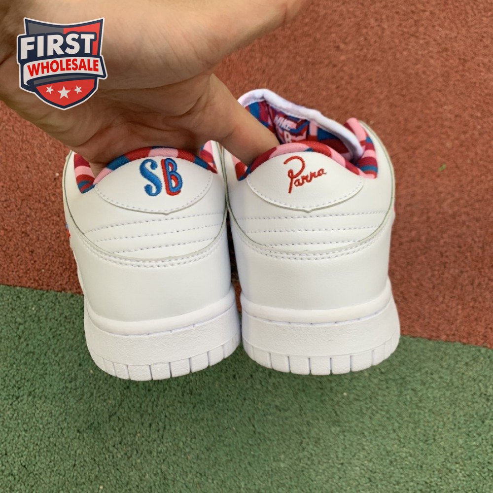Teaming up with the Dutch artist in July 2019, Nike SB and Parra present a special collaboration of the iconic Dunk Low OG QS. The visual artist's whimsical style is interpreted via multicolored chenille Swooshes on the leather upper and a graphic sockliner. A patterned tongue label and alternating co-branding embroidered on the backstay recognize both entities.