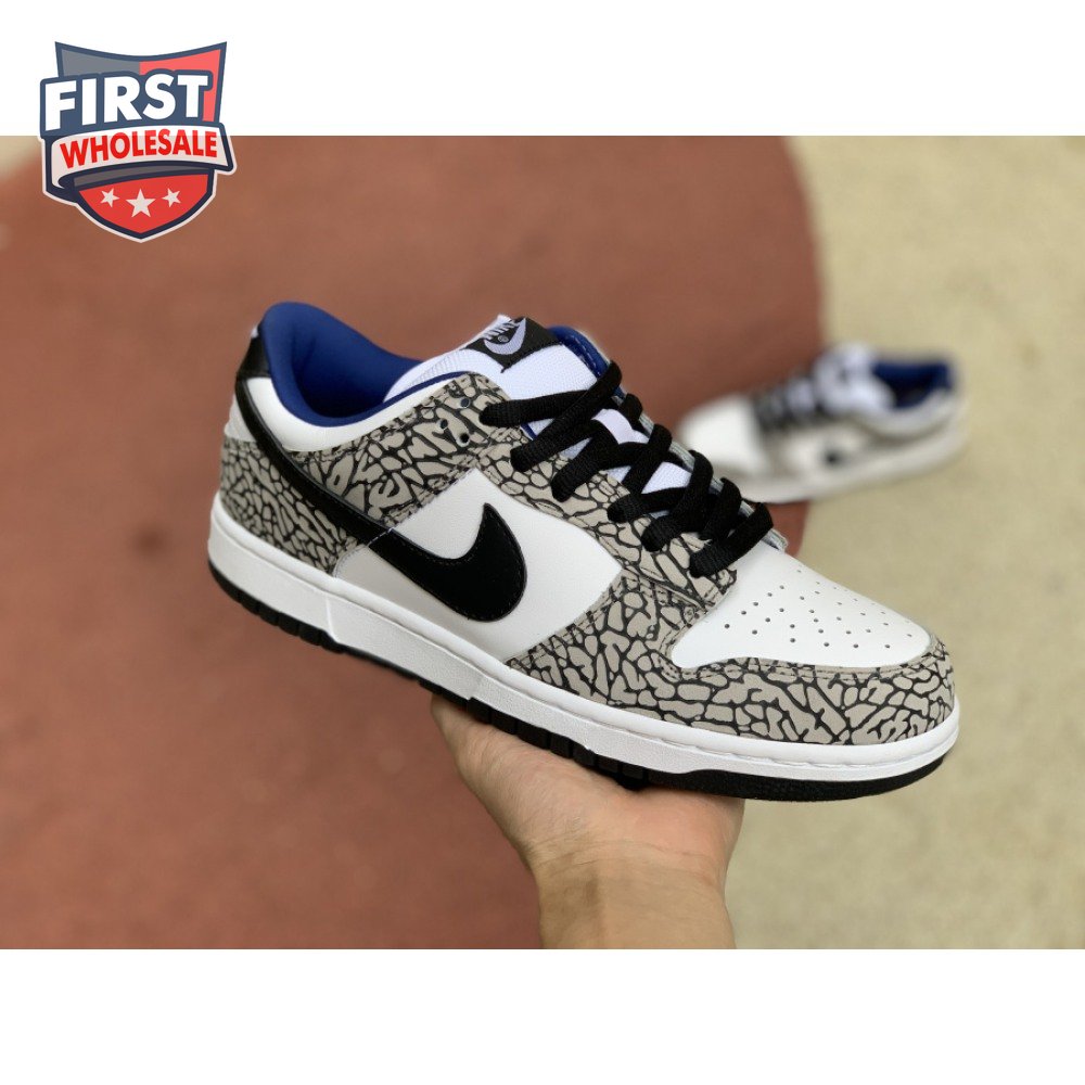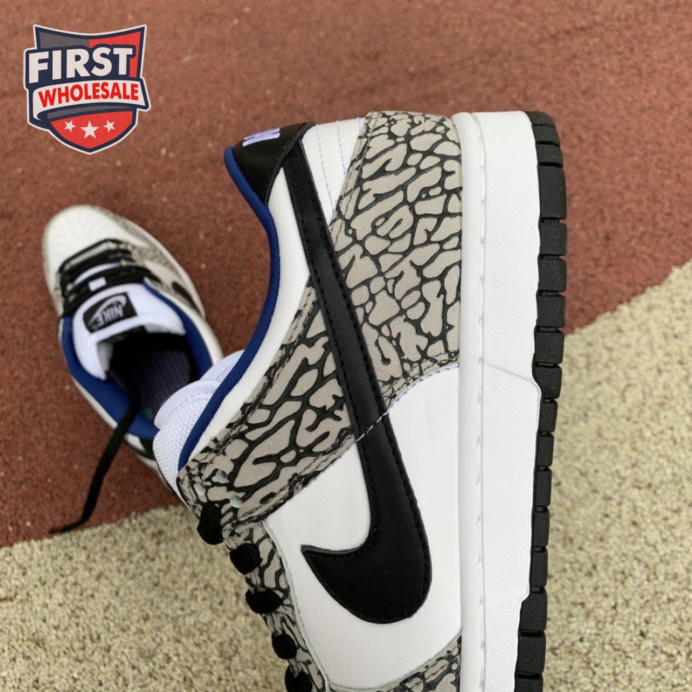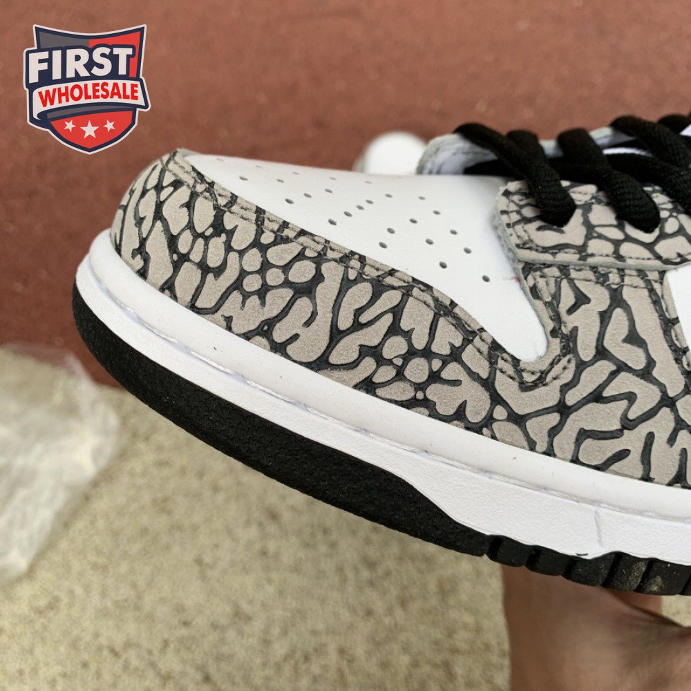 In October 2002, Supreme gave the Dunk Low Pro SB the Air Jordan 3 treatment by utilizing the iconic elephant print on the upper. The colorway, known as 'White Cement,' pairs the cement print with white leather and a royal blue inner lining. With a limited release and the first Nike SB x Supreme collaboration, it"s considered to be one of the most sought-after SBs in the shoe"s history.