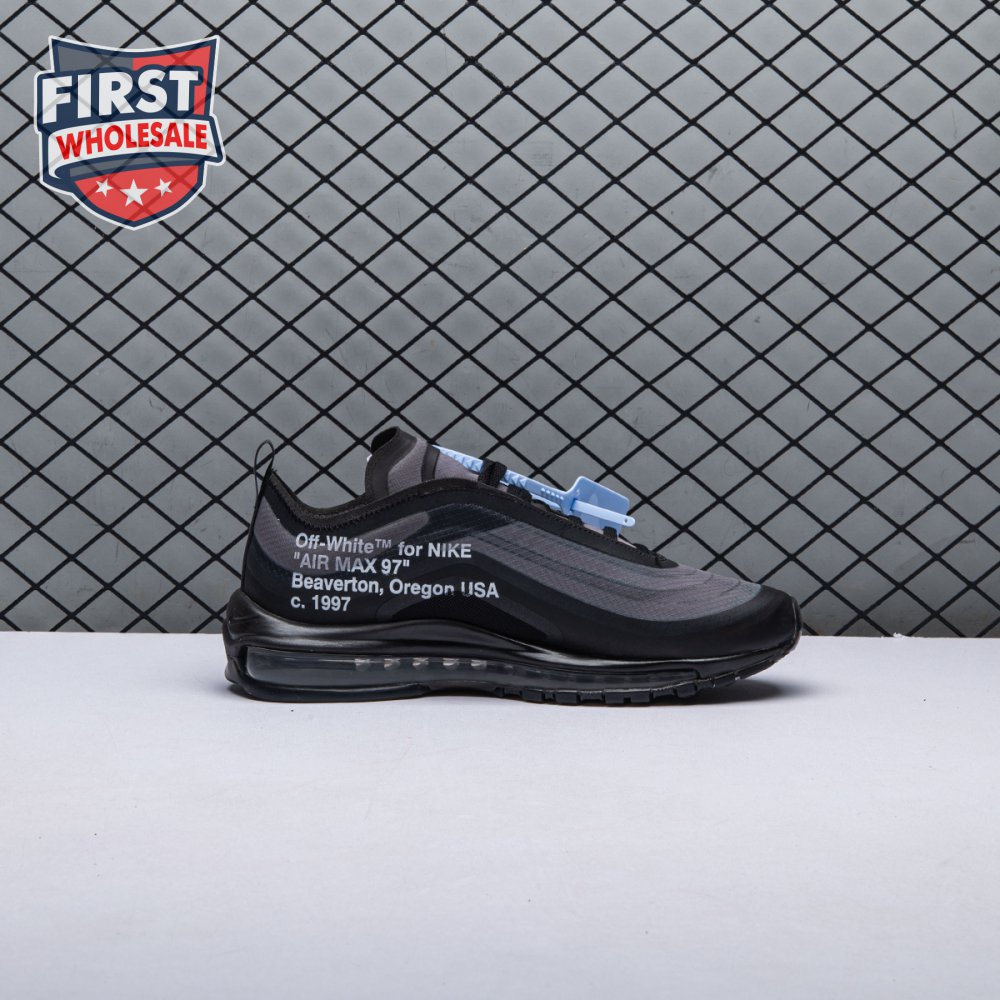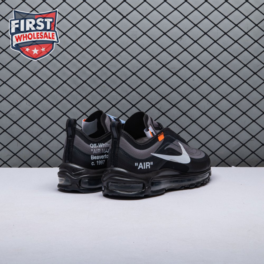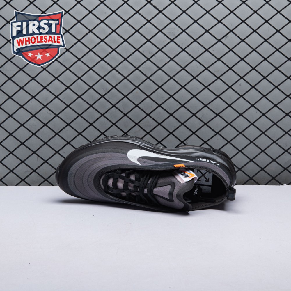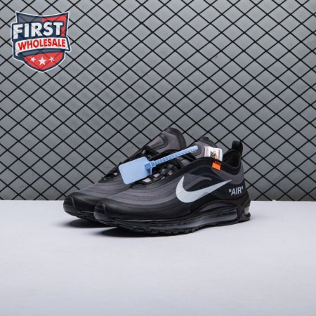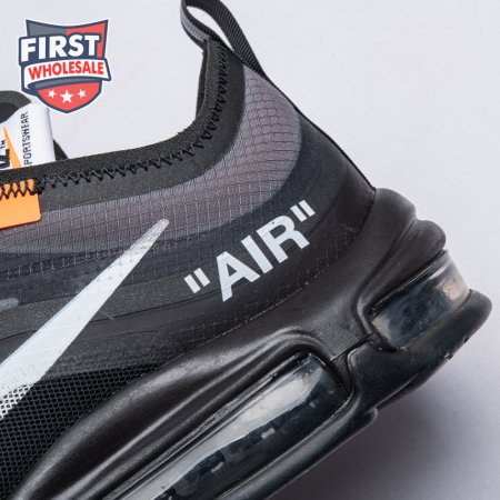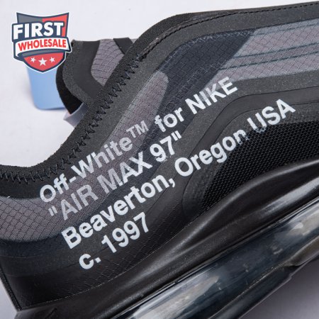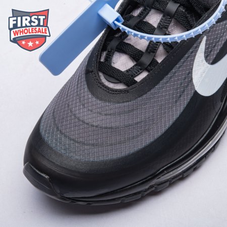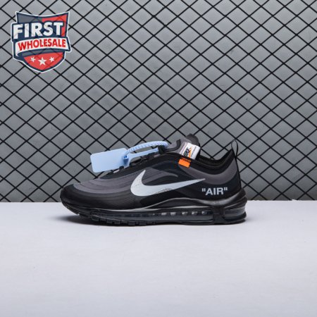 Debuting on the runway at Paris Fashion Week in June 2018, the Off-White x Air Max 97 in black sees Virgil Abloh outfit the retro runner with a translucent textile upper. A white Swoosh and "AIR" lettering adorn the lateral side, while the quarter panel on the medial side is printed with more lines of Virgil"s signature text. The shoe"s reconstructed look is finished with a woven Nike tongue tag pushed to the side.