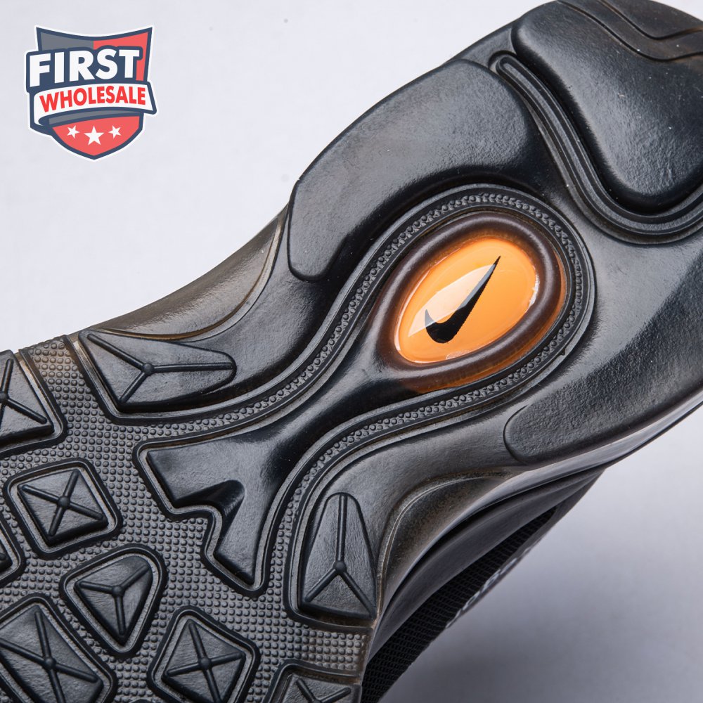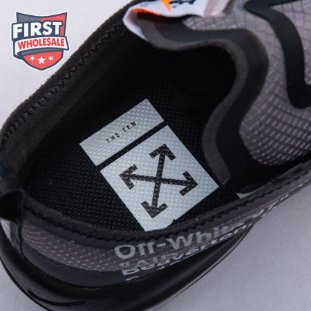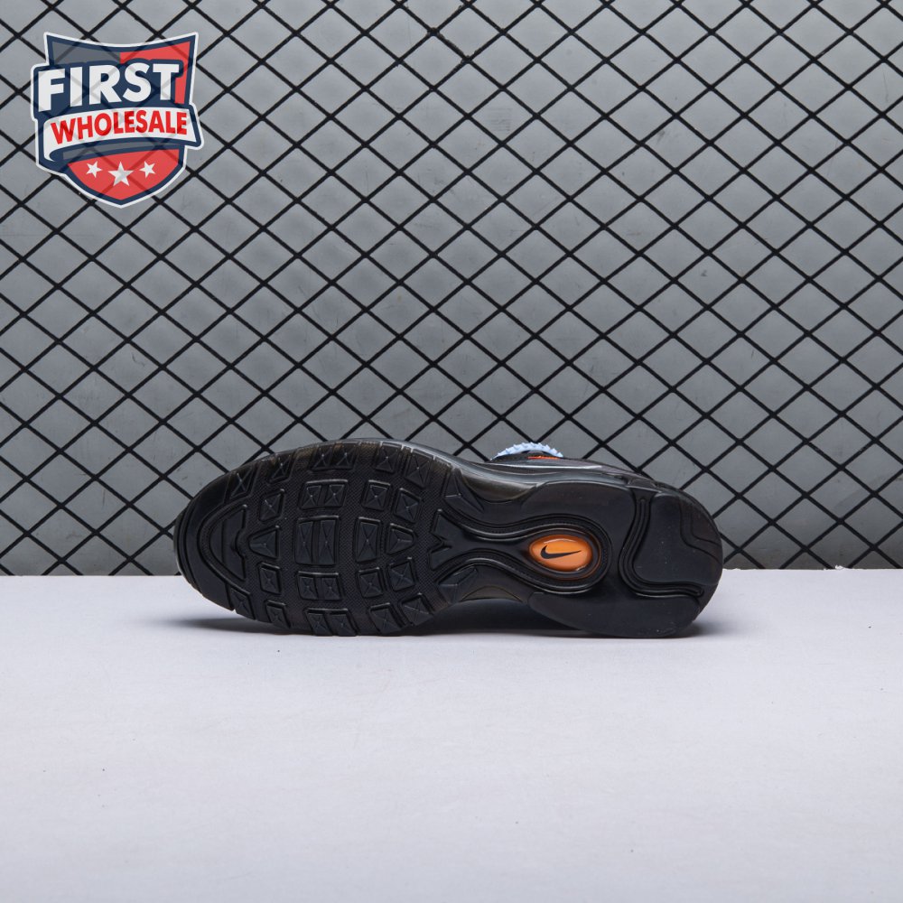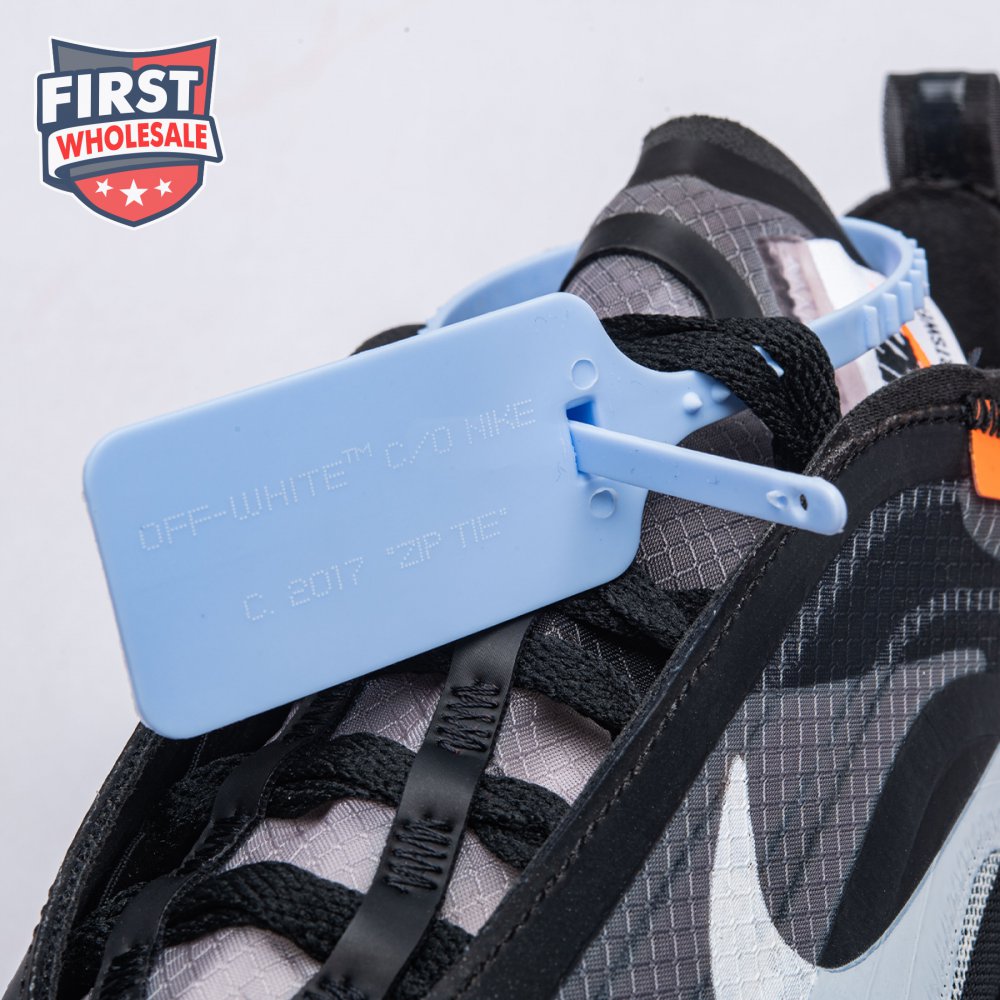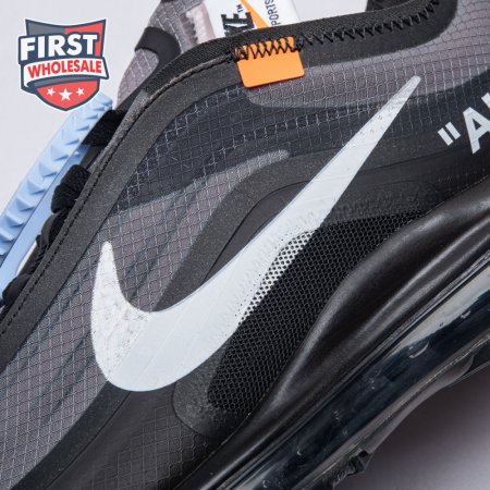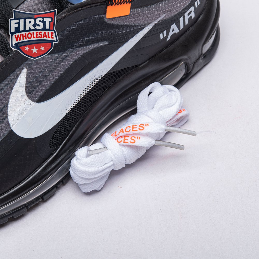 Debuting on the runway at Paris Fashion Week in June 2018, the Off-White x Air Max 97 in black sees Virgil Abloh outfit the retro runner with a translucent textile upper. A white Swoosh and "AIR" lettering adorn the lateral side, while the quarter panel on the medial side is printed with more lines of Virgil"s signature text. The shoe"s reconstructed look is finished with a woven Nike tongue tag pushed to the side.