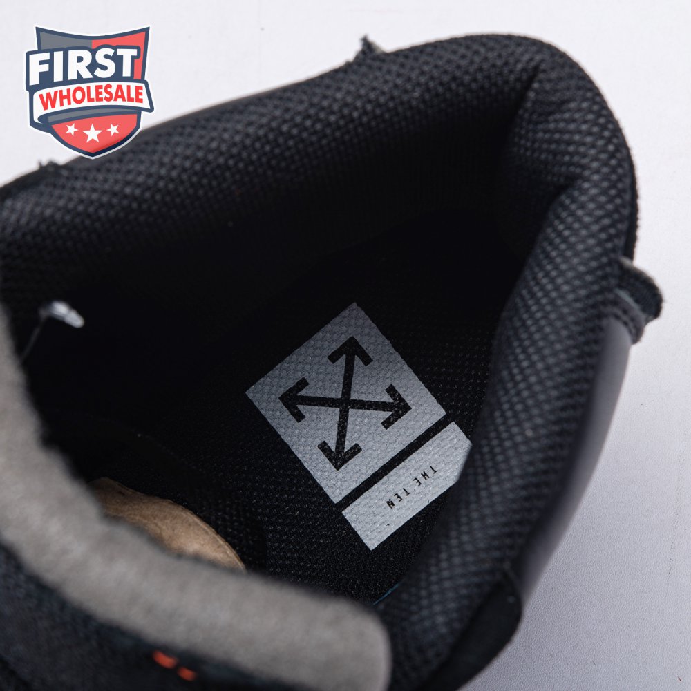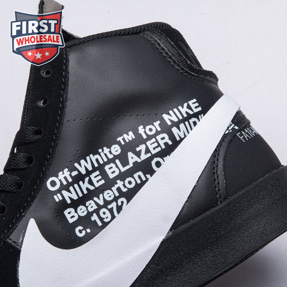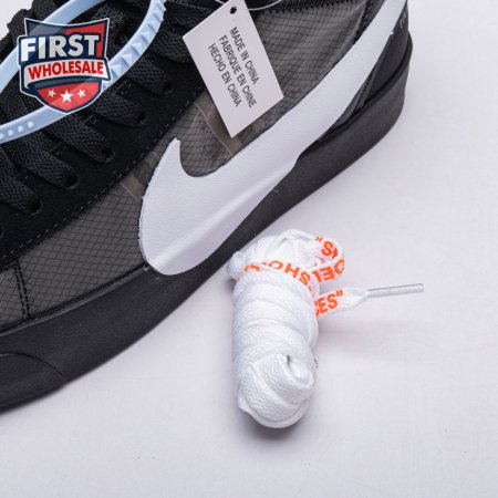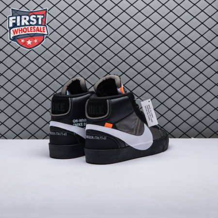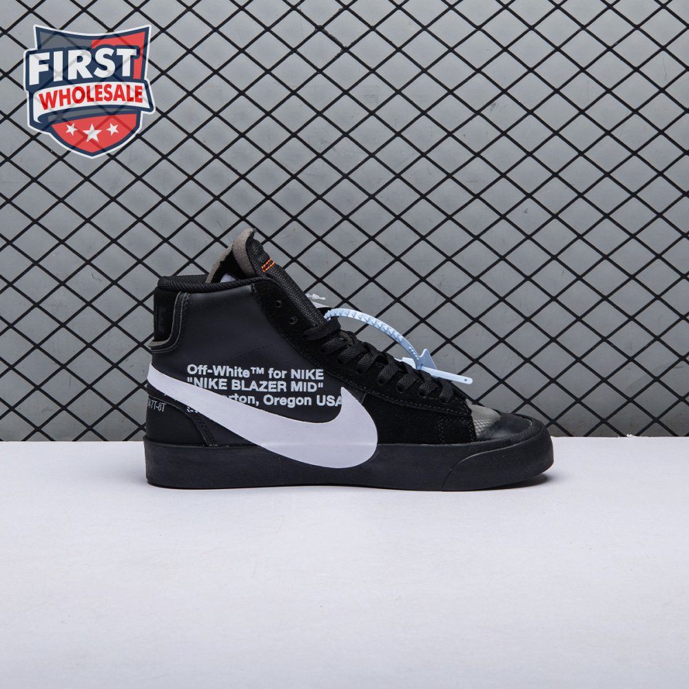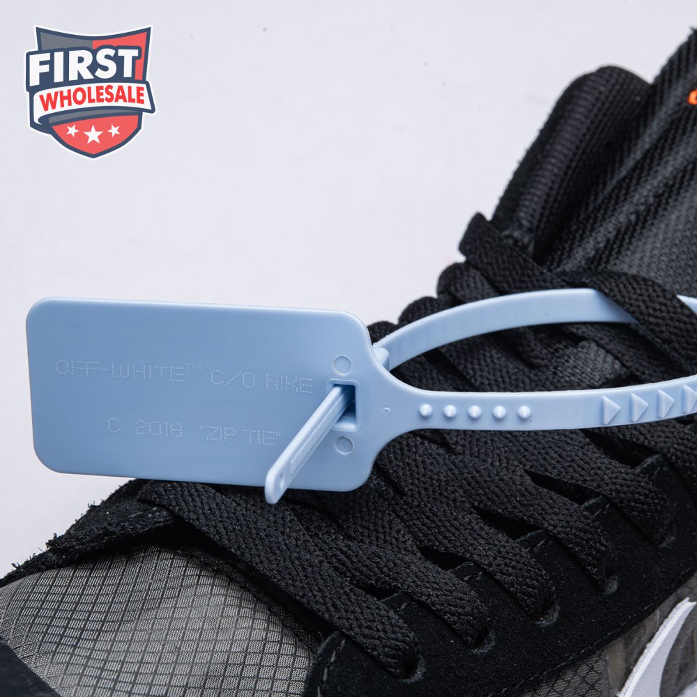 Releasing alongside an accompanying "All Hallow"s Eve" colorway in orange, the Off-White x Blazer Mid "Grim Reapers" completes Virgil Abloh"s Halloween-themed sneaker pack. The black and grey upper sports contrast orange stitching in celebration of the October holiday, along with an oversized white Swoosh, blue zip tie and Off-White lettering on the quarter panel of the shoe"s medial side.