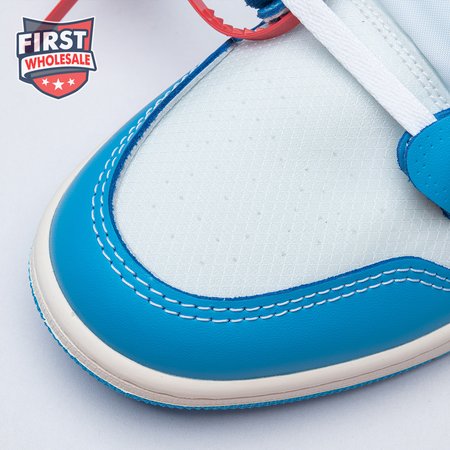 Inspired by Michael Jordan"s alma mater, the Off-White x Air Jordan 1 Retro High OG "UNC" carries a classic two-tone composition, filtered through Virgil Abloh"s unique design prism. The process involves taking a white leather base with dark powder blue overlays and adding embellishments that convey an expressive, handmade quality. They include detached Wings, a floating Swoosh, and lines of text on the medial-side quarter panel delineating the taxonomy of the shoe.